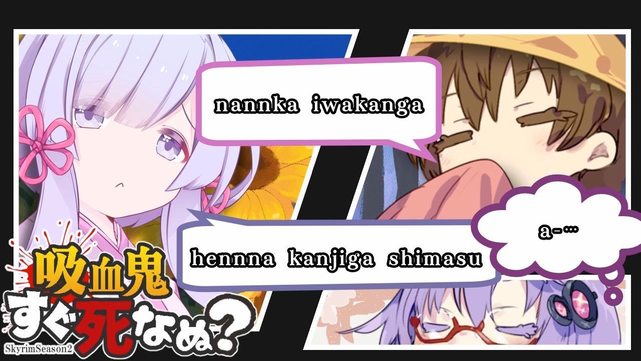 つくよみちゃん達がSkyrimで遊んでます。<br>ファルクリースからモーサルに向かうついでにラビリンシアンの迷宮に立ち寄りました。<br>今回は長くなったので分割投稿です。<br><br>--------------------------------------------<br>《使用ソフト》<br>・Recotte Studio<br>・VOICEROID+ 月読アイ<br>・A.I.VOICE2 結月ゆかり/つくよみちゃん<br>《ニコニコ外からお借りした素材》<br>・フォント<br>フォントな<a href="http://www.fontna.com/" target="_blank" rel="noopener nofollow">http://www.fontna.com/</a><br>ヤマナカデザインワークス<a href="http://ymnk-design.com/" target="_blank" rel="noopener nofollow">http://ymnk-design.com/</a><br>MODI工場<a href="https://modi.jpn.org/" target="_blank" rel="noopener nofollow">https://modi.jpn.org/</a><br>noraglyphs<a href="https://noraglyphs.booth.pm/" target="_blank" rel="noopener nofollow">https://noraglyphs.booth.pm/</a><br>obakenoie<a href="https://obakenoie.booth.pm/" target="_blank" rel="noopener nofollow">https://obakenoie.booth.pm/</a><br>・画像<br>素材屋あいりす<a href="https://sozaiyairis.com/" target="_blank" rel="noopener nofollow">https://sozaiyairis.com/</a><br>・BGM<br>PeriTune<a href="https://peritune.com/" target="_blank" rel="noopener nofollow">https://peritune.com/</a><br>--------------------------------------------