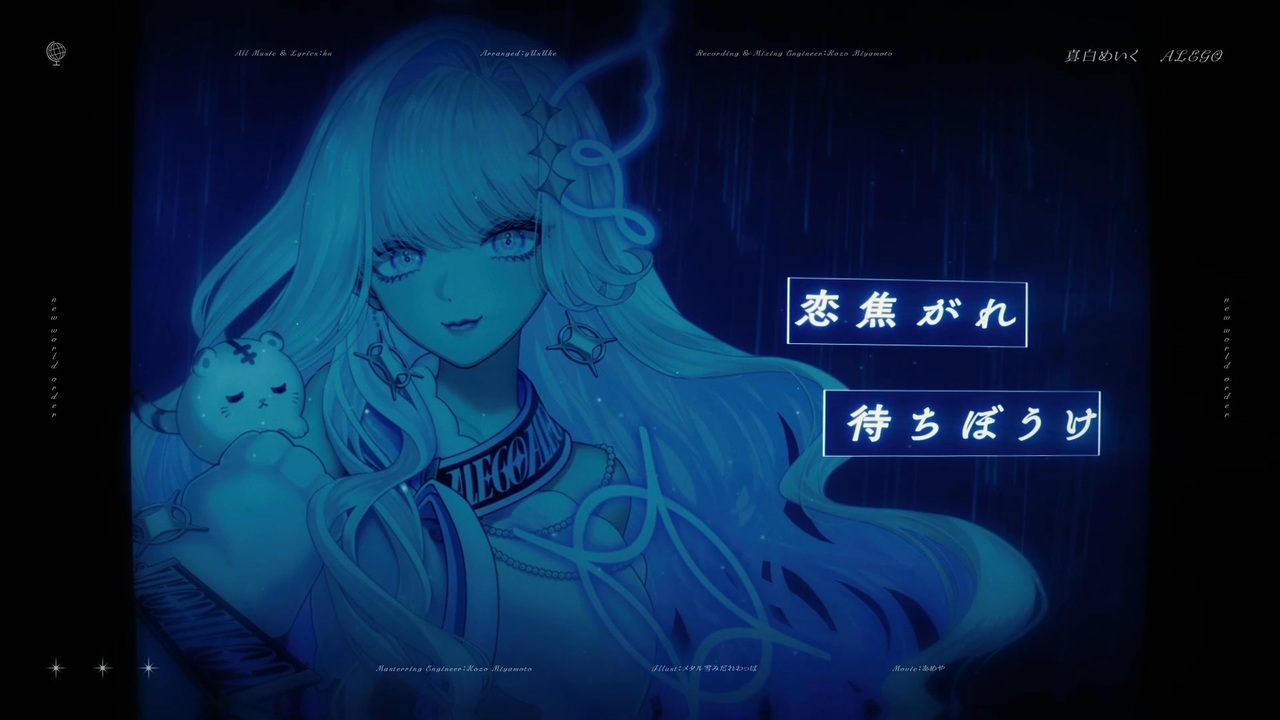 ▼new world order公式MV(AlEGO) <br><a href="https://youtu.be/QzkdsRNye88" target="_blank" rel="noopener nofollow">https://youtu.be/QzkdsRNye88</a> <br>▼各種デジタル音源販売 <br><a href="https://linkco.re/bveHaxmA" target="_blank" rel="noopener nofollow">https://linkco.re/bveHaxmA</a> <br><br>All Music & Lyrics:kn Arranged:yUsUke <br>Recording & Mixing Engineer:Kozo Miyamoto <br>Masterring Engineer:Kozo Miyamoto <br>Illust:メタル雪みだれわっぱ <br>Movie:あめや(<a href="https://x.com/AME_8y)" target="_blank" rel="noopener nofollow">https://x.com/AME_8y)</a> <br><br>ーーーーーーーーーーーーーーーーー <br>ひらひらと落ちる1枚の紙 <br>運命に抗え その身委ね <br><br>走り出した道 春風に乗り <br>ゆらゆらと流れる時を裂いて <br><br>恋焦がれ 待ちぼうけ 蝉時雨 <br>会いたくて 駆け抜けて 秋空 <br>移りゆく時代への鎮魂歌 <br>旅立つ朝キミを新時代で <br><br>待ってる 世界を逆手に紡ぐ詩 <br>さよなら 人類 また来世 <br>世界は変わる キミの眼で見ろ感じろ <br>正義は?真理は?キミ次第 <br><br>凍える手 影を踏む 雪明かり <br>朝が来て、夜が来る それだけ <br>流れゆく想いまで連れ出して <br>まだ見ぬ場所へ 共に歩み出す <br><br>待ってる 世界を逆手に紡ぐ詩 <br>さよなら 人類 また来世 <br>世界は変わる キミの眼で見ろ感じろ <br>時間は戻らない 共に行こう <br>ーーーーーーーーーーーーーーーーーーー <br><br />『めいくと一緒に青春つくろう?』 <br><a href="https://www.youtube.com/@mashiromeiku" target="_blank" rel="noopener nofollow">https://www.youtube.com/@mashiromeiku</a><br>♡youtubeにて週5回配信♡ <br>・週に1回の歌枠🎵(土曜日10:00) <br>・ゲーム(アクションRPGや短編ホラゲなど🎵)🎮 <br>・雑談(映画・アニメ・バーチャル界隈語ろう☆)<br><br><br>💬 🎤配信ルーティン🎧 <br>平日は20:30~<br>休日(土日祝)は10:00~<br>から配信してます💙 <br>♡SNS♡ 真白めいく <br><a href="https://x.com/meiku_alego" target="_blank" rel="noopener nofollow">https://x.com/meiku_alego</a> <br>所属グループ AlEGO(オルエゴ) <br><a href="https://x.com/alego_info" target="_blank" rel="noopener nofollow">https://x.com/alego_info</a><br>