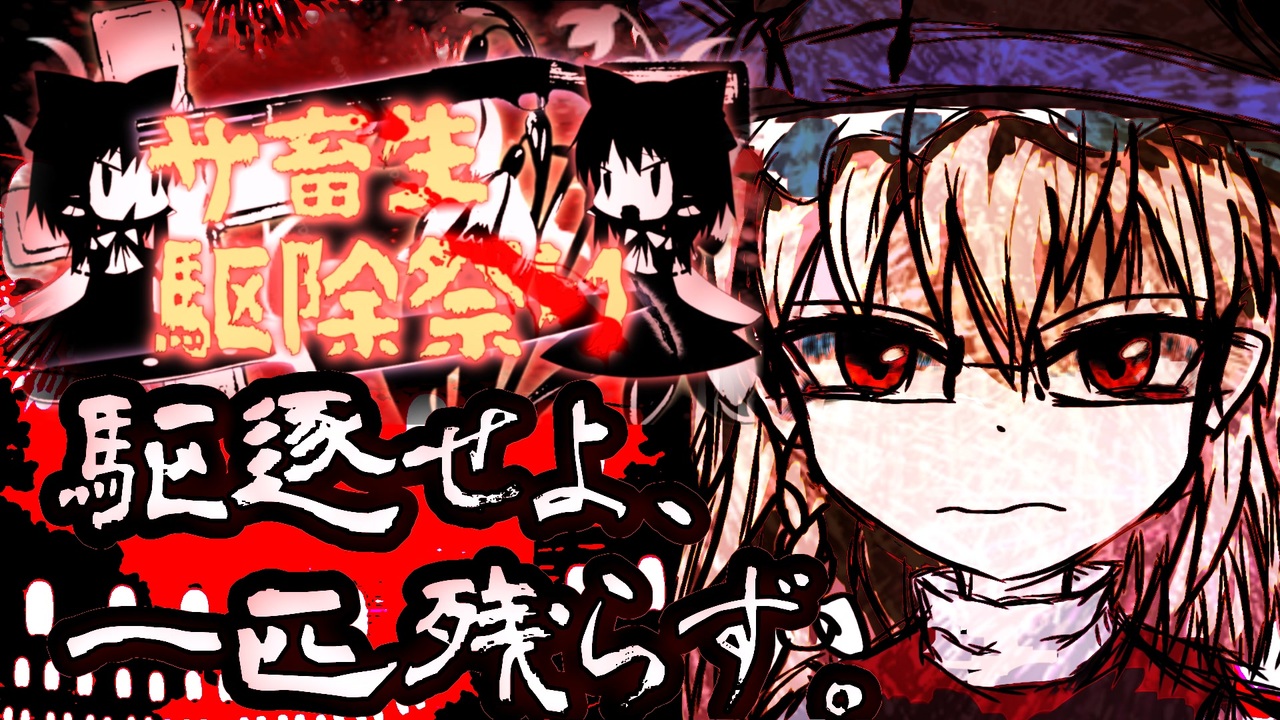 <span style="color: #ff0000; font-size: 18px;">駆逐せよ、一匹残らず。</span><br><br>ゴ(5月)ミ(3日)を土(曜日)に還す<br>春のサ畜生駆除祭り☆開催です!<br>“サケノミは愛でるものではない、サケノミは殴って泣かせて遊ぶものだ”<br>愛護など糞くらえ!多彩な手段でサ畜生を殲滅せよ!<br><br>間抜けでノロマで無能な役立たずなサケノミがこの祭りでは<br>『みんなのストレスを和らげる』<br>大仕事をやってのけます!偉いぞサ畜生!<br><br>さぁ、サ畜生解体ショーの始まりや<br><br>参加者<br>ハイボルト <a href="https://www.nicovideo.jp/user/125031069" target="_blank" rel="noopener">user/125031069</a> <br>デチデチ小僧 <a href="https://www.nicovideo.jp/user/95608528" target="_blank" rel="noopener">user/95608528</a> <br>カプケキ <a href="https://www.nicovideo.jp/user/93619219" target="_blank" rel="noopener">user/93619219</a> <br>すし城 <a href="https://www.nicovideo.jp/user/134653041" target="_blank" rel="noopener">user/134653041</a> <br>DINO <a href="https://www.nicovideo.jp/user/7663906" target="_blank" rel="noopener">user/7663906</a> <br>オサム_364 <a href="https://www.nicovideo.jp/user/118505794" target="_blank" rel="noopener">user/118505794</a> <br>ゴガシ <a href="https://www.nicovideo.jp/user/117824519" target="_blank" rel="noopener">user/117824519</a> <br>フラヂル <a href="https://www.nicovideo.jp/user/87566003" target="_blank" rel="noopener">user/87566003</a> <br>ポヌイ <a href="https://x.com/ponui114514" target="_blank" rel="noopener nofollow">https://x.com/ponui114514</a> <br>さんかめ <a href="https://www.nicovideo.jp/user/122390272" target="_blank" rel="noopener">user/122390272</a> <br>ほねほねのふんまつ <a href="https://x.com/KumukuroMao" target="_blank" rel="noopener nofollow">https://x.com/KumukuroMao</a> <br>ぎゃク <a href="https://x.com/bnkrg114514" target="_blank" rel="noopener nofollow">https://x.com/bnkrg114514</a> <br>メヒコ <a href="https://www.nicovideo.jp/user/120863431" target="_blank" rel="noopener">user/120863431</a> <br>myu☆ <a href="https://www.nicovideo.jp/user/134013056" target="_blank" rel="noopener">user/134013056</a> <br>しふつ <a href="https://www.nicovideo.jp/user/134870091" target="_blank" rel="noopener">user/134870091</a> <br>リリリ <a href="https://www.nicovideo.jp/user/88664828" target="_blank" rel="noopener">user/88664828</a> <br>夜景 <a href="https://www.nicovideo.jp/user/115913375" target="_blank" rel="noopener">user/115913375</a><br>Lipton愛好会 <a href="https://www.nicovideo.jp/user/127378219" target="_blank" rel="noopener">user/127378219</a> <br>うんこの擬人化 <a href="https://www.nicovideo.jp/user/93383056" target="_blank" rel="noopener">user/93383056</a><br><br><a target="_blank" href="https://qa.nicovideo.jp/faq/show/19424?site_domain=default" style="font-size: 13px;color: #657586; text-decoration: underline; line-height: 1.4">この動画は投稿者によって修正されました</a>