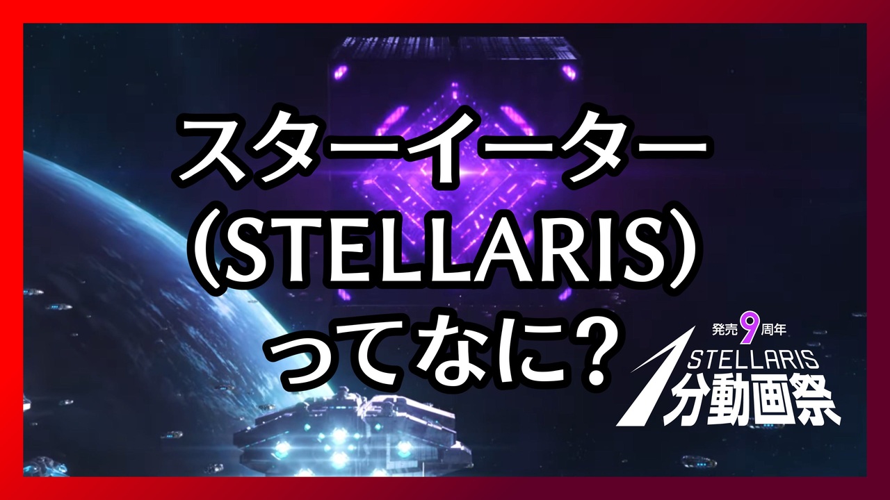 スターイーター(Stellaris)ってなに?<br>―――DLC Nemesisで追加された危機帝国が運用できる究極の兵器。<br><br>Stellaris1分動画祭参加動画です <a href="https://www.nicovideo.jp/mylist/75113908" target="_blank" rel="noopener">mylist/75113908</a><br>出演:<br> VOICEPEAK: 小春六花・宮舞モカ・ずんだもん<br> VOICEROID2: 東北きりたん(EX)・桜乃そら・音街ウナ・東北ずん子(EX)<br> CeVIO AI: 夏色花梨・花隈千冬・フィーちゃん・タカハシ・IA・ONE<br> VOICEVOX: ずんだもん・WhiteCUL・春日部つむぎ<br> A.I.Voice: 琴葉葵・琴葉茜・紲星あかり・結月ゆかり(凪)・<br> 結月ゆかり(雫)・Flower<br><br>Stellaris / Paradox Interactive, 2016;<br> <a href="https://store.steampowered.com/app/281990/Stellaris/" target="_blank" rel="noopener nofollow">https://store.steampowered.com/app/281990/Stellaris/</a><br>トレイラーなどのある公式チャンネル:<br> <a href="https://www.youtube.com/@paradoxinteractive" target="_blank" rel="noopener nofollow">https://www.youtube.com/@paradoxinteractive</a>