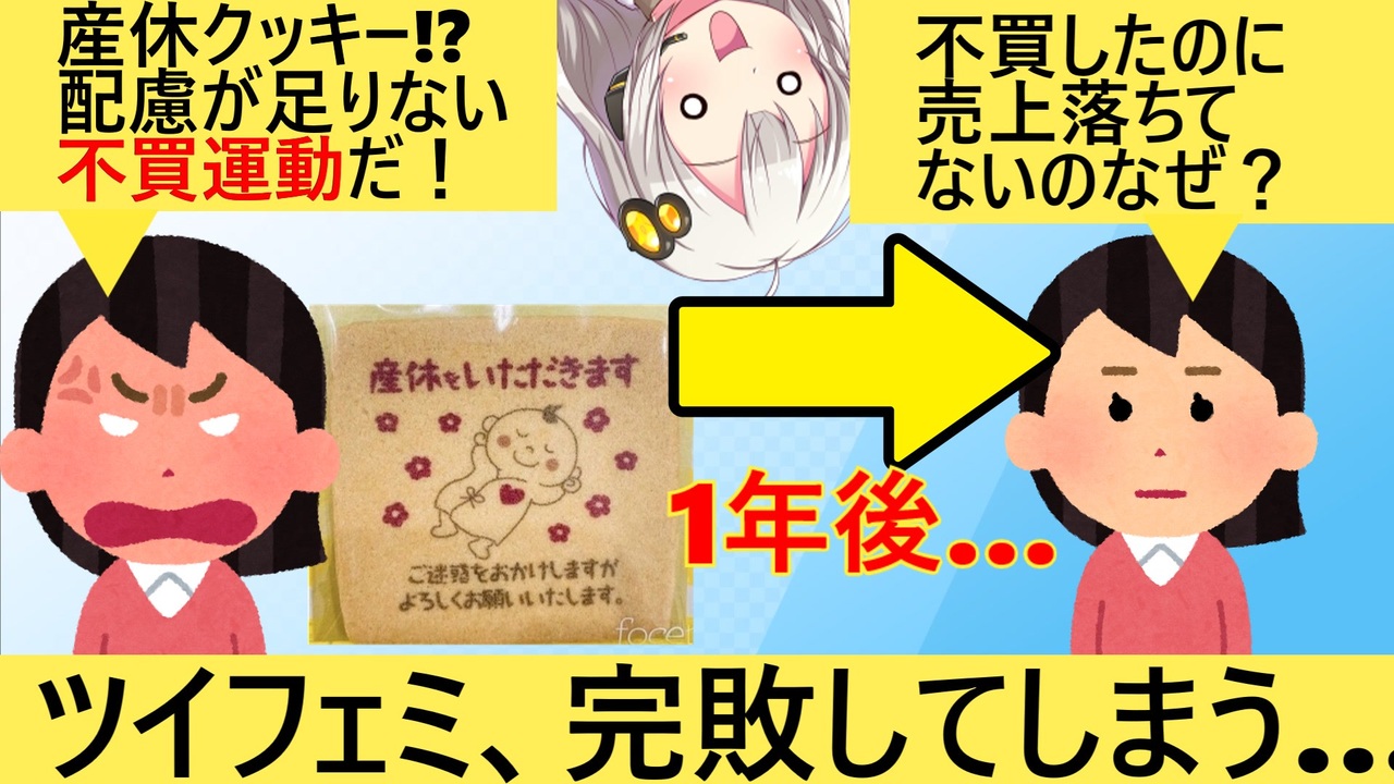 ツイフェミ、産休クッキーに噛みつくも売上にはノーダメだった… 10:39