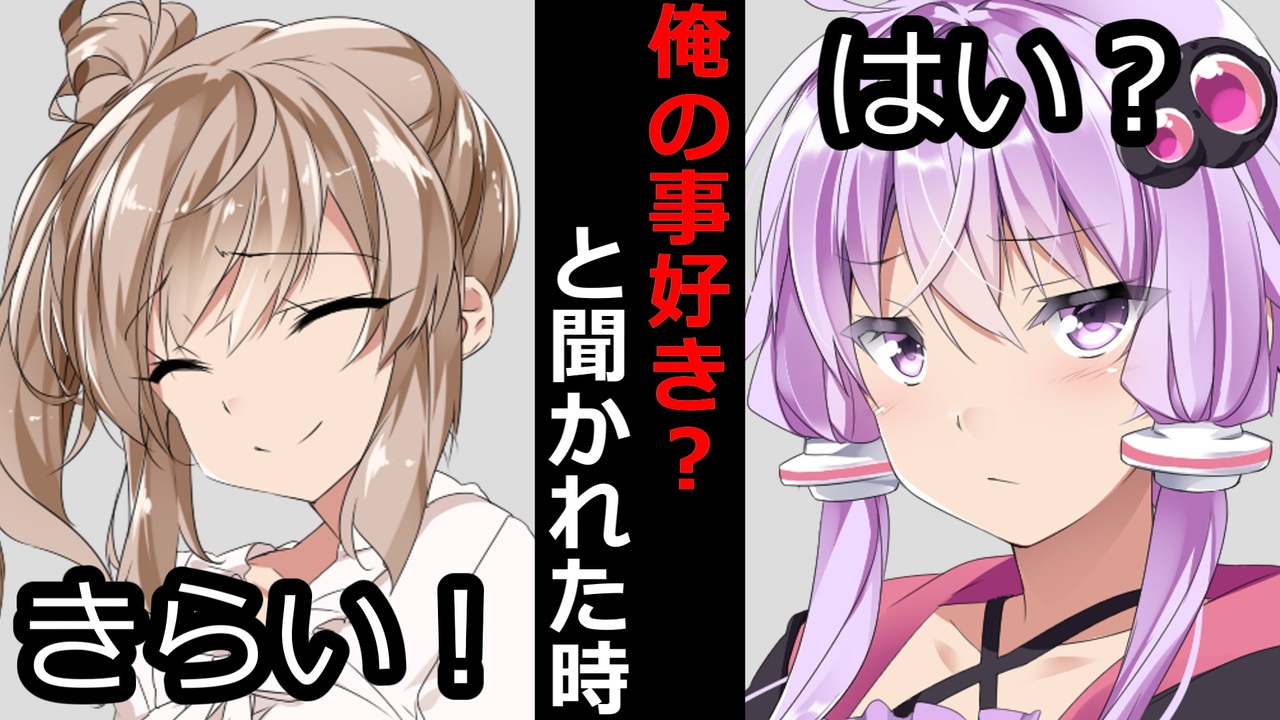 ※0:45音量注意<br><span style="color: #9900ff; font-size: 18px;">同日に投稿した「結月ゆかりが愛を叫ぶ動画」</span><span style="font-size: 18px;">:<a href="https://www.nicovideo.jp/watch/sm44943816" class="watch">sm44943816</a></span><br><br>面白かったら<span style="font-size: 16px;">「</span><span style="color: #ea9999; font-size: 16px;">いいね</span><span style="font-size: 16px;">」</span>と<span style="font-size: 16px;">「</span><span style="color: #ff9900; font-size: 16px;">フォロー</span><span style="font-size: 16px;">」</span>お願いします!<br><br><span style="color: #ff0000; font-size: 16px;">オススメ動画</span><br>一人____してたマスターを見てしまった時<br>:<a href="https://www.nicovideo.jp/watch/sm44838860" class="watch">sm44838860</a><br>自分のコッショリな漫画を見つけた時<br>:<a href="https://www.nicovideo.jp/watch/sm44824127" class="watch">sm44824127</a><br>ラブホ行こうと言われた時<br>:<a href="https://www.nicovideo.jp/watch/sm44813350" class="watch">sm44813350</a><br><br><span style="color: #ff0000; font-size: 16px;">ボイロ達の反応集シリーズ</span>:<a href="https://www.nicovideo.jp/user/131662780/series/482249" target="_blank" rel="noopener nofollow">https://www.nicovideo.jp/user/131662780/series/482249</a><br><br>VOICEVOX Nemo:男声2(CV:かちょゴリラ 様)<br>CeVIO:さとうささら、すずきつづみ、タカハシ<br>CeVIO AI:双葉湊音<br>VOICEPEAK:ずんだもん、東北イタコ、音街ウナ<br>VOICEVOX:春日部つむぎ、冥鳴ひまり、雨晴はう、青山龍星<br>CV:みみっく=わんだぁぼっくす(©ななはぴ)<br><a href="https://www.youtube.com/@mimic_teionvo" target="_blank" rel="noopener nofollow">https://www.youtube.com/@mimic_teionvo</a><br>VOICEROID:結月ゆかり、東北きりたん、東北ずん子、民安ともえ、月読アイ<br>A.I.VOICE:琴葉茜、琴葉葵、紲星あかり<br>A.I.VOICE2:つくよみちゃん<br>COEIROINK:リリンちゃん、松嘩りすく<br>フリーギターサウンド 様、DOVA-SYNDROME 様、甘茶の音楽工房 様、魔王魂 様、MusMus 様、OtoLogic 様、効果音ラボ 様、無料効果音で遊ぼう!様、音楽 BGMer 様(<a href="https://bgmer.net" target="_blank" rel="noopener nofollow">https://bgmer.net</a>)、無料効果音で遊ぼう! 様