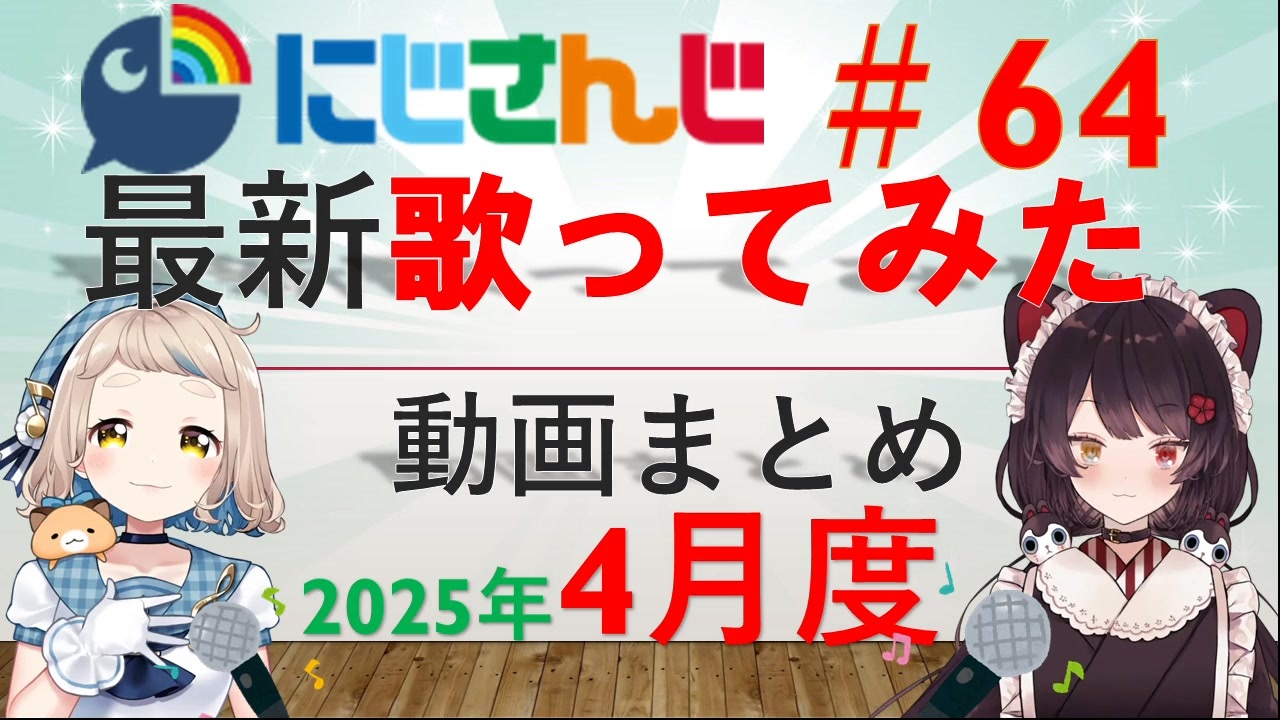 <span style="color: #00ff00;">◆</span>期間:2025年4月1日~4月30日<br><span style="color: #00ff00;">◆</span>対象:にじさんじライバーによる歌ってみた動画<br><span style="font-size: 10px;">(にじさんじのみ対象。JP・元ID・元KR・EN)</span><br><span style="color: #00ff00;">◆</span><span style="color: #262626;">参考サイト:(</span><span style="color: #262626;"><strong>↓元動画はこのページからご参照ください↓</strong></span><span style="color: #262626;">)</span><br>VMusic Ch. 様<br><a href="https://music.vtuber-ch.com/?gname=にじさんじALL" target="_blank" rel="noopener nofollow">https://music.vtuber-ch.com/?gname=にじさんじALL</a><br>にじさんじ非公式Wiki 様<br><a href="https://wikiwiki.jp/nijisanji/歌唱まとめ" target="_blank" rel="noopener nofollow">https://wikiwiki.jp/nijisanji/歌唱まとめ</a><br><br>前回(3月)の歌みたまとめ:<a href="https://www.nicovideo.jp/watch/sm44838177" class="watch">sm44838177</a><br>年間歌ってみたまとめ:<a href="https://www.nicovideo.jp/watch/sm44544012" class="watch">sm44544012</a><br><br>プレイリストは上記非公式Wiki内のプレイリストをご活用ください。<br>気になる歌動画を見つけたらぜひ、元動画をご覧ください!!<br><br>よく確認はしましたが、抜けがありましたらコメントをお願いいたします。