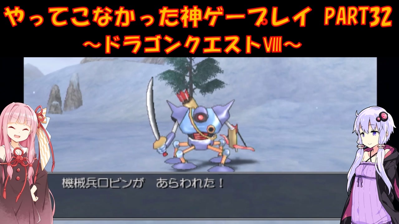 PS2版 ドラゴンクエストⅧをプレイ<br>ゆかりさんはメジャーじゃないゲームをやる俺カッケー族だったのでドラクエをやったことがありませんでした(DSのⅤ以外)<br><br>茜:ロビン!<br>ゆ:ところでいつから機械兵に?<br><br>PART1:<a href="https://www.nicovideo.jp/watch/sm44676588" target="_blank" rel="noopener nofollow">https://www.nicovideo.jp/watch/sm44676588</a><br><br>各DQシリーズ第1回リンク<br>DQ1:<a href="https://www.nicovideo.jp/watch/sm41819145" target="_blank" rel="noopener nofollow">https://www.nicovideo.jp/watch/sm41819145</a><br>DQ2:<a href="https://www.nicovideo.jp/watch/sm41895278" target="_blank" rel="noopener nofollow">https://www.nicovideo.jp/watch/sm41895278</a><br>DQ3:<a href="https://www.nicovideo.jp/watch/sm42034398" target="_blank" rel="noopener nofollow">https://www.nicovideo.jp/watch/sm42034398</a><br>DQ4:<a href="https://www.nicovideo.jp/watch/sm42520974" target="_blank" rel="noopener nofollow">https://www.nicovideo.jp/watch/sm42520974</a><br>DQ5:<a href="https://www.nicovideo.jp/watch/sm42848575" target="_blank" rel="noopener nofollow">https://www.nicovideo.jp/watch/sm42848575</a><br>DQ6:<a href="https://www.nicovideo.jp/watch/sm43080264" target="_blank" rel="noopener nofollow">https://www.nicovideo.jp/watch/sm43080264</a><br>DQ7:<a href="https://www.nicovideo.jp/watch/sm43851863" target="_blank" rel="noopener nofollow">https://www.nicovideo.jp/watch/sm43851863</a><br>DQM1:<a href="https://www.nicovideo.jp/watch/sm43525709" target="_blank" rel="noopener nofollow">https://www.nicovideo.jp/watch/sm43525709</a><br>DQMCH:<a href="https://www.nicovideo.jp/watch/sm44443421" target="_blank" rel="noopener nofollow">https://www.nicovideo.jp/watch/sm44443421</a><br><br>動画内で使用させていただいた素材<br>【イラスト】<br>結月ゆかり→ペテン師様:<a href="https://seiga.nicovideo.jp/seiga/im5494168" target="_blank" rel="noopener nofollow">https://seiga.nicovideo.jp/seiga/im5494168</a><br>琴葉茜→ユメのオワリ様:<a href="https://seiga.nicovideo.jp/seiga/im10706241" target="_blank" rel="noopener nofollow">https://seiga.nicovideo.jp/seiga/im10706241</a><br><br>【音声】<br>A.I.Voice:琴葉茜<br><a href="https://aivoice.jp/product/kotonoha/" target="_blank" rel="noopener nofollow">https://aivoice.jp/product/kotonoha/</a><br><br>A.I.Voice:結月ゆかり<br><a href="https://aivoice.jp/product/yukari/" target="_blank" rel="noopener nofollow">https://aivoice.jp/product/yukari/</a><br><br>この動画で利用している株式会社スクウェア・エニックスを代表とする共同著作者が権利を所有する著作物及びスギヤマ工房有限会社が権利を所有する楽曲の転載・配布は禁止いたします。<br>© 2004 ARMOR PROJECT/BIRD STUDIO/LEVEL-5/SQUARE ENIX All Rights Reserved.<br>© SUGIYAMA KOBO