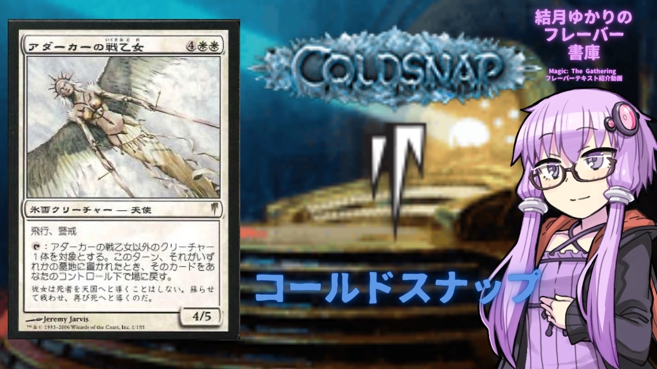 Magic: The Gatheringのオススメフレーバーテキストをエキスパンション毎にご紹介いたします。<br>今回は「コールドスナップ」です。<br><br>動画の最期にご紹介した<br>《トレッサーホーンの掃き溜め/Tresserhorn Sinks》は<br>日本語のカード画像だと「冬の王の統治」って部分がなぜか抜けてますが、<br>サイクルのカードです。<br><br>前回(ディセンション)<br><a href="https://www.nicovideo.jp/watch/sm44852442" class="watch">sm44852442</a><br><br>最初から見たい方はこちら(Uサーガ前編)<br><a href="https://www.nicovideo.jp/watch/sm38237531" class="watch">sm38237531</a><br><br><strong>--------------<br>支援絵を描いてくださったねざーさんの活動リスト<br><br>動画一覧<br><a href="https://www.nicovideo.jp/user/34839437/video?ref=pc_userpage_menu" target="_blank" rel="noopener nofollow">https://www.nicovideo.jp/user/34839437/video?ref=pc_userpage_menu</a><br><br>pixiv<br><a href="https://www.pixiv.net/users/74307669" target="_blank" rel="noopener nofollow">https://www.pixiv.net/users/74307669</a><br><br>skeb<br><a href="https://skeb.jp/@Nether_mtg" target="_blank" rel="noopener nofollow">https://skeb.jp/@Nether_mtg</a><br><br>--------------</strong>