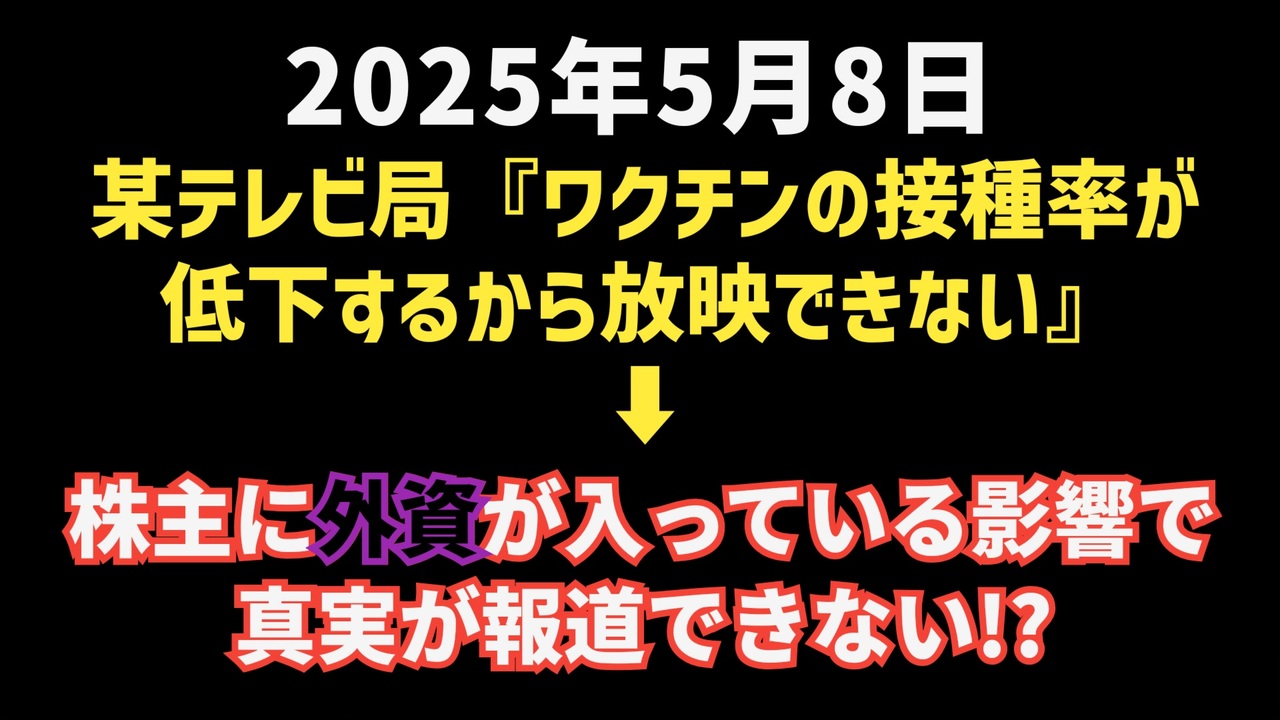 ◆某テレビ局「ワクチンの接種率が低下するから放映できない」→株主に『外資』が入っている影響で真実が報道できない<br><br>なぜCBCテレビだけがワクチン被害を報道できるのか?外資と報道の自由の深い関係<br><a href="https://x.com/kazu_uracorona/status/1920098849735286794?t=O_0E4iKsynzohbj9u2Nzow&s=19" target="_blank" rel="noopener nofollow">https://x.com/kazu_uracorona/status/1920098849735286794?t=O_0E4iKsynzohbj9u2Nzow&s=19</a><br><br>【TBSに裏切られた】2年以上黙っていましたが、もう言います。【息子が突然◯】<br><a href="https://x.com/Ts0zqAfa413maru/status/1920073137691283810?t=ZxY6DplYL-v1WLLb_dzNzQ&s=19" target="_blank" rel="noopener nofollow">https://x.com/Ts0zqAfa413maru/status/1920073137691283810?t=ZxY6DplYL-v1WLLb_dzNzQ&s=19</a><br><br><br>主要メディアが沈黙を守る中、ただ一局、声を上げ続けるCBCテレビ。なぜ彼らだけがワクチン被害を伝えられるのか?その鍵は「外資ゼロ」の株主構造にありました。政府・製薬会社・外資の影響が交錯する日本の報道界で、いま何が起きているのか。CBCテレビの報道姿勢に迫りながら、見えざる圧力の実態を明らかにします。メディアの信頼性と独立性を問う、渾身の分析。<br><br><br>◆ 今回の台本<br><a href="https://keiichiro8140.hatenablog.com/entry/20250508002" target="_blank" rel="noopener nofollow">https://keiichiro8140.hatenablog.com/entry/20250508002</a><br><br><br>◆今回の動画<br><br><br><br>◆マイリンク<br><a href="https://lit.link/keiichiro8140" target="_blank" rel="noopener nofollow">https://lit.link/keiichiro8140</a><br><br><br>TBS<br>偏向報道<br>ワクチン<br>報道の自由<br>CBCテレビ<br>大石邦彦<br>株主<br>外資<br>製薬会社<br>ニュース<br>気になったニュース<br><br><br />著作権、肖像権に配慮して作成しております。<br><br>◆気になったニュースの台本!?<br>メモ代わりに作った台本をそのままあげてます<br><a href="https://keiichiro8140.hatenablog.com/." target="_blank" rel="noopener nofollow">https://keiichiro8140.hatenablog.com/.</a><br><br><br>ここからはシリーズ紹介<br><br><br>◆ ワクチン解毒・デトックス<br><a href="https://x.gd/fZweg" target="_blank" rel="noopener nofollow">https://x.gd/fZweg</a><br><br>◆ウイリアム・マキス博士のがん治療(イベルメクチン・フェンベンダゾール等)<br><a href="https://x.gd/AtFYS" target="_blank" rel="noopener nofollow">https://x.gd/AtFYS</a><br><br>◆予防接種健康被害救済制度<br><a href="https://x.gd/0xK9x" target="_blank" rel="noopener nofollow">https://x.gd/0xK9x</a><br><br>◆気になったニュース #1501~<br><br>◆ 【ショートver】気になったニュース<br><a href="https://x.gd/7MxXC" target="_blank" rel="noopener nofollow">https://x.gd/7MxXC</a><br><br>◆ 気になったニュース #1001~<br><a href="https://x.gd/Lp8gv" target="_blank" rel="noopener nofollow">https://x.gd/Lp8gv</a><br><br>◆ 気になったニュース #501~<br><a href="https://x.gd/EmbS4" target="_blank" rel="noopener nofollow">https://x.gd/EmbS4</a><br><br>◆ 気になったニュース #1~#500<br><a href="https://x.gd/uPhNb" target="_blank" rel="noopener nofollow">https://x.gd/uPhNb</a><br><br>◆ X(旧Twitter)・テレグラムで気になった情報<br><a href="https://x.gd/YG6FT" target="_blank" rel="noopener nofollow">https://x.gd/YG6FT</a><br><br>◆ 日比谷5万人パレードデ⚪生放送アーカイブ動画<br><a href="https://x.gd/3CHJv" target="_blank" rel="noopener nofollow">https://x.gd/3CHJv</a><br><br>◆日比谷5万人パレード⚪モのマイリスト作ってみました<br><a href="https://nico.ms/mylist/76828848?ref=sp_other" target="_blank" rel="noopener nofollow">https://nico.ms/mylist/76828848?ref=sp_other</a><br><br>◆3.30 令和の百姓⚪⚪<br><a href="https://www.nicovideo.jp/series/511791?ref=garage_share_other" target="_blank" rel="noopener nofollow">https://www.nicovideo.jp/series/511791?ref=garage_share_other</a><br><br>◆ 及川幸久さんの【XNEWS】シリーズ<br><a href="https://x.gd/3k78K" target="_blank" rel="noopener nofollow">https://x.gd/3k78K</a><br><br>◆これまでの動画<a href="https://x.gd/sPXoJ" target="_blank" rel="noopener nofollow">https://x.gd/sPXoJ</a><br><br>◆もしも(BAN)の時のためのマイリンク集<a href="https://lit.link/K-16_News44" target="_blank" rel="noopener nofollow">https://lit.link/K-16_News44</a><br><br>