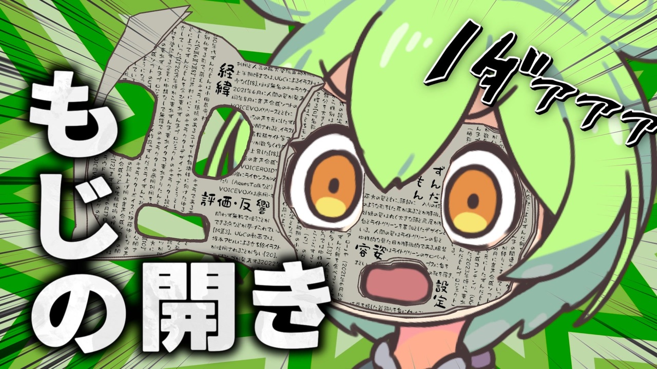 <span style="font-size: 18px;">「ありがとう」を「有難う」は逆効果!? <br>無い→ない、事→こと、良い→いい。 <br>漢字をひらがなに直す“開き”のプロ──『もじの開き屋』 <br>ずんだもんが、やたら漢字を使う人をぶった斬る!</span><br><br>【チャプター】<br><a href="#" class="seekTime" data-seekTime="00:00" onclick="seekNicoPlayer('#00:00'); return false;">#00:00</a> 『あじの開き』じゃなくて『もじの開き』 <br><a href="#" class="seekTime" data-seekTime="00:28" onclick="seekNicoPlayer('#00:28'); return false;">#00:28</a> 1.「当て字」「助詞」「補助用言」は、ひらがな <br><a href="#" class="seekTime" data-seekTime="03:00" onclick="seekNicoPlayer('#03:00'); return false;">#03:00</a> 2.「常用外漢字」は、ひらがな <br><a href="#" class="seekTime" data-seekTime="05:09" onclick="seekNicoPlayer('#05:09'); return false;">#05:09</a> 3.「横文字(カタカナ)」は、ひらがな <br><a href="#" class="seekTime" data-seekTime="06:50" onclick="seekNicoPlayer('#06:50'); return false;">#06:50</a> 4.「とにかく全部」ひらがな <br><a href="#" class="seekTime" data-seekTime="08:40" onclick="seekNicoPlayer('#08:40'); return false;">#08:40</a> 『もじの開き』は害悪だった? <br><a href="#" class="seekTime" data-seekTime="09:34" onclick="seekNicoPlayer('#09:34'); return false;">#09:34</a> あさま山荘のヤツvsお客さん <br><a href="#" class="seekTime" data-seekTime="10:22" onclick="seekNicoPlayer('#10:22'); return false;">#10:22</a> 『もじの開き』はほどほどに。 <br><a href="#" class="seekTime" data-seekTime="11:23" onclick="seekNicoPlayer('#11:23'); return false;">#11:23</a> ヘブンずんだもん・ドア BB<br><br>▼次回<br><a href="https://www.nicovideo.jp/watch/sm44967187" class="watch">sm44967187</a><br>▼前回<br><a href="https://www.nicovideo.jp/watch/sm44941202" class="watch">sm44941202</a><br> <br><span style="font-size: 10px;">VOICEVOX:ずんだもん 四国めたん WhiteCUL 白上虎太郎 玄野武宏</span>