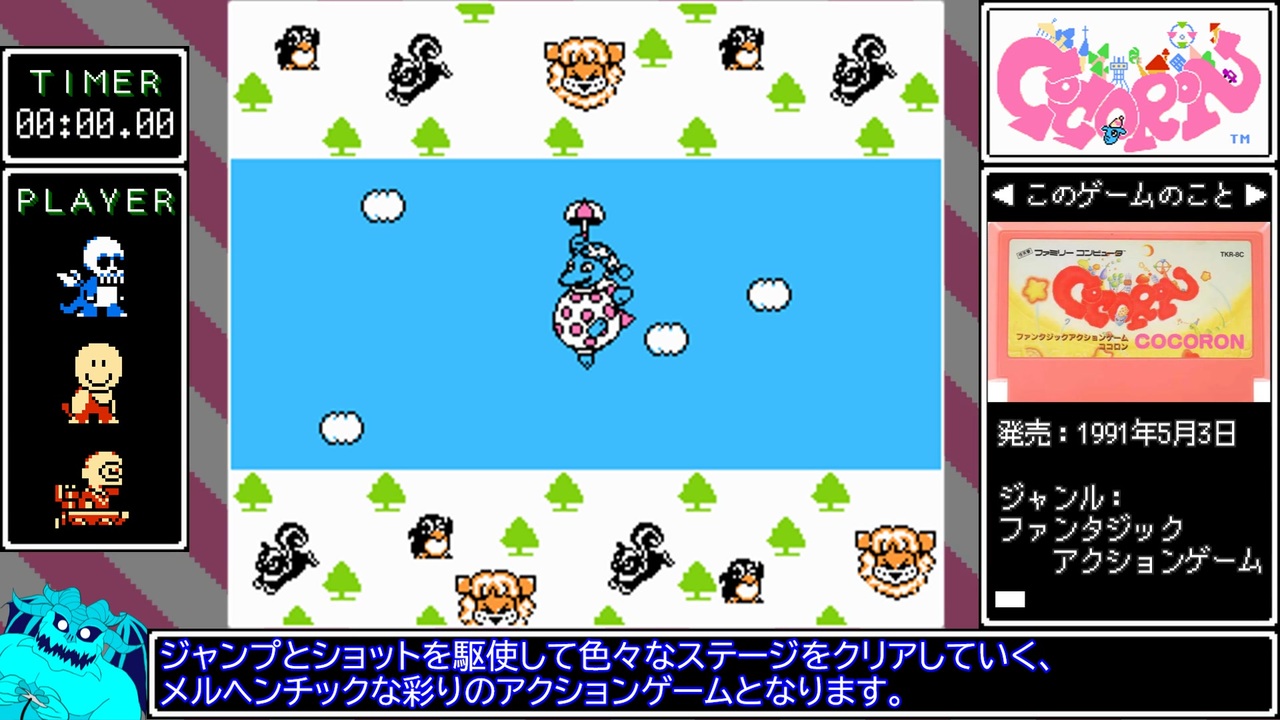 まだ記録が承認されてないのに投稿してしまうのは初投稿です。<br>ゲーム性、ドット絵、BGM、どれをとっても一級品のおすすめアクションゲームです!<br><br>~レギュレーション等~<br>●計測区間:ゲームスタートを押した瞬間~ラスボス撃破時のジングルが鳴り終わるまで<br>●使用機種:ニューファミコン実機<br>●連射機:未使用<br><br>無編集版→<a href="https://youtu.be/K_UJ0gtK68g" target="_blank" rel="noopener nofollow">https://youtu.be/K_UJ0gtK68g</a><br>実際の様子(生配信)→<a href="https://www.twitch.tv/videos/2449279110" target="_blank" rel="noopener nofollow">https://www.twitch.tv/videos/2449279110</a><br>他のRTA動画:<a href="https://www.nicovideo.jp/mylist/72204350" target="_blank" rel="noopener">mylist/72204350</a><br /><br><u>****宣伝領域****</u><br><span style="color: #9900ff;">◯Twitch:たまにゆっくり音声で配信してます。見てネ!</span><br>→ <a href="https://www.twitch.tv/chari_demon" target="_blank" rel="noopener nofollow">https://www.twitch.tv/chari_demon</a><br><span style="color: #0000ff;">◯Twitter:たまに役に立たないことをつぶやく場所。見なくてイイです!</span><br>→ <a href="https://twitter.com/MatChariot" target="_blank" rel="noopener nofollow">https://twitter.com/MatChariot</a>