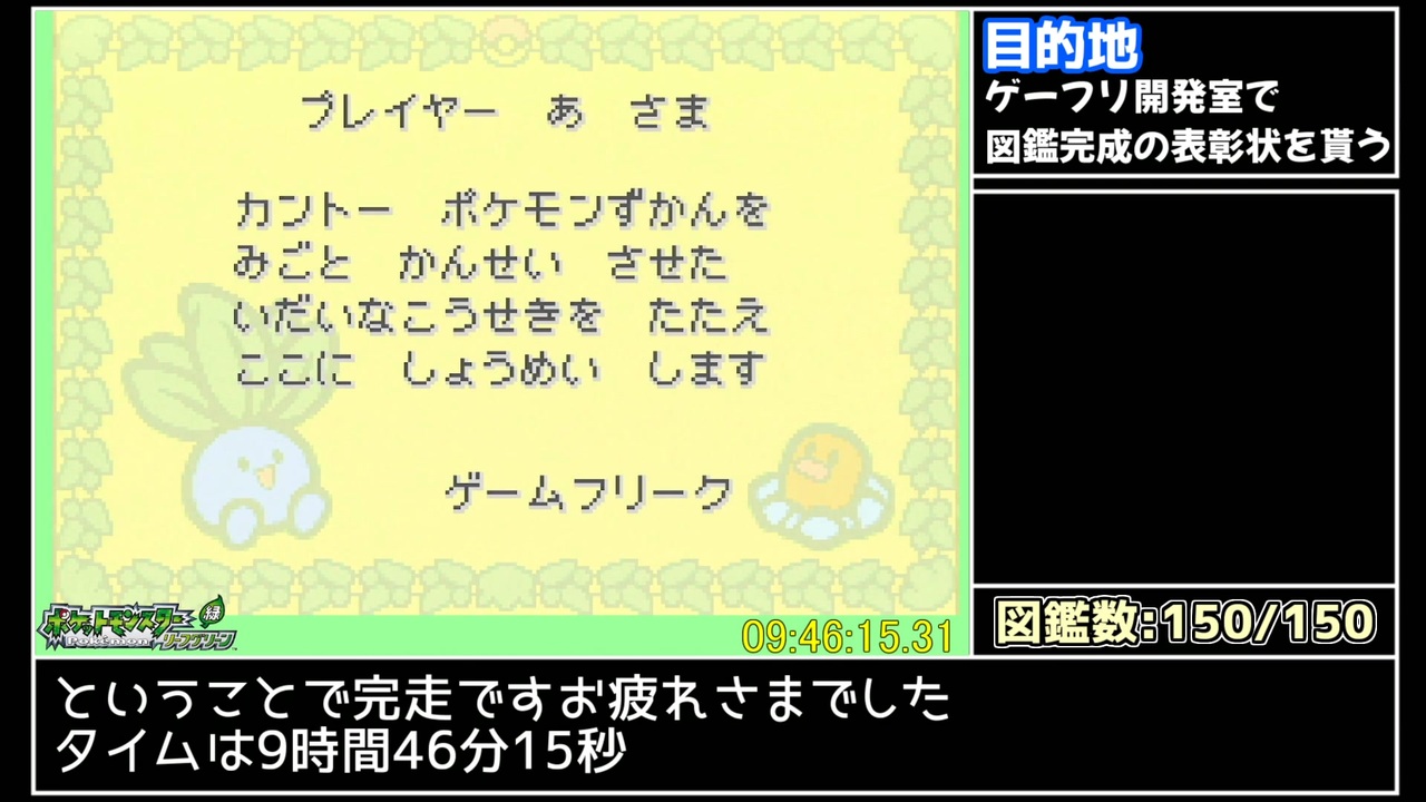 図鑑完成まで<br><br>・計測方法<br>-開始:どちらかのソフトで「さいしょからはじめる」を選択したタイミング<br>-終了:どちらかのソフトでカントー図鑑完成の賞状が表示されたタイミング<br><br>・捕捉<br>-使用ソフトはファイアレッド・リーフグリーン1本ずつ <br>-バグ技無し <br>-通信中以外の同時操作無し <br>-ミュウは不要<br><br>全part結合版<br><a href="https://youtu.be/kES7NkXELjE" target="_blank" rel="noopener nofollow">https://youtu.be/kES7NkXELjE</a><br><br>無編集の記録動画<br><a href="https://youtu.be/4KohYxLe99o" target="_blank" rel="noopener nofollow">https://youtu.be/4KohYxLe99o</a><br><br>前→<a href="https://www.nicovideo.jp/watch/sm44966342" class="watch">sm44966342</a><br>最初→<a href="https://www.nicovideo.jp/watch/sm44941288" class="watch">sm44941288</a><br><br>投稿したRTA解説part1まとめ<br><a href="https://www.nicovideo.jp/mylist/67368614" target="_blank" rel="noopener">mylist/67368614</a><br>
