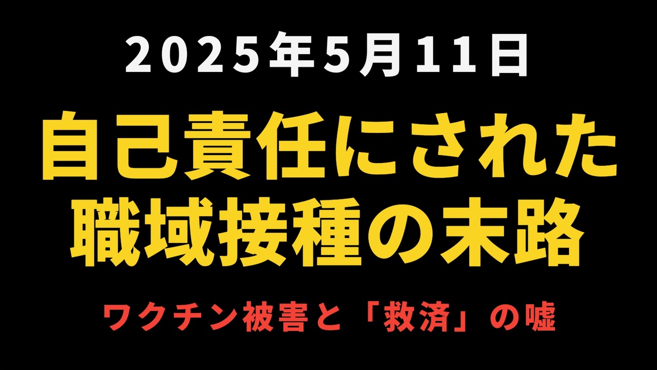 ◆自己責任にされた職域接種の末路 ~ ワクチン被害と「救済」の嘘<br><br>【参考URL】<br>①<a href="https://x.com/marukomaru777/status/1920862004488925420" target="_blank" rel="noopener nofollow">https://x.com/marukomaru777/status/1920862004488925420</a><br>②<a href="https://x.com/hiramatsu_kazu2/status/1920955413157093435" target="_blank" rel="noopener nofollow">https://x.com/hiramatsu_kazu2/status/1920955413157093435</a><br>③<a href="https://x.com/marukomaru777/status/1920996272485392875" target="_blank" rel="noopener nofollow">https://x.com/marukomaru777/status/1920996272485392875</a><br><br><br>職域接種で健康を壊しても、労災は認められず、会社からは「自己都合で辞めたことにしろ」と言われた。行政の救済制度も機能せず、窓口では「30分後は副反応ではない」と突っぱねられる。こうした声なき声を伝えるために、今、接種記録を手に取り、現実を広める必要がある。これは、ワクチン薬害の“今”を生きる人々の叫びだ。<br><br><br>◆ 今回の台本<br><a href="https://keiichiro8140.hatenablog.com/entry/20250511002" target="_blank" rel="noopener nofollow">https://keiichiro8140.hatenablog.com/entry/20250511002</a><br><br><br>◆マイリンク<br><a href="https://lit.link/keiichiro8140" target="_blank" rel="noopener nofollow">https://lit.link/keiichiro8140</a><br><br><br>コロナワクチン<br>職域接種<br>ワクチン薬害<br>労災認定<br>ブレインフォグ<br>行政の闇<br>健康被害<br>ワクチン被害<br>予防接種健康被害救済制度<br>ニュース<br>気になったニュース<br><br><br />著作権、肖像権に配慮して作成しております。<br><br>◆気になったニュースの台本!?<br>メモ代わりに作った台本をそのままあげてます<br><a href="https://keiichiro8140.hatenablog.com/." target="_blank" rel="noopener nofollow">https://keiichiro8140.hatenablog.com/.</a><br><br><br>ここからはシリーズ紹介<br><br><br>◆ ワクチン解毒・デトックス<br><a href="https://x.gd/fZweg" target="_blank" rel="noopener nofollow">https://x.gd/fZweg</a><br><br>◆ウイリアム・マキス博士のがん治療(イベルメクチン・フェンベンダゾール等)<br><a href="https://x.gd/AtFYS" target="_blank" rel="noopener nofollow">https://x.gd/AtFYS</a><br><br>◆予防接種健康被害救済制度<br><a href="https://x.gd/0xK9x" target="_blank" rel="noopener nofollow">https://x.gd/0xK9x</a><br><br>◆気になったニュース #1501~<br><br>◆ 【ショートver】気になったニュース<br><a href="https://x.gd/7MxXC" target="_blank" rel="noopener nofollow">https://x.gd/7MxXC</a><br><br>◆ 気になったニュース #1001~<br><a href="https://x.gd/Lp8gv" target="_blank" rel="noopener nofollow">https://x.gd/Lp8gv</a><br><br>◆ 気になったニュース #501~<br><a href="https://x.gd/EmbS4" target="_blank" rel="noopener nofollow">https://x.gd/EmbS4</a><br><br>◆ 気になったニュース #1~#500<br><a href="https://x.gd/uPhNb" target="_blank" rel="noopener nofollow">https://x.gd/uPhNb</a><br><br>◆ X(旧Twitter)・テレグラムで気になった情報<br><a href="https://x.gd/YG6FT" target="_blank" rel="noopener nofollow">https://x.gd/YG6FT</a><br><br>◆ 日比谷5万人パレードデ⚪生放送アーカイブ動画<br><a href="https://x.gd/3CHJv" target="_blank" rel="noopener nofollow">https://x.gd/3CHJv</a><br><br>◆日比谷5万人パレード⚪モのマイリスト作ってみました<br><a href="https://nico.ms/mylist/76828848?ref=sp_other" target="_blank" rel="noopener nofollow">https://nico.ms/mylist/76828848?ref=sp_other</a><br><br>◆3.30 令和の百姓⚪⚪<br><a href="https://www.nicovideo.jp/series/511791?ref=garage_share_other" target="_blank" rel="noopener nofollow">https://www.nicovideo.jp/series/511791?ref=garage_share_other</a><br><br>◆ 及川幸久さんの【XNEWS】シリーズ<br><a href="https://x.gd/3k78K" target="_blank" rel="noopener nofollow">https://x.gd/3k78K</a><br><br>◆これまでの動画<a href="https://x.gd/sPXoJ" target="_blank" rel="noopener nofollow">https://x.gd/sPXoJ</a><br><br>◆もしも(BAN)の時のためのマイリンク集<a href="https://lit.link/K-16_News44" target="_blank" rel="noopener nofollow">https://lit.link/K-16_News44</a><br><br>