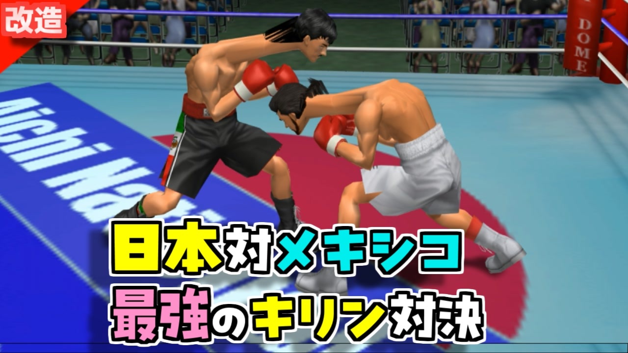日本のキリンとメキシコのキリンってどっちが強いのでしょうか?<br>気になってしょうがないので伊達さんとリカルドをキリン化して<br>戦わせてみました。<br>(そもそも論で言えば、純日本産、純メキシコ産のキリンって居るの・・・?)<br><br>改造内容としてはキリン化mod<br>2戦目はバッティング発動率増大<br>3戦目はキリン伊達さんを3倍速<br>の順に改造しています。<br><br>使用ソフト:はじめの一歩 2 VICTORIOUS ROAD PS2版<br>ジャンル:ボクシングゲーム<br><br>会長 VS リカルド →<a href="https://www.nicovideo.jp/watch/sm44079325" class="watch">sm44079325</a><br>デブになった鷹村 →<a href="https://www.nicovideo.jp/watch/sm43384767" class="watch">sm43384767</a><br>パパイヤ迫真の追撃 →<a href="https://www.nicovideo.jp/watch/sm44326277" class="watch">sm44326277</a><br>ゲロ道 VS アルフレド →<a href="https://www.nicovideo.jp/watch/sm44423708" class="watch">sm44423708</a><br>一歩追い打ちしてしまう →<a href="https://www.nicovideo.jp/watch/sm44079346" class="watch">sm44079346</a><br />動画に「いいね!」「マイリスト登録」よろしくお願いします。<br><br>・おすすめ<br>[TAS]Grand Theft Auto 3 Part1→<a href="https://www.nicovideo.jp/watch/sm14718961" class="watch">sm14718961</a><br>[TAS]MaxPayne デッドターゲット Part1→<a href="https://www.nicovideo.jp/watch/sm15093299" class="watch">sm15093299</a><br>[TAS]michigan Part1→<a href="https://www.nicovideo.jp/watch/sm18393230" class="watch">sm18393230</a><br><br>サポート頂けると励みになります<br>魔界塔士のサポーターになる→<a href="https://creator-support.nicovideo.jp/registration/15153622" target="_blank" rel="noopener nofollow">https://creator-support.nicovideo.jp/registration/15153622</a><br><br>TAS動画まとめ→<a href="https://koeiprogenitor.com/tas/matome/" target="_blank" rel="noopener nofollow">https://koeiprogenitor.com/tas/matome/</a><br>つべ→<a href="https://www.youtube.com/user/koeiprogenitor1/" target="_blank" rel="noopener nofollow">https://www.youtube.com/user/koeiprogenitor1/</a><br>インスタ→<a href="https://www.instagram.com/makaitoshi" target="_blank" rel="noopener nofollow">https://www.instagram.com/makaitoshi</a><br><br>本編→シリーズ一覧見てね<br>