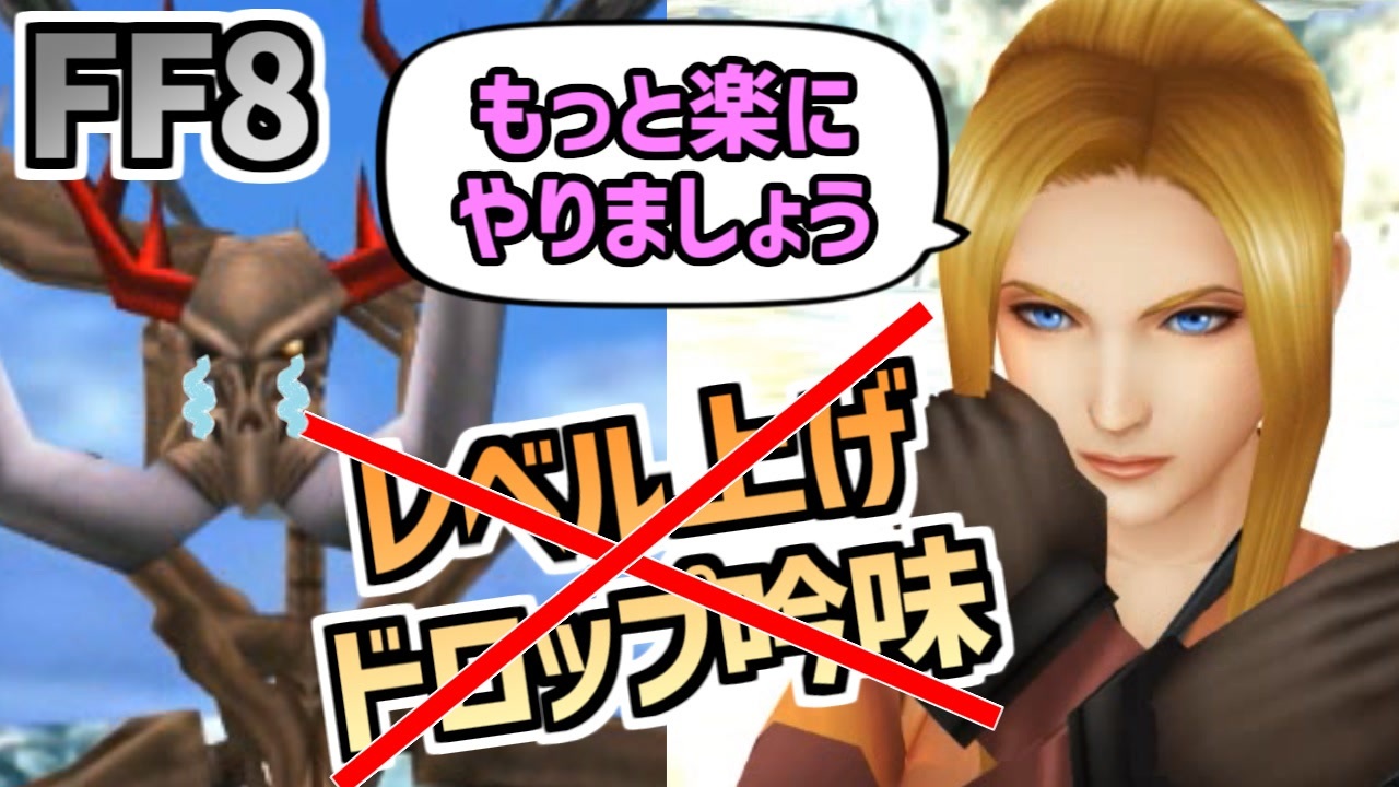 <span style="font-size: 18px;">元動画<a href="https://www.nicovideo.jp/watch/sm44978390" class="watch">sm44978390</a>を見てからご覧ください</span><br>使用ソフト:FF8 Remastered(steam版)<br><br><strong>【FF8動画シリーズ】</strong><br>◆めちゃくちゃ楽してFF8:<a href="https://www.nicovideo.jp/watch/sm42634440" class="watch">sm42634440</a><br>◆FF8最少「倒した敵の数」クリアに挑戦:<a href="https://www.nicovideo.jp/watch/sm41181428" class="watch">sm41181428</a><br>◆△ボタン禁止でFF8:<a href="https://www.nicovideo.jp/watch/sm38924669" class="watch">sm38924669</a><br>◆FF8 1行動1回縛り:<a href="https://www.nicovideo.jp/watch/sm36982623" class="watch">sm36982623</a><br>◆石橋を叩いてFF8(PC版)を初見プレイ :<a href="https://www.nicovideo.jp/watch/sm34318717" class="watch">sm34318717</a><br>◆FF8最少コマンド入力回数クリアに挑戦:<a href="https://www.nicovideo.jp/watch/sm29792055" class="watch">sm29792055</a><br>◆FF8ノージャンクンション1人旅+α:<a href="https://www.nicovideo.jp/watch/sm27238226" class="watch">sm27238226</a><br><br><strong>【youtube版】<br><a href="https://youtu.be/2MkNk61hpNU" target="_blank" rel="noopener nofollow">https://youtu.be/2MkNk61hpNU</a></strong><br><br>Copyright (C) 1999, 2019 SQUARE ENIX CO., LTD. All Rights Reserved.