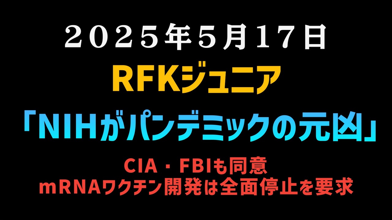 ◆RFKジュニア「NIHがパンデミックの元凶」CIA・FBIも同意、mRNA開発は全面停止を要求<br><a href="https://t.co/YRStlfbKv0" target="_blank" rel="noopener nofollow">https://t.co/YRStlfbKv0</a><br><br>新型コロナワクチン、妊婦および子供への接種「推奨」を米厚生省が取りやめる方針...米紙報道<br><a href="https://x.com/JINKOUZOUKA_jp/status/1923246738099339564?t=cwvsjuO9ULXXIl_JcsdVdw&s=19" target="_blank" rel="noopener nofollow">https://x.com/JINKOUZOUKA_jp/status/1923246738099339564?t=cwvsjuO9ULXXIl_JcsdVdw&s=19</a><br><br><br>あらすじ/予告編<br>パンデミックの原因は「自然発生」ではなかった? ロバート・F・ケネディ・ジュニアは、機能獲得研究の危険性に警鐘を鳴らし、NIHの研究がCOVID-19の発生源である可能性を指摘。CIAやFBIなどの政府機関もこれに同調する中、mRNAワクチン開発の即時停止を要求し、国民を交えた科学の是非を問う議論を提案。この動画は、隠されてきた真実を明るみに出すきっかけとなるかもしれません。<br><br><br>◆ 今回の台本<br><a href="https://keiichiro8140.hatenablog.com/entry/20250517001" target="_blank" rel="noopener nofollow">https://keiichiro8140.hatenablog.com/entry/20250517001</a><br><br><br>◆マイリンク<br><a href="https://lit.link/keiichiro8140" target="_blank" rel="noopener nofollow">https://lit.link/keiichiro8140</a><br><br><br>RFKジュニア<br>機能獲得研究<br>NIH<br>mRNAワクチン<br>COVIDパンデミック<br>CIA<br>FBI<br>アメリカ政府<br>ワクチン規制<br>ニュース<br>気になったニュース<br><br><br />著作権、肖像権に配慮して作成しております。<br><br>◆気になったニュースの台本!?<br>メモ代わりに作った台本をそのままあげてます<br><a href="https://keiichiro8140.hatenablog.com/." target="_blank" rel="noopener nofollow">https://keiichiro8140.hatenablog.com/.</a><br><br><br>ここからはシリーズ紹介<br><br><br>◆ ワクチン解毒・デトックス<br><a href="https://x.gd/fZweg" target="_blank" rel="noopener nofollow">https://x.gd/fZweg</a><br><br>◆ウイリアム・マキス博士のがん治療(イベルメクチン・フェンベンダゾール等)<br><a href="https://x.gd/AtFYS" target="_blank" rel="noopener nofollow">https://x.gd/AtFYS</a><br><br>◆予防接種健康被害救済制度<br><a href="https://x.gd/0xK9x" target="_blank" rel="noopener nofollow">https://x.gd/0xK9x</a><br><br>◆気になったニュース #1501~<br><br>◆ 【ショートver】気になったニュース<br><a href="https://x.gd/7MxXC" target="_blank" rel="noopener nofollow">https://x.gd/7MxXC</a><br><br>◆ 気になったニュース #1001~<br><a href="https://x.gd/Lp8gv" target="_blank" rel="noopener nofollow">https://x.gd/Lp8gv</a><br><br>◆ 気になったニュース #501~<br><a href="https://x.gd/EmbS4" target="_blank" rel="noopener nofollow">https://x.gd/EmbS4</a><br><br>◆ 気になったニュース #1~#500<br><a href="https://x.gd/uPhNb" target="_blank" rel="noopener nofollow">https://x.gd/uPhNb</a><br><br>◆ X(旧Twitter)・テレグラムで気になった情報<br><a href="https://x.gd/YG6FT" target="_blank" rel="noopener nofollow">https://x.gd/YG6FT</a><br><br>◆ 日比谷5万人パレードデ⚪生放送アーカイブ動画<br><a href="https://x.gd/3CHJv" target="_blank" rel="noopener nofollow">https://x.gd/3CHJv</a><br><br>◆日比谷5万人パレード⚪モのマイリスト作ってみました<br><a href="https://nico.ms/mylist/76828848?ref=sp_other" target="_blank" rel="noopener nofollow">https://nico.ms/mylist/76828848?ref=sp_other</a><br><br>◆3.30 令和の百姓⚪⚪<br><a href="https://www.nicovideo.jp/series/511791?ref=garage_share_other" target="_blank" rel="noopener nofollow">https://www.nicovideo.jp/series/511791?ref=garage_share_other</a><br><br>◆ 及川幸久さんの【XNEWS】シリーズ<br><a href="https://x.gd/3k78K" target="_blank" rel="noopener nofollow">https://x.gd/3k78K</a><br><br>◆これまでの動画<a href="https://x.gd/sPXoJ" target="_blank" rel="noopener nofollow">https://x.gd/sPXoJ</a><br><br>◆もしも(BAN)の時のためのマイリンク集<a href="https://lit.link/K-16_News44" target="_blank" rel="noopener nofollow">https://lit.link/K-16_News44</a><br><br>