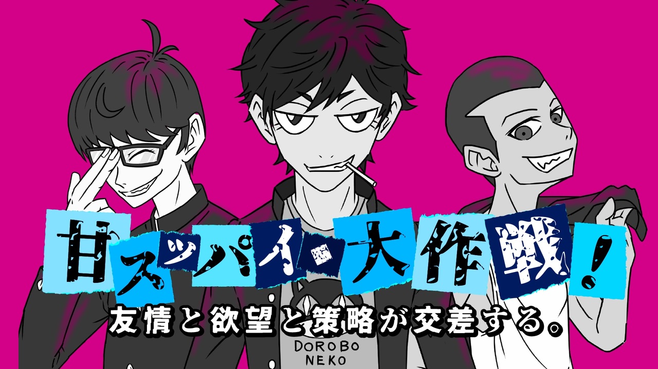 <span style="font-size: 16px;">『架空アニソン祭2025投稿作品』</span><br><br>海外ミステリー界の鬼才である<br><strong>Erogar Ching Poe</strong>先生の<br>話題作がまさかのアニメ化!?<br><br>新番組 :甘スッパイ大作戦!<br>放送日時:2025年05月17日 0:00~<br><br>★☆作品概要☆★<br>趣味も性格も異なる<span style="color: #666666;"><strong>思</strong></span><span style="color: #ff0000;"><strong>春</strong></span><span style="color: #0000ff;"><strong>期</strong></span>男子3人。<br>彼らには大人に相談できない秘密があった。<br><span style="color: #ff00ff;">夢</span>と<span style="color: #0000ff;">現実</span>、<span style="color: #ff9900;">光</span>と<span style="color: #9900ff;">影</span>・・・<br>苦難乗り越え目指す場所にあるものは!?<br><br>どうも、<strong>Dx Bet Pin(でらべっぴん)</strong>です。<br>昨年に続き今年も無事に参加することができました。<br><br>とっつぁん「くっそぉ、一足遅かったのか、<br> DxBetPinめ、まんまと盗みおって!」<br>リスナー様「いいえ。あの方は何も盗らなかったわ。<br> わたくしのために戦ってくださったんです。」<br>とっつぁん「いや、奴はとんでもないものを盗んでいきました・・・<br> あなたの90秒です。」<br>リスナー様「…はい!」<br><br>そんな感じで「好き」と「らしさ」を散りばめた90秒。<br>楽しんでもらえればうれしいな。<br><br>◆Music&Lyrics&Movie:Dx Bet Pin<br> <a href="https://x.com/Dx_Bet_Pin" target="_blank" rel="noopener nofollow">https://x.com/Dx_Bet_Pin</a><br>◆Vocal:宮舞モカ、重音テト、音街ウナ<br> (All singing uses Synthesizer V)<br>◆Voice:フリモメン(Voice Peak)<br><br>背景イラスト<br>イラストAC様:<a href="https://www.ac-illust.com/" target="_blank" rel="noopener nofollow">https://www.ac-illust.com/</a><br>SILHOUETTE DESIGN様:<a href="https://kage-design.com/" target="_blank" rel="noopener nofollow">https://kage-design.com/</a>