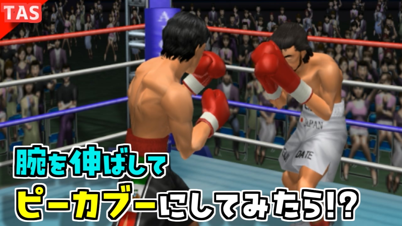 ピーカブースタイルって本当に防御力高いんでしょうか?<br>なら、防御力の弱い伊達さんに装着してみて検証してみよう。<br><br>あっそうだ!<br>さらに腕を伸ばせばさらに防御力アップするのではないですかね?<br><br>と言う事で、今日の改造内容は<br>・伊達さんをピーカブースタイルに強制変更<br>・前腕を延長<br>の様にされております<br><br>使用ソフト:はじめの一歩 2 VICTORIOUS ROAD PS2版<br>ジャンル:ボクシングゲーム<br><br>会長 VS リカルド →<a href="https://www.nicovideo.jp/watch/sm44079325" class="watch">sm44079325</a><br>デブになった鷹村 →<a href="https://www.nicovideo.jp/watch/sm43384767" class="watch">sm43384767</a><br>パパイヤ迫真の追撃 →<a href="https://www.nicovideo.jp/watch/sm44326277" class="watch">sm44326277</a><br>ゲロ道 VS アルフレド →<a href="https://www.nicovideo.jp/watch/sm44423708" class="watch">sm44423708</a><br>一歩追い打ちしてしまう →<a href="https://www.nicovideo.jp/watch/sm44079346" class="watch">sm44079346</a><br />動画に「いいね!」「マイリスト登録」よろしくお願いします。<br><br>・おすすめ<br>[TAS]Grand Theft Auto 3 Part1→<a href="https://www.nicovideo.jp/watch/sm14718961" class="watch">sm14718961</a><br>[TAS]MaxPayne デッドターゲット Part1→<a href="https://www.nicovideo.jp/watch/sm15093299" class="watch">sm15093299</a><br>[TAS]michigan Part1→<a href="https://www.nicovideo.jp/watch/sm18393230" class="watch">sm18393230</a><br><br>サポート頂けると励みになります<br>魔界塔士のサポーターになる→<a href="https://creator-support.nicovideo.jp/registration/15153622" target="_blank" rel="noopener nofollow">https://creator-support.nicovideo.jp/registration/15153622</a><br><br>TAS動画まとめ→<a href="https://koeiprogenitor.com/tas/matome/" target="_blank" rel="noopener nofollow">https://koeiprogenitor.com/tas/matome/</a><br>つべ→<a href="https://www.youtube.com/user/koeiprogenitor1/" target="_blank" rel="noopener nofollow">https://www.youtube.com/user/koeiprogenitor1/</a><br>インスタ→<a href="https://www.instagram.com/makaitoshi" target="_blank" rel="noopener nofollow">https://www.instagram.com/makaitoshi</a><br><br>本編→シリーズ一覧見てね<br>
