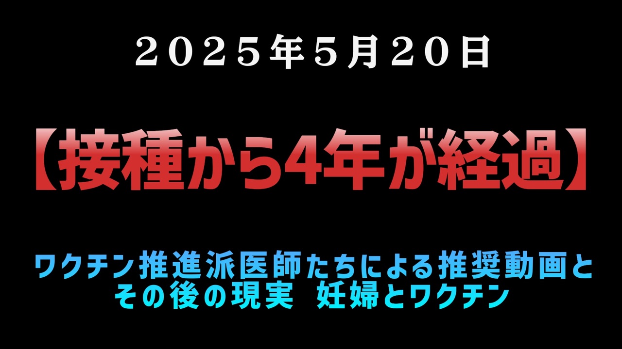 あらすじ/予告編<br><br>「ワクチンは妊婦にも安全」― その言葉を信じた人々が、いま何を語っているのか。<br>3年前の専門家発言と、X上に残るリアルな声を対比し、知られざる“その後”を明らかにします。<br>月経異常、不妊、流産、死産、そして赤ちゃんの不調。<br>本動画では、製薬会社やメディアの視点を排し、被害者の体験に寄り添うことで、見過ごされてきた真実に迫ります。<br>誰にとっても他人事ではない問題。<br>「科学的に安全」だったはずの言葉が、人生をどう変えてしまったのか。<br><br><br>【接種から4年が経過】ワクチン推進派医師の推奨動画と、その後の現実<br><br><a href="https://t.co/Y4KhMvxHeY" target="_blank" rel="noopener nofollow">https://t.co/Y4KhMvxHeY</a><br><a href="https://t.co/4RCidLlvpw" target="_blank" rel="noopener nofollow">https://t.co/4RCidLlvpw</a><br><br><br>◆ 今回の台本<br><a href="https://keiichiro8140.hatenablog.com/entry/20250520005" target="_blank" rel="noopener nofollow">https://keiichiro8140.hatenablog.com/entry/20250520005</a><br><br><br>◆マイリンク<br><a href="https://lit.link/keiichiro8140" target="_blank" rel="noopener nofollow">https://lit.link/keiichiro8140</a><br><br><br>【赤ちゃんまでスパイクタンパクを作る】◆新型コロナワクチン意図的なデータ改ざん疑惑?CDC幹部による“データ操作”とスパイク産生の衝撃j<br><a href="https://www.nicovideo.jp/watch/sm44979571" class="watch">sm44979571</a><br><br><br />著作権、肖像権に配慮して作成しております。<br><br>◆気になったニュースの台本!?<br>メモ代わりに作った台本をそのままあげてます<br><a href="https://keiichiro8140.hatenablog.com/." target="_blank" rel="noopener nofollow">https://keiichiro8140.hatenablog.com/.</a><br><br><br>ここからはシリーズ紹介<br><br><br>◆ ワクチン解毒・デトックス<br><a href="https://x.gd/fZweg" target="_blank" rel="noopener nofollow">https://x.gd/fZweg</a><br><br>◆ウイリアム・マキス博士のがん治療(イベルメクチン・フェンベンダゾール等)<br><a href="https://x.gd/AtFYS" target="_blank" rel="noopener nofollow">https://x.gd/AtFYS</a><br><br>◆予防接種健康被害救済制度<br><a href="https://x.gd/0xK9x" target="_blank" rel="noopener nofollow">https://x.gd/0xK9x</a><br><br>◆気になったニュース #1501~<br><br>◆ 【ショートver】気になったニュース<br><a href="https://x.gd/7MxXC" target="_blank" rel="noopener nofollow">https://x.gd/7MxXC</a><br><br>◆ 気になったニュース #1001~<br><a href="https://x.gd/Lp8gv" target="_blank" rel="noopener nofollow">https://x.gd/Lp8gv</a><br><br>◆ 気になったニュース #501~<br><a href="https://x.gd/EmbS4" target="_blank" rel="noopener nofollow">https://x.gd/EmbS4</a><br><br>◆ 気になったニュース #1~#500<br><a href="https://x.gd/uPhNb" target="_blank" rel="noopener nofollow">https://x.gd/uPhNb</a><br><br>◆ X(旧Twitter)・テレグラムで気になった情報<br><a href="https://x.gd/YG6FT" target="_blank" rel="noopener nofollow">https://x.gd/YG6FT</a><br><br>◆ 日比谷5万人パレードデ⚪生放送アーカイブ動画<br><a href="https://x.gd/3CHJv" target="_blank" rel="noopener nofollow">https://x.gd/3CHJv</a><br><br>◆日比谷5万人パレード⚪モのマイリスト作ってみました<br><a href="https://nico.ms/mylist/76828848?ref=sp_other" target="_blank" rel="noopener nofollow">https://nico.ms/mylist/76828848?ref=sp_other</a><br><br>◆3.30 令和の百姓⚪⚪<br><a href="https://www.nicovideo.jp/series/511791?ref=garage_share_other" target="_blank" rel="noopener nofollow">https://www.nicovideo.jp/series/511791?ref=garage_share_other</a><br><br>◆ 及川幸久さんの【XNEWS】シリーズ<br><a href="https://x.gd/3k78K" target="_blank" rel="noopener nofollow">https://x.gd/3k78K</a><br><br>◆これまでの動画<a href="https://x.gd/sPXoJ" target="_blank" rel="noopener nofollow">https://x.gd/sPXoJ</a><br><br>◆もしも(BAN)の時のためのマイリンク集<a href="https://lit.link/K-16_News44" target="_blank" rel="noopener nofollow">https://lit.link/K-16_News44</a><br><br>