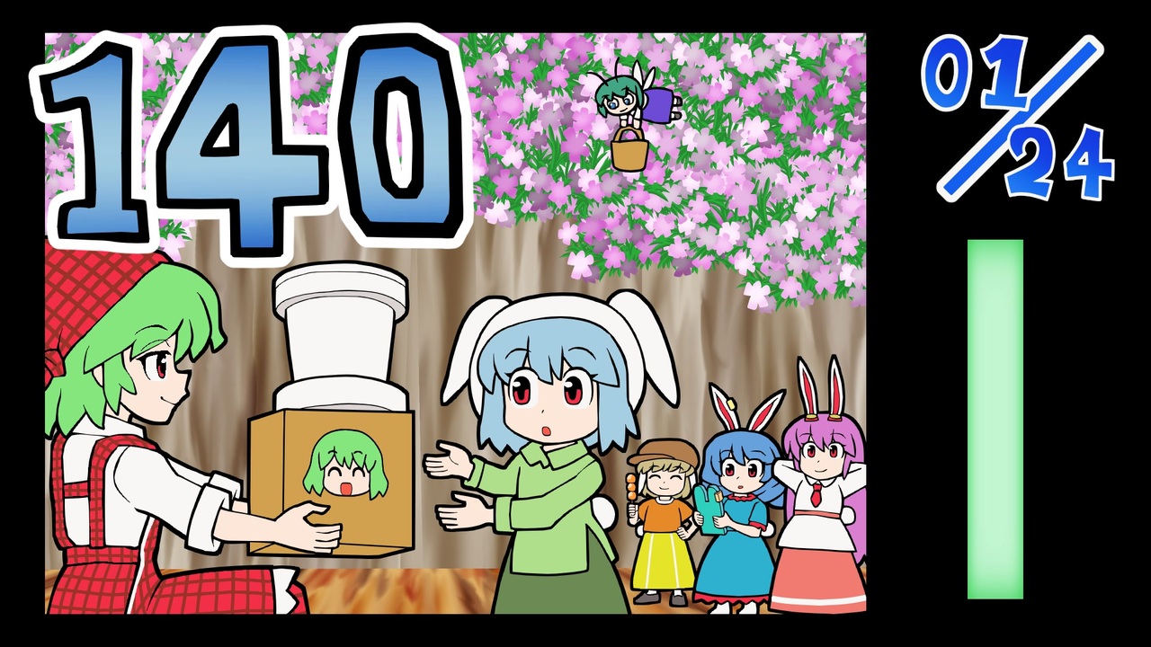 前→<a href="https://www.nicovideo.jp/watch/sm44828388" class="watch">sm44828388</a> 次→<a href="https://www.nicovideo.jp/watch/sm45166240" class="watch">sm45166240</a> <a href="https://www.nicovideo.jp/mylist/76612272" target="_blank" rel="noopener">mylist/76612272</a><br>動画制作感想→<a href="https://seiga.nicovideo.jp/seiga/im11614627" target="_blank" rel="noopener">im11614627</a><br><br>目覚めし兎レイセンは幽香から人参栽培を教わる。<br><br>【登場人物】<br>レイセン 鈴仙・優曇華院・イナバ 清蘭 鈴瑚 風見幽香 綿月依姫 綿月豊姫 稀神サグメ<br><br>【東方Projectの二次創作ガイドライン】<br><a href="https://touhou-project.news/guideline/" target="_blank" rel="noopener nofollow">https://touhou-project.news/guideline/</a><br><br>[ 支援もできます ] <br>Fanbox → <a href="https://ninoseyasunori.fanbox.cc/" target="_blank" rel="noopener nofollow">https://ninoseyasunori.fanbox.cc/</a><br><br>[ BGM ]<br>【東方自作アレンジ】 ラクダと旅する 【秘神マターラ】 ajapa / ソラネビ <br><a href="https://www.nicovideo.jp/watch/sm41100428" class="watch">sm41100428</a><br><br><strong>■アニメ作品集■<br><br>【東方手描きアニメ】ぴちゅーんパラレルイリュージョン (第3シリーズ) </strong><br>マイリスト→<a href="https://www.nicovideo.jp/mylist/76078596" target="_blank" rel="noopener">mylist/76078596</a><br>シリーズ→<a href="https://www.nicovideo.jp/series/453646" target="_blank" rel="noopener">series/453646</a><br><br><strong>【東方手描き紙芝居】 虹色吉報</strong><br>マイリスト→<a href="https://www.nicovideo.jp/mylist/76612272" target="_blank" rel="noopener">mylist/76612272</a><br>シリーズ→<a href="https://www.nicovideo.jp/series/467707" target="_blank" rel="noopener">series/467707</a><br><br><strong>【東方手描きアニメ】げんそう三幼蝶 (第2シリーズ)</strong><br>マイリスト→<a href="https://www.nicovideo.jp/mylist/73324857" target="_blank" rel="noopener">mylist/73324857</a><br>シリーズ→<a href="https://www.nicovideo.jp/series/331631" target="_blank" rel="noopener">series/331631</a><br><br><strong>【東方手描きアニメ】ぴちゅーん幻想郷 (第1シリーズ)</strong><br>マイリスト→<a href="https://www.nicovideo.jp/mylist/57690400" target="_blank" rel="noopener">mylist/57690400</a><br>シリーズ→<a href="https://www.nicovideo.jp/series/7277" target="_blank" rel="noopener">series/7277</a><br>