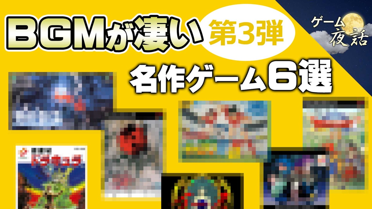 前回の動画にギフト・ニコニ広告して下さった方、ありがとうございました。<br>原則、「前編」「後編」合わせて毎回約30分を予定しています。<br><br><span style="color: #ff0000;"><strong>この動画は、昨年ニコニコ休止中に作っていた動画です。</strong></span><br><br>🔽<strong>BGMが素晴らしい名作ゲーム-第3弾</strong><br>素晴らしいゲーム音楽について語る企画です。<br><br><strong>▼ゲーム夜話マイリスト</strong><br><a href="https://www.nicovideo.jp/mylist/56973971" target="_blank" rel="noopener nofollow">https://www.nicovideo.jp/mylist/56973971</a><br><br><strong>✅関連動画</strong><br>🔽BGMが素晴らしい名作ゲーム7選-第1弾<br><a href="https://www.nicovideo.jp/watch/sm43229607" class="watch">sm43229607</a><br><br>🔽BGMが素晴らしい名作ゲーム7選-第2弾<br>前編:<a href="https://www.nicovideo.jp/watch/sm43605965" class="watch">sm43605965</a><br>後編:<a href="https://www.nicovideo.jp/watch/sm43627530" class="watch">sm43627530</a><br><br>■ゲーム夜話「X(旧:ツイッター」<a href="https://twitter.com/gameyawa" target="_blank" rel="noopener nofollow">https://twitter.com/gameyawa</a>