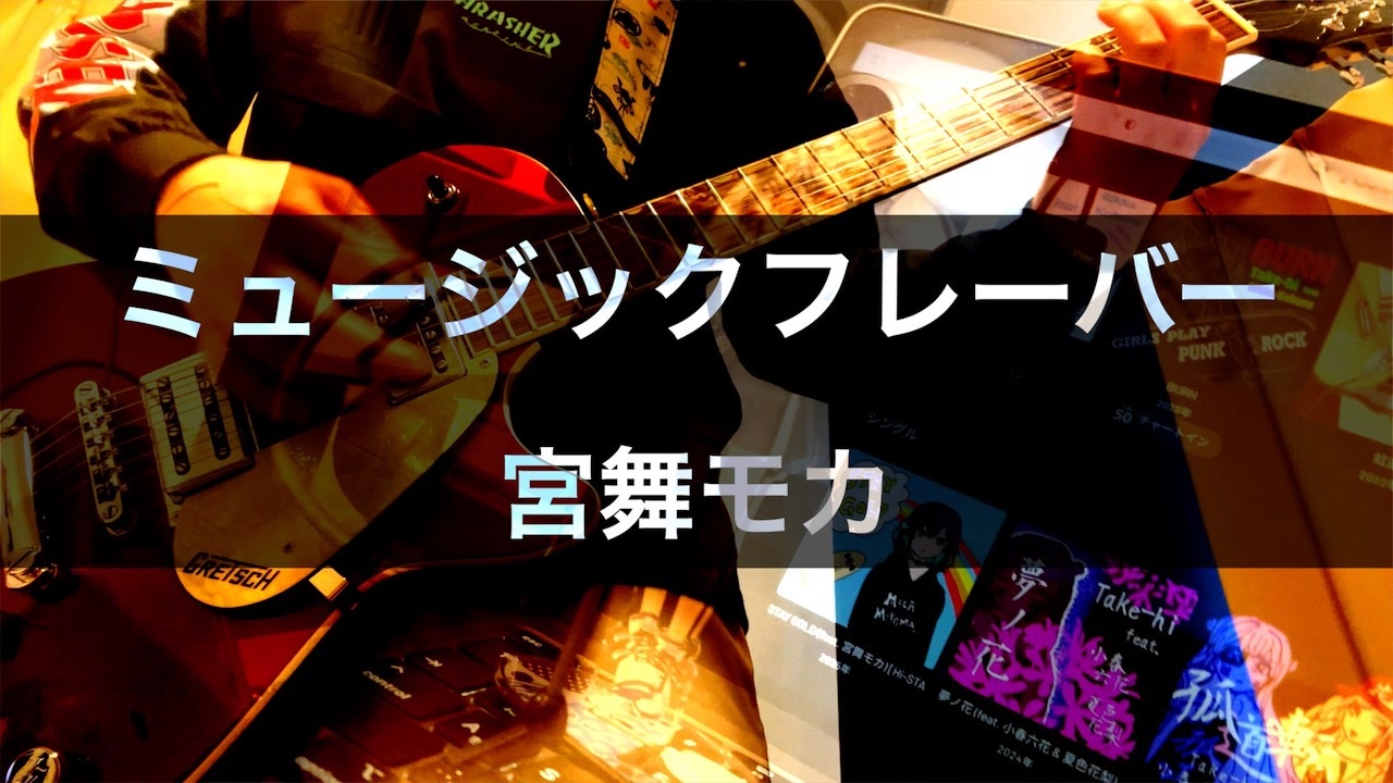 「ミュージックフレーバー」<br>歌:宮舞モカ(SynthesizerV2 AI)<br>コーラス:小春六花&夏色花梨(SynthesizerV AI)<br>ボカロP:Take-hi(X: <a href="https://twitter.com/takepoo0628" target="_blank" rel="noopener nofollow">https://twitter.com/takepoo0628</a> )<br><br>【歌詞】<br>絡まる道の<br>最果てに咲く花の名は<br>誰かがくれた優しさの様<br>Stay by my side<br><br>暗んだ街の<br>宇宙に浮かぶ星達に<br>願う言葉は風に乗った<br>It left with my heart<br><br>そうさ<br>誰だって人生を歩んでくのさ<br>ゆらりくらりと進む船の舵を切れ<br><br>放て<br>最高のMUSIC<br>とりあえず上げてくFunction↑上↑<br><br>かなり<br>最低なFlavor<br>振り払って行く最高のWay<br><br>漂う雲の<br>その隙間の光から<br>舞い降りる天使の羽の様に<br>I want to be free<br><br>揶揄う嘘の<br>ニセモノの笑い顔に<br>ツバを吐きつけ<br>僕は笑った<br>I want to be punk<br>Yeah<br><br>そうさ<br>誰かの為に生きたっていいさ<br>縛られた腕を青空へ<br>突き出して<br>笑えばいいさ<br><br>放て<br>最高のMUSIC<br>誰にも止められnight is going well<br><br>かなり<br>最弱なBraver<br>立ち向かって行く最強の↑上↑<br><br>上の上の<br>そのまた上のrivalを<br><br>倒せ<br>逃げ道は無いんだ<br>誰にも真似出来ない様なFashionで<br>鳴らすRock Music<br>Every day, every all night<br><br>かます<br>最高のStyle<br>