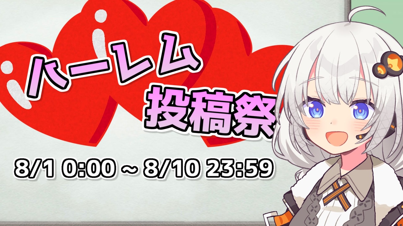 <span style="font-size: 24px;"><strong>ボイロのハーレム動画が見たい!</strong></span><br><br><span style="font-size: 18px;"><strong>開催期間</strong></span><br>2025/8/1~2025/8/10<br><br><span style="font-size: 18px;"><strong>レギュレーション</strong></span><br>・ハーレム要素を含む動画であること<br><br>・キャラクターのある合成音声ソフトを用いること<br><br>・コッショリやダークサイド要素を含む場合はゾーニングを行うこと<br><br>・『ハーレム投稿祭』のタグロックすること<br><br>主催のx→<a href="https://x.com/Kehiro571624" target="_blank" rel="noopener nofollow">https://x.com/Kehiro571624</a><br>AI.VOICE:紲星あかり<br><br>追記<br>Q.食べ放題バイキングで料理に囲まれるあかりちゃんはハーレムに含まれますか……?<br>A.料理側があかりちゃんのことが好きなら含まれます<br><br>Q.これマスターがボイロ達から好かれまくってる動画を投稿して良いんだよな……?<br>A.OKです<br><br>Q.ゾーニングってタグロック?<br>A.タグロックしたりやタイトルに「ダークサイド注意」を付ける等してください
