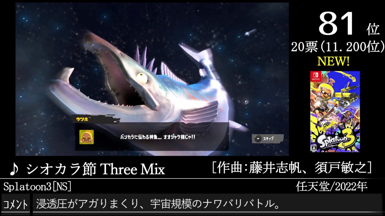\ \ / /<br> 殺伐としたニコニコに秋鮭が!!<br>/ / \ \<br> (/\)<br> / \ 人_人_人_人_人_ <br> ((゚Д゚))_ ノ ゝ <br> //@@|ヽ ) クマー!! (<br> (ノ||||||∪´ヽ γ<br> ∪∪∪ Y⌒Y⌒Y⌒Y⌒Y<br><br> ■ ■■■ ■ <br> ■■■■■■■ ■ ■ ■ ■ <br> ■ ■ ■■■■■■■■■■<br> ■■■■■■■ ■ ■ ■ ■ <br> ■■■■■■■■■ ■■■ ■ ■ ■ <br> ■ ■ ■■■■■■ <br> ■■■■■■■■ ■■■ ■ ■ <br> ■ ■ ■ ■ ■ ■ ■■ <br> ■ ■ ■ ■ ■ ■ ■ ■ <br> ■■ <br>---------------------------------<br>スクリーンショット大募集!<br>詳しくは下記投稿フォームのご案内やスクショ状況スプレッドシート等をご確認下さい<br>↓<br><a href="https://ws.formzu.net/dist/S9500351/" target="_blank" rel="noopener nofollow">https://ws.formzu.net/dist/S9500351/</a><br><br>投票結果はこちら<br>↓<br><a href="https://w.atwiki.jp/gamemusicbest100/pages/10214.html" target="_blank" rel="noopener nofollow">https://w.atwiki.jp/gamemusicbest100/pages/10214.html</a><br><br>ご質問等ある際はこちらのページへコメント下さいませ<br>↓<br><a href="https://arutoneriko2.hatenablog.com/entry/2023/12/17/001849" target="_blank" rel="noopener nofollow">https://arutoneriko2.hatenablog.com/entry/2023/12/17/001849</a><br>---------------------------------<br><a href="https://www.nicovideo.jp/watch/sm45001353" class="watch">sm45001353</a>←Part37|今回|Part39→<a href="https://www.nicovideo.jp/watch/sm45086038" class="watch">sm45086038</a> <a href="https://www.nicovideo.jp/mylist/50993049" target="_blank" rel="noopener">mylist/50993049</a><br>---------------------------------<br>↓ショートカット↓<br><br>95位<a href="#" class="seekTime" data-seekTime="0:31" onclick="seekNicoPlayer('#0:31'); return false;">#0:31</a> 94位<a href="#" class="seekTime" data-seekTime="2:15" onclick="seekNicoPlayer('#2:15'); return false;">#2:15</a> 93位<a href="#" class="seekTime" data-seekTime="5:45" onclick="seekNicoPlayer('#5:45'); return false;">#5:45</a> 92位<a href="#" class="seekTime" data-seekTime="8:41" onclick="seekNicoPlayer('#8:41'); return false;">#8:41</a> 91位<a href="#" class="seekTime" data-seekTime="11:26" onclick="seekNicoPlayer('#11:26'); return false;">#11:26</a> 90位<a href="#" class="seekTime" data-seekTime="14:38" onclick="seekNicoPlayer('#14:38'); return false;">#14:38</a><br>89位<a href="#" class="seekTime" data-seekTime="17:45" onclick="seekNicoPlayer('#17:45'); return false;">#17:45</a> 88位<a href="#" class="seekTime" data-seekTime="22:54" onclick="seekNicoPlayer('#22:54'); return false;">#22:54</a> 87位<a href="#" class="seekTime" data-seekTime="27:22" onclick="seekNicoPlayer('#27:22'); return false;">#27:22</a> 86位<a href="#" class="seekTime" data-seekTime="30:34" onclick="seekNicoPlayer('#30:34'); return false;">#30:34</a> 85位<a href="#" class="seekTime" data-seekTime="33:01" onclick="seekNicoPlayer('#33:01'); return false;">#33:01</a> 84位<a href="#" class="seekTime" data-seekTime="36:11" onclick="seekNicoPlayer('#36:11'); return false;">#36:11</a><br>83位<a href="#" class="seekTime" data-seekTime="40:34" onclick="seekNicoPlayer('#40:34'); return false;">#40:34</a> 82位<a href="#" class="seekTime" data-seekTime="43:10" onclick="seekNicoPlayer('#43:10'); return false;">#43:10</a> 81位<a href="#" class="seekTime" data-seekTime="45:04" onclick="seekNicoPlayer('#45:04'); return false;">#45:04</a> 80位<a href="#" class="seekTime" data-seekTime="51:59" onclick="seekNicoPlayer('#51:59'); return false;">#51:59</a> 79位<a href="#" class="seekTime" data-seekTime="57:23" onclick="seekNicoPlayer('#57:23'); return false;">#57:23</a> 78位<a href="#" class="seekTime" data-seekTime="62:04" onclick="seekNicoPlayer('#62:04'); return false;">#62:04</a><br>77位<a href="#" class="seekTime" data-seekTime="64:51" onclick="seekNicoPlayer('#64:51'); return false;">#64:51</a> 76位<a href="#" class="seekTime" data-seekTime="68:04" onclick="seekNicoPlayer('#68:04'); return false;">#68:04</a> 75位<a href="#" class="seekTime" data-seekTime="71:22" onclick="seekNicoPlayer('#71:22'); return false;">#71:22</a> 74位<a href="#" class="seekTime" data-seekTime="73:47" onclick="seekNicoPlayer('#73:47'); return false;">#73:47</a> 73位<a href="#" class="seekTime" data-seekTime="78:45" onclick="seekNicoPlayer('#78:45'); return false;">#78:45</a>