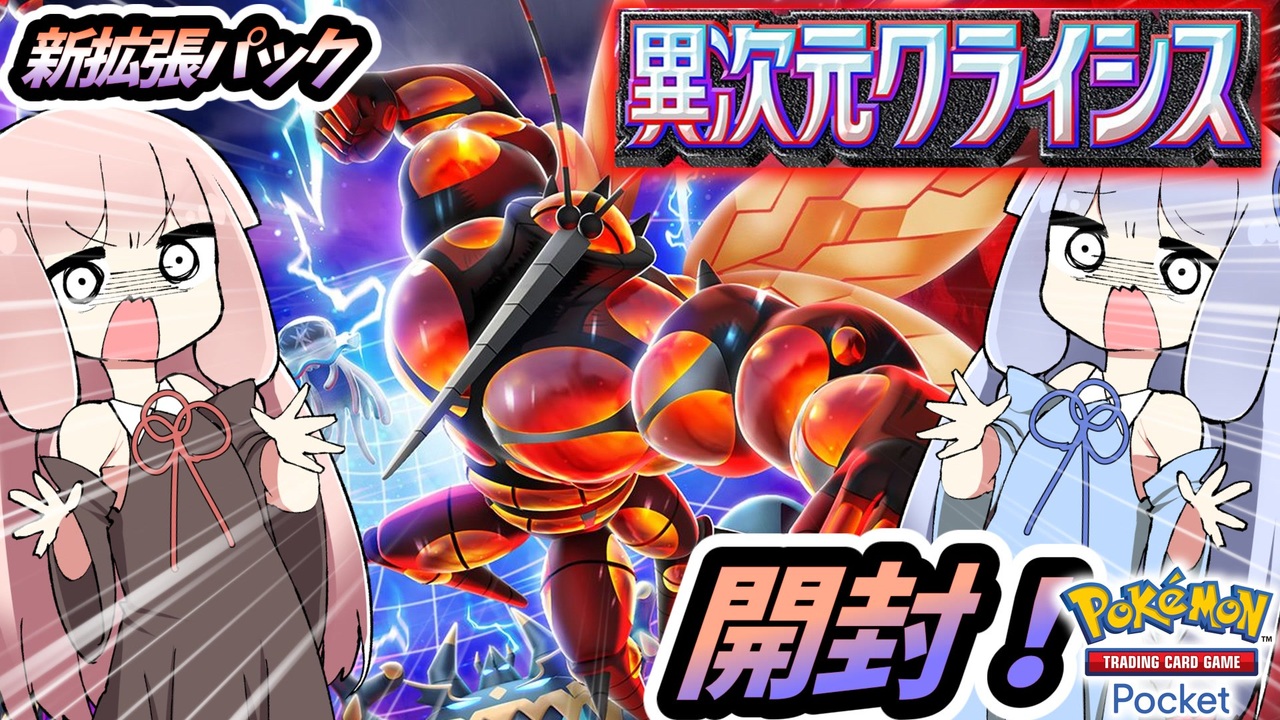 ポケポケ新拡張パック『異次元クライシス』の開封動画<br><br>前回→<a href="https://www.nicovideo.jp/watch/sm45026786" class="watch">sm45026786</a><br>次回→<a href="https://www.nicovideo.jp/watch/sm45094205" class="watch">sm45094205</a><br><br>メインで投稿してるよもぎ餡のミステリーシリーズ→<a href="https://www.nicovideo.jp/watch/sm43330748" class="watch">sm43330748</a><br><br>マイリスト→<a href="https://www.nicovideo.jp/mylist/77293352" target="_blank" rel="noopener">mylist/77293352</a><br>別作品マイリスト→<a href="https://www.nicovideo.jp/mylist/54227270" target="_blank" rel="noopener">mylist/54227270</a><br><br>Youtube→<a href="https://youtu.be/RaineI_yqTA" target="_blank" rel="noopener nofollow">https://youtu.be/RaineI_yqTA</a><br>Twitter→<a href="https://twitter.com/yomogi_an_" target="_blank" rel="noopener nofollow">https://twitter.com/yomogi_an_</a><br><br>●お借りしたもの<br>【BGM】<br>-煉獄庭園- <a href="https://note.com/rengokuteien" target="_blank" rel="noopener nofollow">https://note.com/rengokuteien</a><br><br>【SE】<br>ザ・マッチメイカァズ2nd <a href="http://osabisi.sakura.ne.jp/m2/" target="_blank" rel="noopener nofollow">http://osabisi.sakura.ne.jp/m2/</a><br>効果音ラボ <a href="https://soundeffect-lab.info/" target="_blank" rel="noopener nofollow">https://soundeffect-lab.info/</a><br><br>【フォント】<br>けいふぉんと <a href="http://font.sumomo.ne.jp/font_1.html" target="_blank" rel="noopener nofollow">http://font.sumomo.ne.jp/font_1.html</a><br>怨霊フォントv2.0 <a href="http://www.ankokukoubou.com/" target="_blank" rel="noopener nofollow">http://www.ankokukoubou.com/</a><br><br>【素材】<br>ニコニコモンズ <a href="https://commons.nicovideo.jp/" target="_blank" rel="noopener nofollow">https://commons.nicovideo.jp/</a><br>ニコニコ静画 <a href="https://seiga.nicovideo.jp/" target="_blank" rel="noopener nofollow">https://seiga.nicovideo.jp/</a><br><br>【ツール】<br>ゆっくりムービーメーカー4 <a href="https://manjubox.net/ymm4/" target="_blank" rel="noopener nofollow">https://manjubox.net/ymm4/</a><br>AoiSupport <a href="https://aoi-chan.moe/aoisupport/" target="_blank" rel="noopener nofollow">https://aoi-chan.moe/aoisupport/</a><br>VOICEROID2:琴葉 茜・葵<br><br>●任天堂ガイドライン<br><a href="https://www.nintendo.co.jp/networkservice_guideline/ja/index.html" target="_blank" rel="noopener nofollow">https://www.nintendo.co.jp/networkservice_guideline/ja/index.html</a>