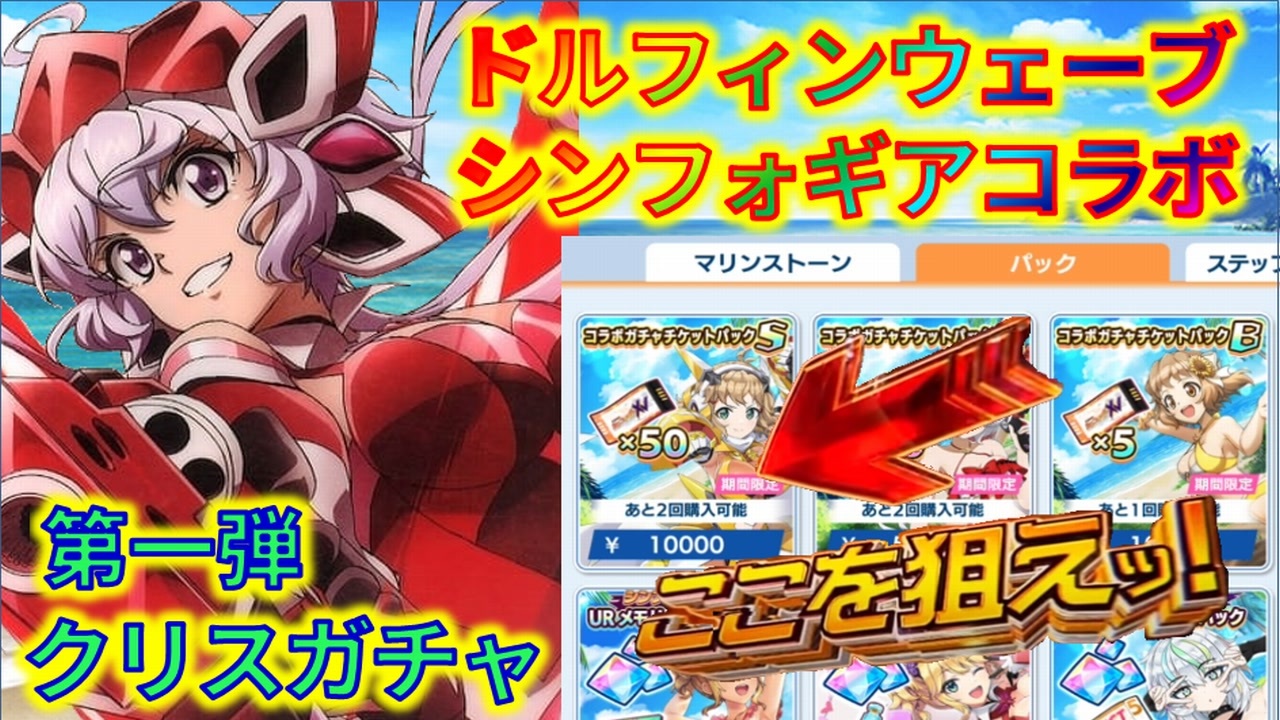 ドルフィンウェーブ シンフォギアコラボ第一弾クリスガチャを引きます。<br>もう天井なんてしない(フラグ)<br>サムネに刃牙要素入れる隙がなかった(*´Д`)<br><br>前回 ToLOVEるコラボ第二弾 <a href="https://www.nicovideo.jp/watch/sm44717926" class="watch">sm44717926</a><br>次回 響ガチャ <a href="https://www.nicovideo.jp/watch/sm45098071" class="watch">sm45098071</a><br><br>FGOガチャ動画マイリスト ⇒ <a href="https://www.nicovideo.jp/mylist/57723852" target="_blank" rel="noopener">mylist/57723852</a><br>ビーナスイレブンびびっど! ⇒ <a href="https://www.nicovideo.jp/mylist/66096625" target="_blank" rel="noopener">mylist/66096625</a><br>閃乱カグラ ⇒ <a href="https://www.nicovideo.jp/mylist/57723845" target="_blank" rel="noopener">mylist/57723845</a><br>幻獣契約クリプトラクト ⇒ <a href="https://www.nicovideo.jp/mylist/66096613" target="_blank" rel="noopener">mylist/66096613</a><br>天下百剣イリヤコラボ ⇒ <a href="https://www.nicovideo.jp/watch/sm35476389" class="watch">sm35476389</a><br>