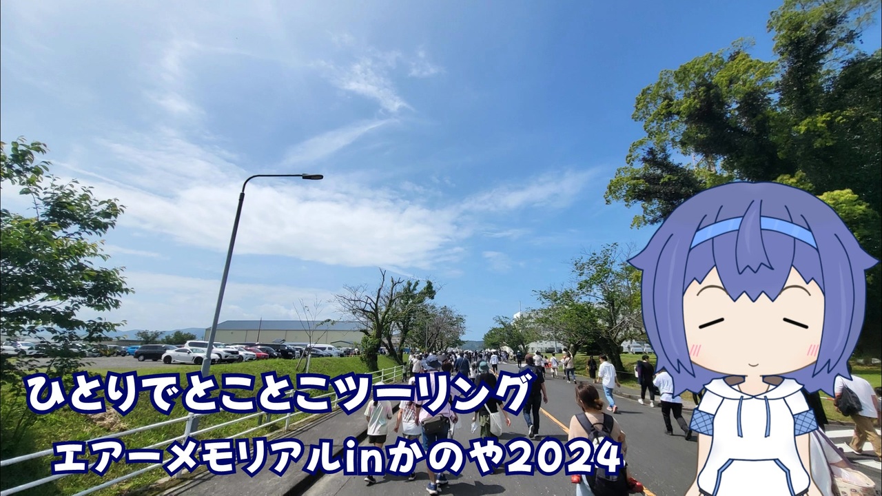 2024年4月、毎年恒例の「エアーメモリアルinかのや」に行ってきました<span style="font-size: 10px;">(投稿まで1年かかってしまった)</span>。<br><br><strong>■エアーメモリアルinかのや</strong><br> <a href="https://info2370982.wixsite.com/mysite-1" target="_blank" rel="noopener nofollow">https://info2370982.wixsite.com/mysite-1</a><br> 鹿屋市にある鹿屋航空基地で行われる航空祭です。<br> 2024年は、ブルーインパルスが来るということで、多くの人でにぎわいました。<br><br> 前編は航空基地までの道のりと一部の地上展示。<br> 中編は飛行展示。<br> 後編はブルーインパルスの飛行展示。<br> と三編でお送りします。<br><br>■BGM 森の踊り <a href="https://commons.nicovideo.jp/works/nc148115" target="_blank" rel="noopener">nc148115</a> <br>■立ち絵 すずきつづみ(自作) <a href="https://seiga.nicovideo.jp/seiga/im11540416" target="_blank" rel="noopener">im11540416</a><br>■音声 CeVIO すずきつづみ<br />■車載動画 <a href="https://www.nicovideo.jp/series/5592" target="_blank" rel="noopener">series/5592</a><br> 番外編 <a href="https://www.nicovideo.jp/series/403721" target="_blank" rel="noopener">series/403721</a><br>■ユーザページ <a href="https://www.nicovideo.jp/user/347413" target="_blank" rel="noopener">user/347413</a>