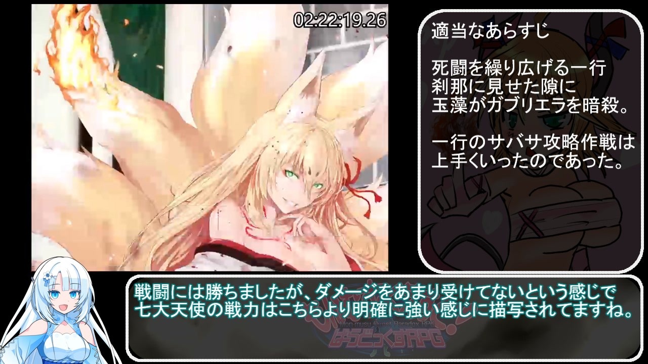 もんむす・くえすと!ぱらどっくすRPG終章 Ver3.04<br>コンバートなし<br><br>レギュ補足<br>難易度変更の禁止<br>ルーラールーラー使用禁止<br>システムデータは空っぽの状態で始める<br><br>前<a href="https://www.nicovideo.jp/watch/sm44988674" class="watch">sm44988674</a><br>次<a href="https://www.nicovideo.jp/watch/sm45125934" class="watch">sm45125934</a><br><br>区間<br>セントラ大陸(天界)西に到着 から ルカ投獄 まで<br><br>サバサ回<br><br><br><span style="color: #ff0000; font-size: 18px;">ご視聴の注意<br>もんぱらの深刻なネタバレがあります<br>ゲームプレイ後の視聴を推奨いたします</span><br><br><span style="color: #262626; font-size: 13px;">計測区間 NEWGAME選択から エンディングのタイトルロゴが表示された 瞬間まで<br><br>もんぱら用まいりすと<a href="https://www.nicovideo.jp/mylist/62081897" target="_blank" rel="noopener">mylist/62081897</a></span><br>BLACKSOULSⅡ<a href="https://www.nicovideo.jp/mylist/63878502" target="_blank" rel="noopener">mylist/63878502</a><br><span style="color: #262626; font-size: 13px;">BLACKSOULS </span><a href="https://www.nicovideo.jp/mylist/59887561" target="_blank" rel="noopener">mylist/59887561</a><br>その他<a href="https://www.nicovideo.jp/mylist/63112367" target="_blank" rel="noopener">mylist/63112367</a><br><br><br>実はもんぱらのdiscordサーバー作ってます。<br>なんか語りたい人がいたらどうぞ。<br><a href="https://discord.gg/MspJUkHYBn" target="_blank" rel="noopener nofollow">https://discord.gg/MspJUkHYBn</a><br><br><br>VOICEVOX:whitecul<br>