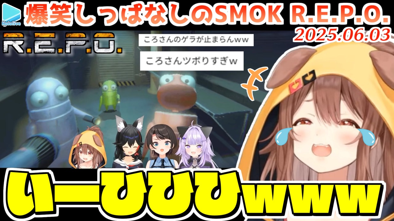 <a href="#" class="seekTime" data-seekTime="00:00" onclick="seekNicoPlayer('#00:00'); return false;">#00:00</a> 開始直後から爆笑ころさん<br><a href="#" class="seekTime" data-seekTime="00:42" onclick="seekNicoPlayer('#00:42'); return false;">#00:42</a> 取り残されるおかゆ<br><a href="#" class="seekTime" data-seekTime="02:16" onclick="seekNicoPlayer('#02:16'); return false;">#02:16</a> ゲロパンデミック<br><a href="#" class="seekTime" data-seekTime="04:39" onclick="seekNicoPlayer('#04:39'); return false;">#04:39</a> 好奇心はイヌを◯す<br><br>元動画様はこちら<br>【#SMOK】今日こそ生きて帰るぞ!!!!R.E.P.Oやるしゅばあああああああああああああああああああああああ!!!!!【ホロライブ/大空スバル】<br><a href="https://youtu.be/DR0oHx7Dd3Q" target="_blank" rel="noopener nofollow">https://youtu.be/DR0oHx7Dd3Q</a><br><br>【 R.E.P.O. 】SMOKでお宝さがし・・ホラー?!【大神ミオ視点】<br><a href="https://youtu.be/-cTd9-Itz98" target="_blank" rel="noopener nofollow">https://youtu.be/-cTd9-Itz98</a><br><br>【 R.E.P.O. 】怖いケド笑える!?みんなで遊ぼ~~~~!🚑🌲🍙🥐【 猫又おかゆ視点/SMOK 】<br><a href="https://youtu.be/yKkJriZ65uA" target="_blank" rel="noopener nofollow">https://youtu.be/yKkJriZ65uA</a><br><br>【 R.E.P.O. 】ココはころね支店だぴょ~~~~ん!o(^^ )o——–⊆^U)┬┬~【 SMOK 】<br><a href="https://youtu.be/ifumxNxLHCM" target="_blank" rel="noopener nofollow">https://youtu.be/ifumxNxLHCM</a><br><br>Subaru Ch. 大空スバル <a href="https://t.co/1XIcn8rNbM" target="_blank" rel="noopener nofollow">https://t.co/1XIcn8rNbM</a><br>Mio Channel 大神ミオ <a href="https://t.co/srC9Gb4Mxi" target="_blank" rel="noopener nofollow">https://t.co/srC9Gb4Mxi</a><br>Okayu Ch. 猫又おかゆ <a href="https://t.co/JoeI3u9YjS" target="_blank" rel="noopener nofollow">https://t.co/JoeI3u9YjS</a><br>Korone Ch. 戌神ころね <a href="https://t.co/qeTXwRU2F1" target="_blank" rel="noopener nofollow">https://t.co/qeTXwRU2F1</a><br /><span style="color: #b7b7b7; font-size: 10px;">ホロライブ切り抜き/なめたけ <a href="https://t.co/CBwJLnYR2c" target="_blank" rel="noopener nofollow">https://t.co/CBwJLnYR2c</a></span>