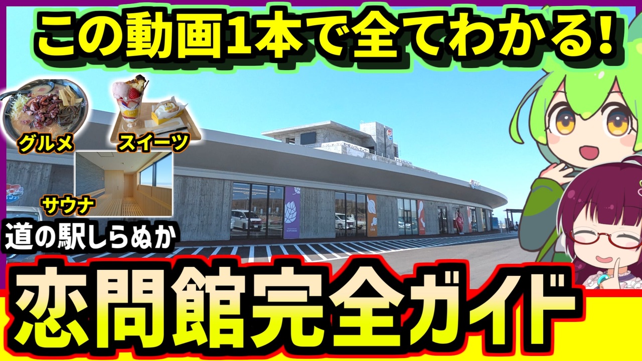 4月29日 白糠の道の駅<br>恋問館がリニューアルオープンし 連日にぎわいを見せています<br><br>これから恋問館に行ってみようという方向けに<br>恋問館の施設やグルメを徹底解説<br><br>これをみれば恋問館が10倍楽しくなります<br><br>恋問館:<a href="https://michinoeki-shiranuka.jp" target="_blank" rel="noopener nofollow">https://michinoeki-shiranuka.jp</a><br><br> ●音声ソフト<br>VOICEVOX:ずんだもん <br>薇タテハ@MYCOEIROINK<br>COEIROINK:リリンちゃん <br>VOICEVOX:雨晴はう <br>VOICEVOX:麒ヶ島宗麟<br><br>オリキャラである「恋結シラリカ」の立ち絵は<br>おき=サン(@ninja_oki)に制作していただきました<br>タツジン!<br><br><br> ●音声ソフト<br>VOICEVOX:ずんだもん 麒ヶ島宗麟<br>薇タテハ@MYCOEIROINK<br><br><br>●X<br>@acerola_vitamin<br><br>●ブルースカイ<br>@pighimarimo.bsky.social<br><br /><span style="color: #ff0000; font-size: 24px;"><strong>釧路を紹介するブログ始めました</strong></span>:<a href="https://946de2100.com" target="_blank" rel="noopener nofollow">https://946de2100.com</a><br><br><span style="color: #ff0000; font-size: 16px;"><strong>●おススメ動画:</strong></span><span style="color: #ff0000; font-size: 18px;"><strong>【歴史解説】かつて 釧路を支配していたのは佐賀だった ~釧路元町の始まりと佐野孫右衛門の盛衰~</strong></span><br><br><a href="https://www.nicovideo.jp/watch/sm44267722" class="watch">sm44267722</a><br><br><br><span style="color: #ff0000; font-size: 18px;"><strong>●YouTubeチャンネルも登録よろしくお願いします</strong></span><br><strong>釧路チャンネル <a href="https://www.youtube.com/@znd-kaisetu" target="_blank" rel="noopener nofollow">https://www.youtube.com/@znd-kaisetu</a></strong><br>恋結シラリカソロチャンネル <a href="https://www.youtube.com/@enmusubi-shirarika" target="_blank" rel="noopener nofollow">https://www.youtube.com/@enmusubi-shirarika</a><br><br><br>ほしいものリスト <a href="https://www.amazon.jp/hz/wishlist/ls/2OUUB1JQSRUWG?ref_=wl_share" target="_blank" rel="noopener nofollow">https://www.amazon.jp/hz/wishlist/ls/2OUUB1JQSRUWG?ref_=wl_share</a><br>クリエイターサポート<a href="https://creator-support.nicovideo.jp/registration/116665199" target="_blank" rel="noopener nofollow">https://creator-support.nicovideo.jp/registration/116665199</a>