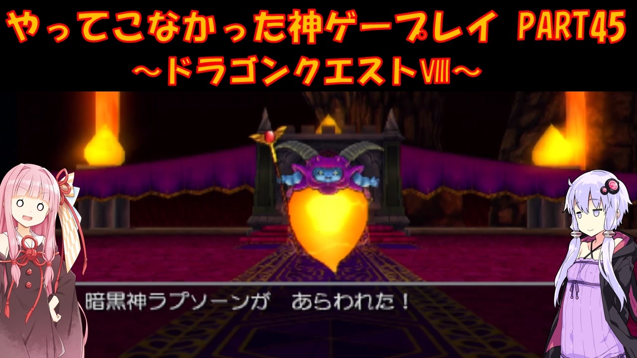 PS2版 ドラゴンクエストⅧをプレイ<br>ゆかりさんはメジャーじゃないゲームをやる俺カッケー族だったのでドラクエをやったことがありませんでした(DSのⅤ以外)<br><br>茜:え?ラプソーンこれ?<br>ゆ:ダークネス干し柿<br><br>PART1:<a href="https://www.nicovideo.jp/watch/sm44676588" target="_blank" rel="noopener nofollow">https://www.nicovideo.jp/watch/sm44676588</a><br><br>各DQシリーズ第1回リンク<br>DQ1:<a href="https://www.nicovideo.jp/watch/sm41819145" target="_blank" rel="noopener nofollow">https://www.nicovideo.jp/watch/sm41819145</a><br>DQ2:<a href="https://www.nicovideo.jp/watch/sm41895278" target="_blank" rel="noopener nofollow">https://www.nicovideo.jp/watch/sm41895278</a><br>DQ3:<a href="https://www.nicovideo.jp/watch/sm42034398" target="_blank" rel="noopener nofollow">https://www.nicovideo.jp/watch/sm42034398</a><br>DQ4:<a href="https://www.nicovideo.jp/watch/sm42520974" target="_blank" rel="noopener nofollow">https://www.nicovideo.jp/watch/sm42520974</a><br>DQ5:<a href="https://www.nicovideo.jp/watch/sm42848575" target="_blank" rel="noopener nofollow">https://www.nicovideo.jp/watch/sm42848575</a><br>DQ6:<a href="https://www.nicovideo.jp/watch/sm43080264" target="_blank" rel="noopener nofollow">https://www.nicovideo.jp/watch/sm43080264</a><br>DQ7:<a href="https://www.nicovideo.jp/watch/sm43851863" target="_blank" rel="noopener nofollow">https://www.nicovideo.jp/watch/sm43851863</a><br>DQM1:<a href="https://www.nicovideo.jp/watch/sm43525709" target="_blank" rel="noopener nofollow">https://www.nicovideo.jp/watch/sm43525709</a><br>DQMCH:<a href="https://www.nicovideo.jp/watch/sm44443421" target="_blank" rel="noopener nofollow">https://www.nicovideo.jp/watch/sm44443421</a><br><br>動画内で使用させていただいた素材<br>【イラスト】<br>結月ゆかり→ペテン師様:<a href="https://seiga.nicovideo.jp/seiga/im5494168" target="_blank" rel="noopener nofollow">https://seiga.nicovideo.jp/seiga/im5494168</a><br>琴葉茜→ユメのオワリ様:<a href="https://seiga.nicovideo.jp/seiga/im10706241" target="_blank" rel="noopener nofollow">https://seiga.nicovideo.jp/seiga/im10706241</a><br><br>【音声】<br>A.I.Voice:琴葉茜<br><a href="https://aivoice.jp/product/kotonoha/" target="_blank" rel="noopener nofollow">https://aivoice.jp/product/kotonoha/</a><br><br>A.I.Voice:結月ゆかり<br><a href="https://aivoice.jp/product/yukari/" target="_blank" rel="noopener nofollow">https://aivoice.jp/product/yukari/</a><br><br>この動画で利用している株式会社スクウェア・エニックスを代表とする共同著作者が権利を所有する著作物及びスギヤマ工房有限会社が権利を所有する楽曲の転載・配布は禁止いたします。<br>© 2004 ARMOR PROJECT/BIRD STUDIO/LEVEL-5/SQUARE ENIX All Rights Reserved.<br>© SUGIYAMA KOBO