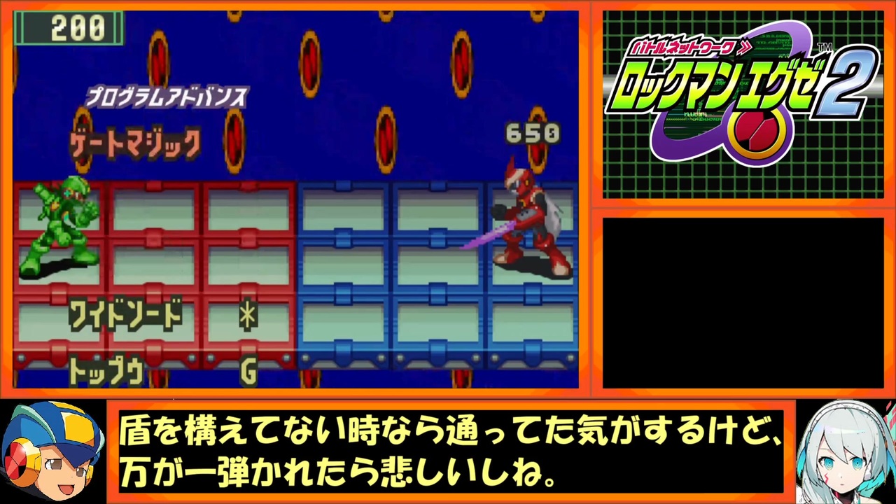 番外編1話「閉ざされたドアの向こう」やってるねぇと思いつつこれがないと無理ですわとも思う。<br>本シリーズはロックマンエグゼ2のネタバレを含みます。嫌な人は買ってから改めて来てください。<br>今回の主な制限も、ストーリーをP・Aだけでクリアするというものです。詳細はマイリストから。<br><br>ロックマンエグゼ2Hシリーズ <a href="https://www.nicovideo.jp/mylist/76533528" target="_blank" rel="noopener">mylist/76533528</a><br>他投稿動画のPart1まとめ <a href="https://www.nicovideo.jp/mylist/54759285" target="_blank" rel="noopener">mylist/54759285</a><br><br>最終話後編 <a href="https://www.nicovideo.jp/watch/sm44941637" class="watch">sm44941637</a><br>番外編2話 <a href="https://www.nicovideo.jp/watch/sm45154307" class="watch">sm45154307</a><br><br>ついったー(編集の進捗とか趣味とか趣味とか趣味とか)<br><a href="https://twitter.com/J_NEX_PA" target="_blank" rel="noopener nofollow">https://twitter.com/J_NEX_PA</a>
