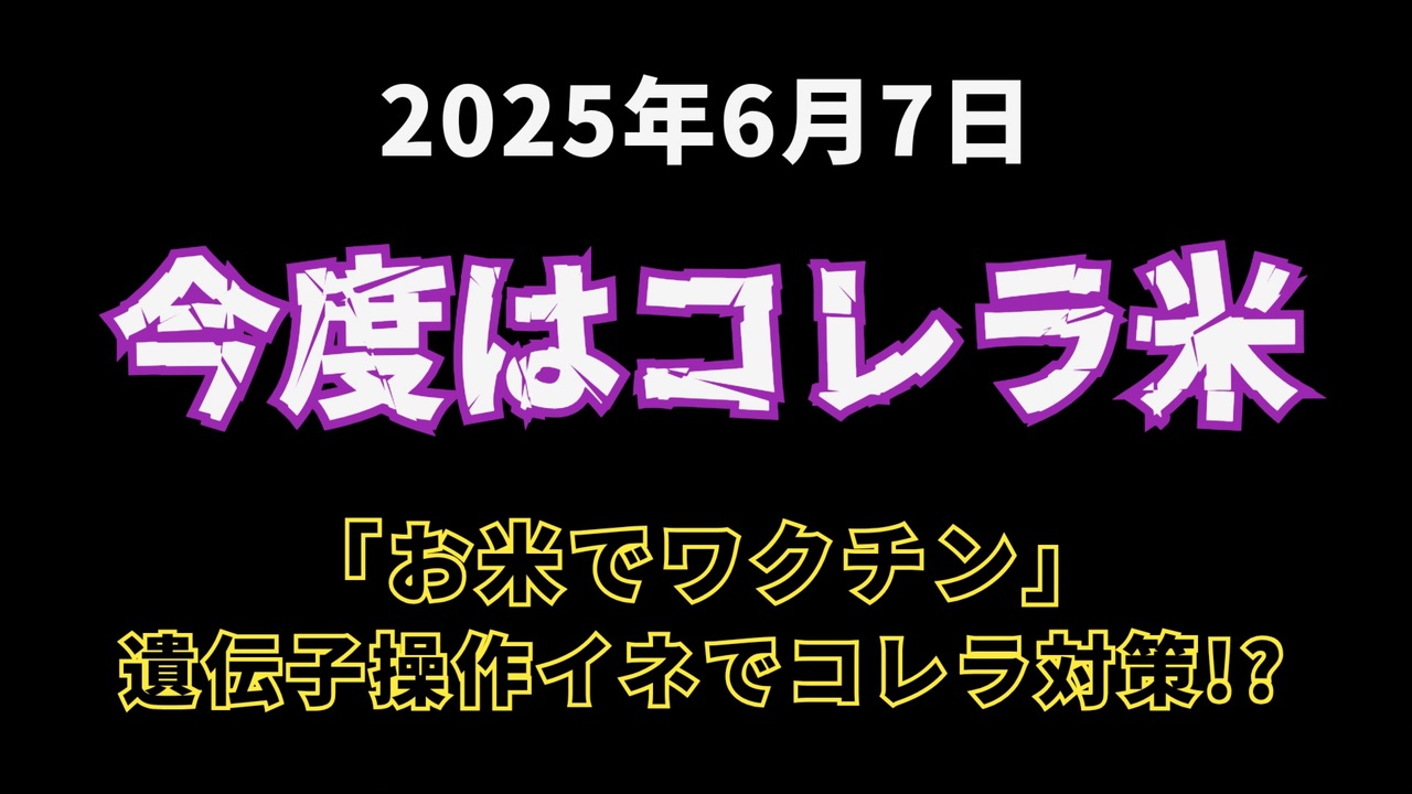 東大が開発した「コレラワクチン入りの米」に不安の声が広がっています。コレラ毒素の一部を遺伝子操作でイネに組み込み、“食べるだけで免疫が得られる”とされるこの米は、「飲むワクチン」として粉末状にしての摂取も想定。冷蔵保存不要で注射も要らないとされていますが、そもそもコレラは日本ではほぼ見られません。さらに、この遺伝子組換え米が給食や援助米として出回る可能性も。安全性はこれからヒトで確認されるとのことで、知らぬ間に“人体実験”の対象にされるリスクが指摘されています。主食という「命の根源」に、医療介入が加えられようとしている今、私たちが問うべきことは──「この未来、本当に必要ですか?」<br><br><a href="https://x.com/funasejuku/status/1930830684979081598?t=1rIZN2ZdbzkMdN3uiyG2QA&s=19" target="_blank" rel="noopener nofollow">https://x.com/funasejuku/status/1930830684979081598?t=1rIZN2ZdbzkMdN3uiyG2QA&s=19</a><br><br><a href="https://x.com/RMRWb3GEPc5qAhh/status/1930859789019746464?t=uqDkJMIY3vpXy3y-b4BRfg&s=19" target="_blank" rel="noopener nofollow">https://x.com/RMRWb3GEPc5qAhh/status/1930859789019746464?t=uqDkJMIY3vpXy3y-b4BRfg&s=19</a><br><br><br>◆ 今回の台本<br><a href="https://keiichiro8140.hatenablog.com/entry/20250607002" target="_blank" rel="noopener nofollow">https://keiichiro8140.hatenablog.com/entry/20250607002</a><br><br><br>◆マイリンク集<br><a href="https://lit.link/keiichiro8140" target="_blank" rel="noopener nofollow">https://lit.link/keiichiro8140</a><br><br><br />著作権、肖像権に配慮して作成しております。<br><br>◆気になったニュースの台本!?<br>メモ代わりに作った台本をそのままあげてます<br><a href="https://keiichiro8140.hatenablog.com/." target="_blank" rel="noopener nofollow">https://keiichiro8140.hatenablog.com/.</a><br><br><br>ここからはシリーズ紹介<br><br><br>◆ ワクチン解毒・デトックス<br><a href="https://x.gd/fZweg" target="_blank" rel="noopener nofollow">https://x.gd/fZweg</a><br><br>◆ウイリアム・マキス博士のがん治療(イベルメクチン・フェンベンダゾール等)<br><a href="https://x.gd/AtFYS" target="_blank" rel="noopener nofollow">https://x.gd/AtFYS</a><br><br>◆予防接種健康被害救済制度<br><a href="https://x.gd/0xK9x" target="_blank" rel="noopener nofollow">https://x.gd/0xK9x</a><br><br>◆気になったニュース #1501~<br><br>◆ 【ショートver】気になったニュース<br><a href="https://x.gd/7MxXC" target="_blank" rel="noopener nofollow">https://x.gd/7MxXC</a><br><br>◆ 気になったニュース #1001~<br><a href="https://x.gd/Lp8gv" target="_blank" rel="noopener nofollow">https://x.gd/Lp8gv</a><br><br>◆ 気になったニュース #501~<br><a href="https://x.gd/EmbS4" target="_blank" rel="noopener nofollow">https://x.gd/EmbS4</a><br><br>◆ 気になったニュース #1~#500<br><a href="https://x.gd/uPhNb" target="_blank" rel="noopener nofollow">https://x.gd/uPhNb</a><br><br>◆ X(旧Twitter)・テレグラムで気になった情報<br><a href="https://x.gd/YG6FT" target="_blank" rel="noopener nofollow">https://x.gd/YG6FT</a><br><br>◆ 日比谷5万人パレードデ⚪生放送アーカイブ動画<br><a href="https://x.gd/3CHJv" target="_blank" rel="noopener nofollow">https://x.gd/3CHJv</a><br><br>◆日比谷5万人パレード⚪モのマイリスト作ってみました<br><a href="https://nico.ms/mylist/76828848?ref=sp_other" target="_blank" rel="noopener nofollow">https://nico.ms/mylist/76828848?ref=sp_other</a><br><br>◆3.30 令和の百姓⚪⚪<br><a href="https://www.nicovideo.jp/series/511791?ref=garage_share_other" target="_blank" rel="noopener nofollow">https://www.nicovideo.jp/series/511791?ref=garage_share_other</a><br><br>◆ 及川幸久さんの【XNEWS】シリーズ<br><a href="https://x.gd/3k78K" target="_blank" rel="noopener nofollow">https://x.gd/3k78K</a><br><br>◆これまでの動画<a href="https://x.gd/sPXoJ" target="_blank" rel="noopener nofollow">https://x.gd/sPXoJ</a><br><br>◆もしも(BAN)の時のためのマイリンク集<a href="https://lit.link/K-16_News44" target="_blank" rel="noopener nofollow">https://lit.link/K-16_News44</a><br><br>