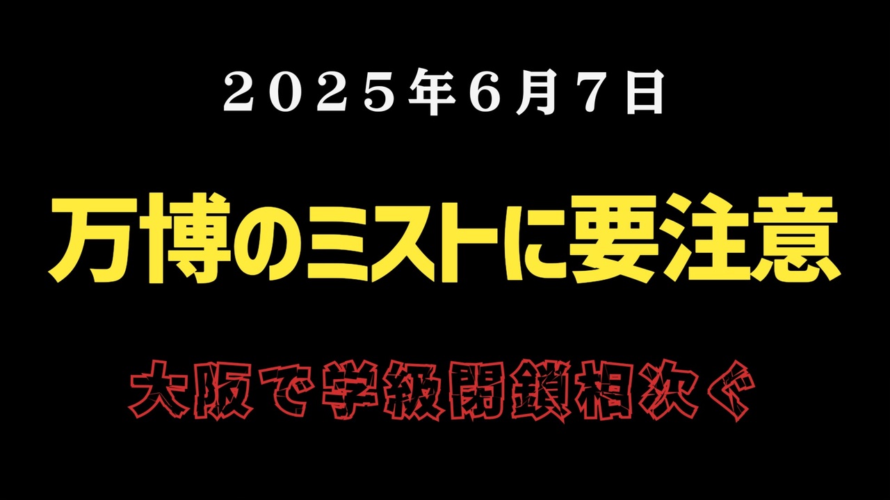 大阪の小中学校で相次ぐ学級閉鎖。その背景には、万博を訪れた子どもたちの体調不良が関係している可能性が──。会場で使用された殺虫剤と猛暑対策ミスト、その組み合わせが原因となり、子どもたちにレジオネラ菌様の症状を引き起こしているとする疑惑が浮上しています。イベントの裏で今、いったい何が起きているのか。子どもたちの未来を守るために、大人たちが目を背けてはいけない「もうひとつの現実」に迫ります。<br><br><br>◆ 今回の台本<br><a href="https://keiichiro8140.hatenablog.com/entry/20250607003" target="_blank" rel="noopener nofollow">https://keiichiro8140.hatenablog.com/entry/20250607003</a><br><br><br>◆マイリンク集<br><a href="https://lit.link/keiichiro8140" target="_blank" rel="noopener nofollow">https://lit.link/keiichiro8140</a><br><br><br />著作権、肖像権に配慮して作成しております。<br><br>◆気になったニュースの台本!?<br>メモ代わりに作った台本をそのままあげてます<br><a href="https://keiichiro8140.hatenablog.com/." target="_blank" rel="noopener nofollow">https://keiichiro8140.hatenablog.com/.</a><br><br><br>ここからはシリーズ紹介<br><br><br>◆ ワクチン解毒・デトックス<br><a href="https://x.gd/fZweg" target="_blank" rel="noopener nofollow">https://x.gd/fZweg</a><br><br>◆ウイリアム・マキス博士のがん治療(イベルメクチン・フェンベンダゾール等)<br><a href="https://x.gd/AtFYS" target="_blank" rel="noopener nofollow">https://x.gd/AtFYS</a><br><br>◆予防接種健康被害救済制度<br><a href="https://x.gd/0xK9x" target="_blank" rel="noopener nofollow">https://x.gd/0xK9x</a><br><br>◆気になったニュース #1501~<br><br>◆ 【ショートver】気になったニュース<br><a href="https://x.gd/7MxXC" target="_blank" rel="noopener nofollow">https://x.gd/7MxXC</a><br><br>◆ 気になったニュース #1001~<br><a href="https://x.gd/Lp8gv" target="_blank" rel="noopener nofollow">https://x.gd/Lp8gv</a><br><br>◆ 気になったニュース #501~<br><a href="https://x.gd/EmbS4" target="_blank" rel="noopener nofollow">https://x.gd/EmbS4</a><br><br>◆ 気になったニュース #1~#500<br><a href="https://x.gd/uPhNb" target="_blank" rel="noopener nofollow">https://x.gd/uPhNb</a><br><br>◆ X(旧Twitter)・テレグラムで気になった情報<br><a href="https://x.gd/YG6FT" target="_blank" rel="noopener nofollow">https://x.gd/YG6FT</a><br><br>◆ 日比谷5万人パレードデ⚪生放送アーカイブ動画<br><a href="https://x.gd/3CHJv" target="_blank" rel="noopener nofollow">https://x.gd/3CHJv</a><br><br>◆日比谷5万人パレード⚪モのマイリスト作ってみました<br><a href="https://nico.ms/mylist/76828848?ref=sp_other" target="_blank" rel="noopener nofollow">https://nico.ms/mylist/76828848?ref=sp_other</a><br><br>◆3.30 令和の百姓⚪⚪<br><a href="https://www.nicovideo.jp/series/511791?ref=garage_share_other" target="_blank" rel="noopener nofollow">https://www.nicovideo.jp/series/511791?ref=garage_share_other</a><br><br>◆ 及川幸久さんの【XNEWS】シリーズ<br><a href="https://x.gd/3k78K" target="_blank" rel="noopener nofollow">https://x.gd/3k78K</a><br><br>◆これまでの動画<a href="https://x.gd/sPXoJ" target="_blank" rel="noopener nofollow">https://x.gd/sPXoJ</a><br><br>◆もしも(BAN)の時のためのマイリンク集<a href="https://lit.link/K-16_News44" target="_blank" rel="noopener nofollow">https://lit.link/K-16_News44</a><br><br>