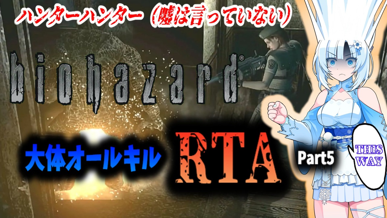 HDリマスター版バイオハザード(Switch版)を以下の条件でRTAしました。<br><br>・敵を大体全部札害する(無限湧きの敵は無視する)<br>・クリムゾンヘッドは焼却か部位破壊で出現させないことを許可する(出現したら倒す)<br>・イベントで勝手に倒されることは許可する<br>・画面切り替えやストーリー経過で消してしまうのはNG(見逃しがあったら大体ってことで許して)<br>・状況再現(しょぼい)の利用を許可<br>・ベストエンド到達と無限ロケラン取得を目指す<br>・計測区間は主人公選択時からリザルト画面表示まで<br>・苦行はしない<br><br>参考:<br>バイオハザード 解体真書 ISBN:4-7577-0980-3(P59、P96)<br>XGameMania:<a href="https://xgamemania.com/bio/1_remaster/index.html" target="_blank" rel="noopener nofollow">https://xgamemania.com/bio/1_remaster/index.html</a><br>PC版 バイオハザードHDリマスター RTA 1時間37分44秒 part6:<a href="https://www.nicovideo.jp/watch/sm25984264" class="watch">sm25984264</a><br><br>VOICEVOX:WhiteCUL<br><br>Part4→<a href="https://www.nicovideo.jp/watch/sm45023284" class="watch">sm45023284</a> Part6→<a href="https://www.nicovideo.jp/watch/sm45096033" class="watch">sm45096033</a><br><br>©CAPCOM CO., LTD. ALL RIGHTS RESERVED