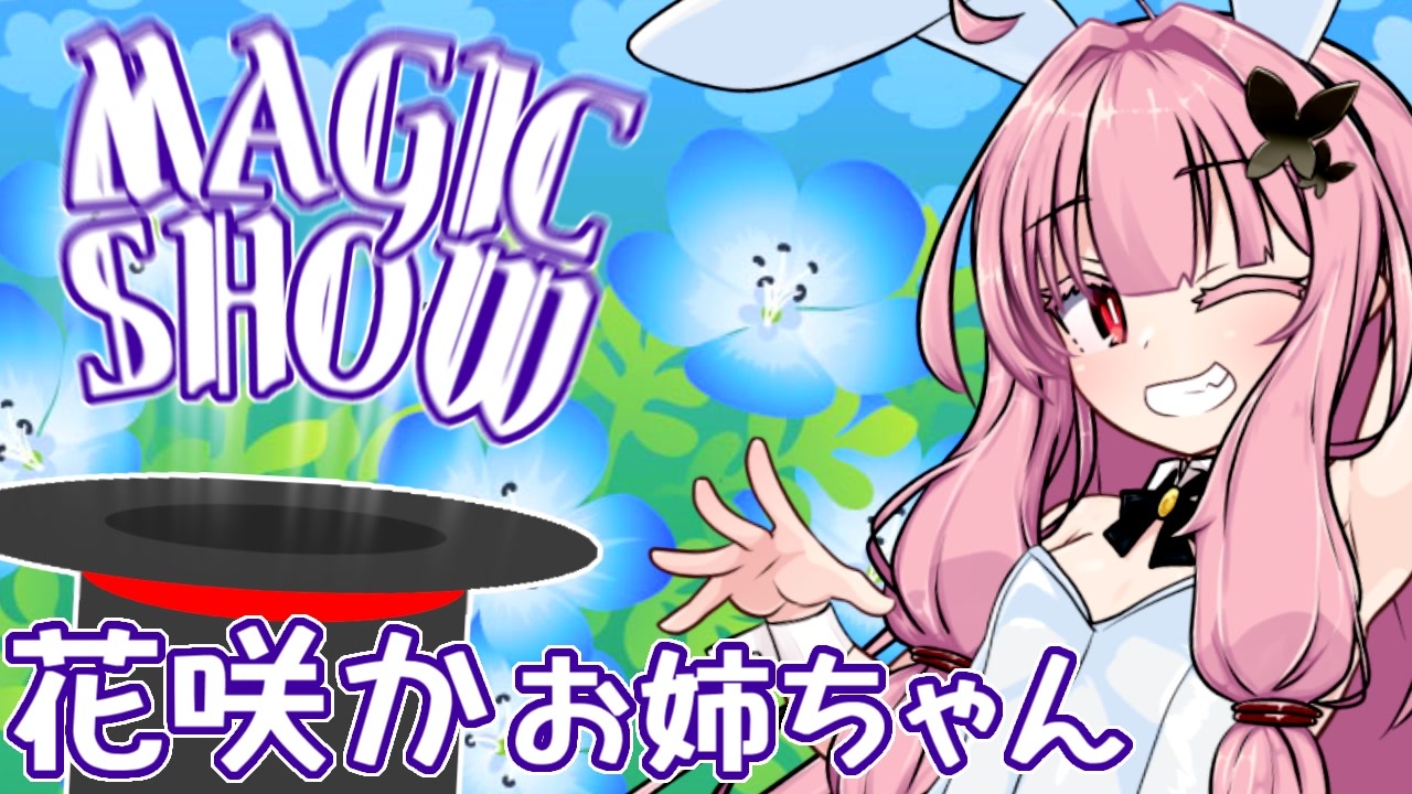 簡易解説付きマジックショーシリーズの8回目です<br><br>今日は<span style="color: #4a86e8;"><strong>お花</strong></span>を咲かせるマジックをする茜ちゃん。<br>僅か1分強しかない再生時間なのに2つのマジックを披露して、さらにちょっと詳しい解説までしてくれるようです<br>さあキミも早速試してみよう!<br><br>別件ですが、今年の春に開催されたVIVID VOICE FESTIVALという投稿祭イベントで拙作が賞を受賞しました!<br>もしよければこちらも是非ご視聴ください!<br>当該記事:<a href="https://blog.nicovideo.jp/niconews/243885.html" target="_blank" rel="noopener nofollow">https://blog.nicovideo.jp/niconews/243885.html</a><br>受賞動画:<a href="https://www.nicovideo.jp/watch/sm44833983" target="_blank" rel="noopener nofollow">https://www.nicovideo.jp/watch/sm44833983</a><br><span style="color: #d9d9d9; font-size: 10px;">マジックショーシリーズの1回目もVIVID VOICE FESTIVAL参加動画なのでギリ関連性があるためここで宣伝しても許される。許されてほしい。</span><br><br>いろんなマイリスト<br>そっちなのシリーズ:<a href="https://www.nicovideo.jp/mylist/78978635" target="_blank" rel="noopener">mylist/78978635</a><br>マジックショーシリーズ:<a href="https://www.nicovideo.jp/mylist/78017990" target="_blank" rel="noopener">mylist/78017990</a><br><br>コメント返信回:<a href="https://www.nicovideo.jp/watch/sm45262973" class="watch">sm45262973</a><br><br>【使用音声読み上げソフト】<br>VOICEROID2:琴葉姉妹<br>VOICEPEAK:東北きりたん<br>【立ち絵】<br>琴葉茜、手:ぴぴ様 <a href="https://seiga.nicovideo.jp/seiga/im11484646" target="_blank" rel="noopener">im11484646</a> (※手の一部は千冬ちゃん立ち絵を使用 <a href="https://seiga.nicovideo.jp/seiga/im11546150" target="_blank" rel="noopener">im11546150</a>)<br>琴葉葵、各種漫符:Noname様 <a href="https://seiga.nicovideo.jp/seiga/im8015257" target="_blank" rel="noopener">im8015257</a><br>東北きりたん:りょうご様 <a href="https://seiga.nicovideo.jp/seiga/im11119649" target="_blank" rel="noopener">im11119649</a><br>【素材】<br>花:リカルド様、sakazaki様 <a href="https://commons.nicovideo.jp/works/nc387486" target="_blank" rel="noopener">nc387486</a> <a href="https://www.ac-illust.com/main/detail.php?id=1102462" target="_blank" rel="noopener nofollow">https://www.ac-illust.com/main/detail.php?id=1102462</a><br>植木鉢:YUKO340様 <a href="https://www.ac-illust.com/main/detail.php?id=26378308" target="_blank" rel="noopener nofollow">https://www.ac-illust.com/main/detail.php?id=26378308</a><br>【BGM】<br>ワツィ@フリーBGM「ガレトコ」様 <a href="https://commons.nicovideo.jp/works/nc285919" target="_blank" rel="noopener">nc285919</a><br>【効果音】<br>全て効果音ラボ様 <a href="https://soundeffect-lab.info/" target="_blank" rel="noopener nofollow">https://soundeffect-lab.info/</a><br>【劇中で使ったスクリプト】<br>ロール-カメラ:さつき様 <a href="https://bowlroll.net/file/3777" target="_blank" rel="noopener nofollow">https://bowlroll.net/file/3777</a><br>(ユーザーページ:<a href="https://www.nicovideo.jp/user/2787743" target="_blank" rel="noopener nofollow">https://www.nicovideo.jp/user/2787743</a> )<br><br>上記以外の素材は親作品リスト参照<br><br><a target="_blank" href="https://qa.nicovideo.jp/faq/show/19424?site_domain=default" style="font-size: 13px;color: #657586; text-decoration: underline; line-height: 1.4">この動画は投稿者によって修正されました</a>