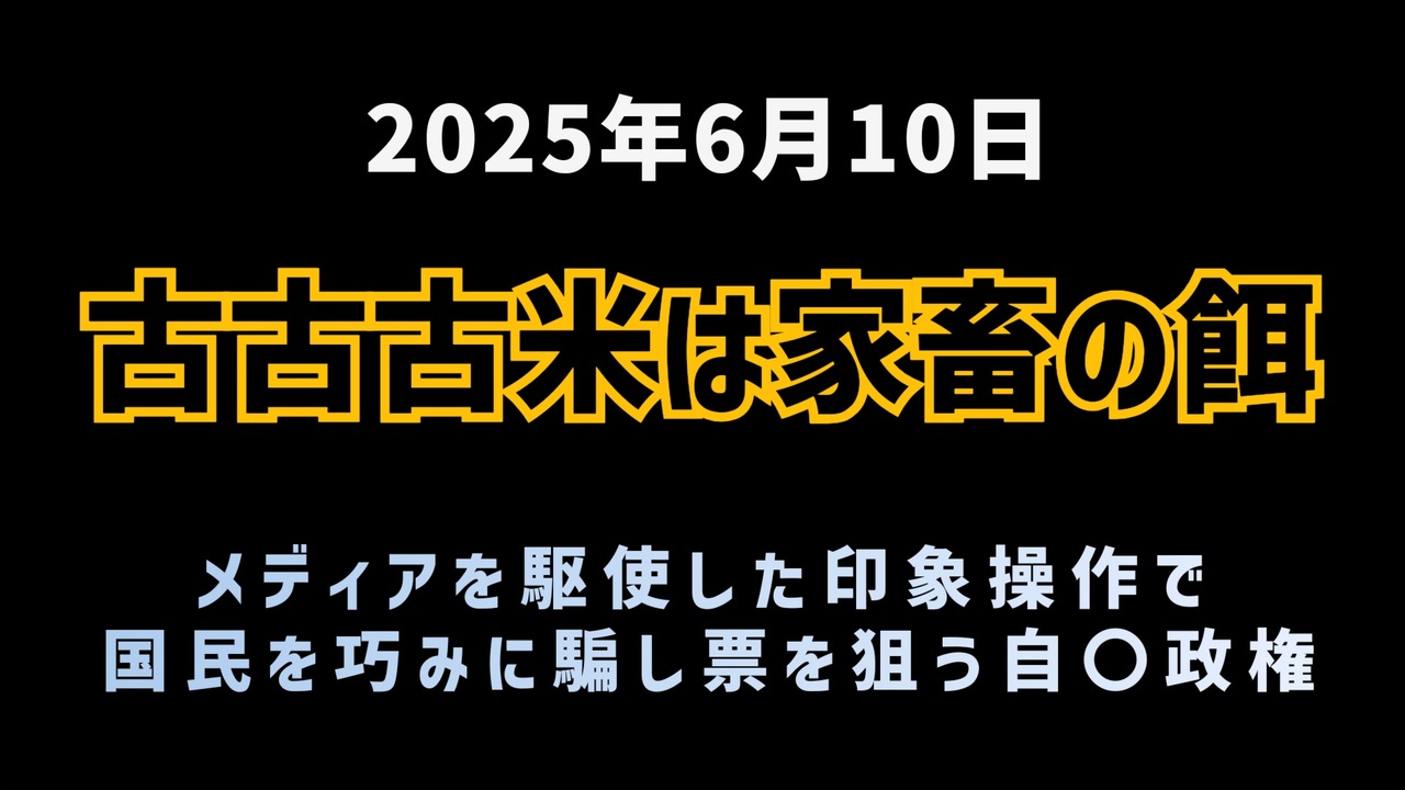 安価で飼料にされていた“古古古米”が、「備蓄米」と名前を変えて国民向けに2000円で販売される。実業家・井川意高氏は「これは国民を家畜扱いしている」と警鐘を鳴らす。なぜ3年前の米が高値で流通し始めたのか? そして、それを疑問視した政治家や著名人の発言はなぜ封殺されるのか? 表現の自由が奪われる社会の中で、いま見えてきた“本当の問題”に迫る。<br><br><br>◆ 今回の台本<br><a href="https://keiichiro8140.hatenablog.com/entry/20250610881" target="_blank" rel="noopener nofollow">https://keiichiro8140.hatenablog.com/entry/20250610881</a><br><br><br>◆YouTubeでも投稿中!チャンネル登録よろしくお願いします<br><a href="https://x.gd/uxU5M" target="_blank" rel="noopener nofollow">https://x.gd/uxU5M</a><br><br><br>◆マイリンク集<br><a href="https://lit.link/keiichiro8140" target="_blank" rel="noopener nofollow">https://lit.link/keiichiro8140</a><br><br><br />著作権、肖像権に配慮して作成しております。<br><br>◆気になったニュースの台本!?<br>メモ代わりに作った台本をそのままあげてます<br><a href="https://keiichiro8140.hatenablog.com/." target="_blank" rel="noopener nofollow">https://keiichiro8140.hatenablog.com/.</a><br><br><br>ここからはシリーズ紹介<br><br><br>◆ ワクチン解毒・デトックス<br><a href="https://x.gd/fZweg" target="_blank" rel="noopener nofollow">https://x.gd/fZweg</a><br><br>◆ウイリアム・マキス博士のがん治療(イベルメクチン・フェンベンダゾール等)<br><a href="https://x.gd/AtFYS" target="_blank" rel="noopener nofollow">https://x.gd/AtFYS</a><br><br>◆予防接種健康被害救済制度<br><a href="https://x.gd/0xK9x" target="_blank" rel="noopener nofollow">https://x.gd/0xK9x</a><br><br>◆気になったニュース #1501~<br><br>◆ 【ショートver】気になったニュース<br><a href="https://x.gd/7MxXC" target="_blank" rel="noopener nofollow">https://x.gd/7MxXC</a><br><br>◆ 気になったニュース #1001~<br><a href="https://x.gd/Lp8gv" target="_blank" rel="noopener nofollow">https://x.gd/Lp8gv</a><br><br>◆ 気になったニュース #501~<br><a href="https://x.gd/EmbS4" target="_blank" rel="noopener nofollow">https://x.gd/EmbS4</a><br><br>◆ 気になったニュース #1~#500<br><a href="https://x.gd/uPhNb" target="_blank" rel="noopener nofollow">https://x.gd/uPhNb</a><br><br>◆ X(旧Twitter)・テレグラムで気になった情報<br><a href="https://x.gd/YG6FT" target="_blank" rel="noopener nofollow">https://x.gd/YG6FT</a><br><br>◆ 日比谷5万人パレードデ⚪生放送アーカイブ動画<br><a href="https://x.gd/3CHJv" target="_blank" rel="noopener nofollow">https://x.gd/3CHJv</a><br><br>◆日比谷5万人パレード⚪モのマイリスト作ってみました<br><a href="https://nico.ms/mylist/76828848?ref=sp_other" target="_blank" rel="noopener nofollow">https://nico.ms/mylist/76828848?ref=sp_other</a><br><br>◆3.30 令和の百姓⚪⚪<br><a href="https://www.nicovideo.jp/series/511791?ref=garage_share_other" target="_blank" rel="noopener nofollow">https://www.nicovideo.jp/series/511791?ref=garage_share_other</a><br><br>◆ 及川幸久さんの【XNEWS】シリーズ<br><a href="https://x.gd/3k78K" target="_blank" rel="noopener nofollow">https://x.gd/3k78K</a><br><br>◆これまでの動画<a href="https://x.gd/sPXoJ" target="_blank" rel="noopener nofollow">https://x.gd/sPXoJ</a><br><br>◆もしも(BAN)の時のためのマイリンク集<a href="https://lit.link/K-16_News44" target="_blank" rel="noopener nofollow">https://lit.link/K-16_News44</a><br><br>