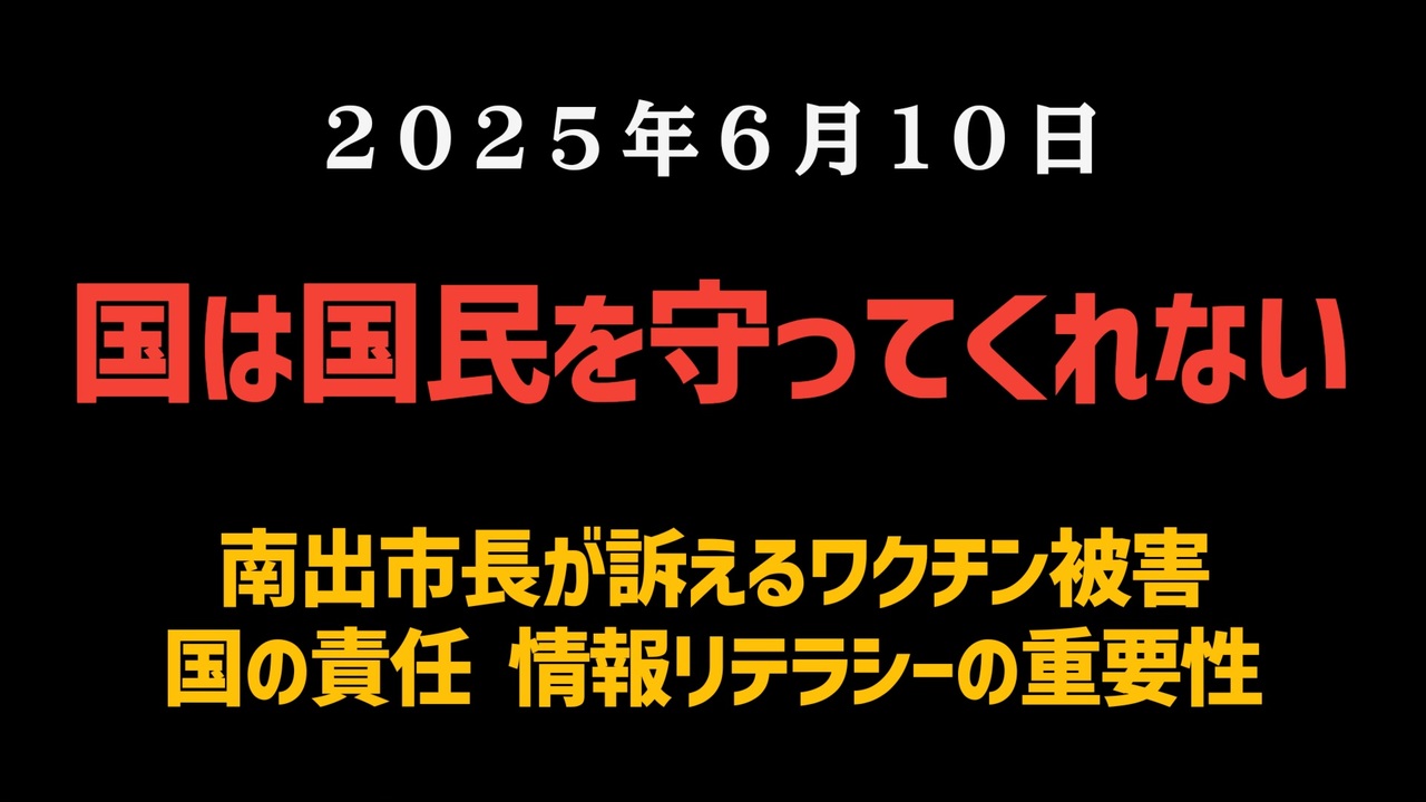 「接種翌日に27歳の市職員が死亡」――この一言が、全国市長会での空気を凍らせた。発言者は、現職の関東地方の市長。ワクチン被害の現実を身をもって知ったその市長の声を、泉大津市・南出賢一市長が紹介したことで明るみに出た。国は死亡一時金を支払ったが、真相は語らない。しかも、認定された死亡だけで1000件超。10代以下でも28件の健康被害が認定。予算は100倍に膨張しながらも、制度は機能不全のまま。なぜメディアは黙り続けるのか?<br>最年少は1歳。本人の意思も聞けず、親が迫られた“選択”。そして誰も責任をとらない――。これは薬害を超えた「国策災害」なのかもしれない。南出市長の警告に、私たちは耳を塞いではならない。<br><br><a href="https://x.com/minakenbo/status/1932004448219623534?t=AaR8T-rYo1_mYINOXpnFeg&s=19" target="_blank" rel="noopener nofollow">https://x.com/minakenbo/status/1932004448219623534?t=AaR8T-rYo1_mYINOXpnFeg&s=19</a><br><br><br>◆ 今回の台本<br><a href="https://keiichiro8140.hatenablog.com/entry/20250610333" target="_blank" rel="noopener nofollow">https://keiichiro8140.hatenablog.com/entry/20250610333</a><br><br><br>◆YouTubeでも投稿中!チャンネル登録よろしくお願いします<br><a href="https://x.gd/uxU5M" target="_blank" rel="noopener nofollow">https://x.gd/uxU5M</a><br><br><br>◆マイリンク集<br><a href="https://lit.link/keiichiro8140" target="_blank" rel="noopener nofollow">https://lit.link/keiichiro8140</a><br><br><br />著作権、肖像権に配慮して作成しております。<br><br>◆気になったニュースの台本!?<br>メモ代わりに作った台本をそのままあげてます<br><a href="https://keiichiro8140.hatenablog.com/." target="_blank" rel="noopener nofollow">https://keiichiro8140.hatenablog.com/.</a><br><br><br>ここからはシリーズ紹介<br><br><br>◆ ワクチン解毒・デトックス<br><a href="https://x.gd/fZweg" target="_blank" rel="noopener nofollow">https://x.gd/fZweg</a><br><br>◆ウイリアム・マキス博士のがん治療(イベルメクチン・フェンベンダゾール等)<br><a href="https://x.gd/AtFYS" target="_blank" rel="noopener nofollow">https://x.gd/AtFYS</a><br><br>◆予防接種健康被害救済制度<br><a href="https://x.gd/0xK9x" target="_blank" rel="noopener nofollow">https://x.gd/0xK9x</a><br><br>◆気になったニュース #1501~<br><br>◆ 【ショートver】気になったニュース<br><a href="https://x.gd/7MxXC" target="_blank" rel="noopener nofollow">https://x.gd/7MxXC</a><br><br>◆ 気になったニュース #1001~<br><a href="https://x.gd/Lp8gv" target="_blank" rel="noopener nofollow">https://x.gd/Lp8gv</a><br><br>◆ 気になったニュース #501~<br><a href="https://x.gd/EmbS4" target="_blank" rel="noopener nofollow">https://x.gd/EmbS4</a><br><br>◆ 気になったニュース #1~#500<br><a href="https://x.gd/uPhNb" target="_blank" rel="noopener nofollow">https://x.gd/uPhNb</a><br><br>◆ X(旧Twitter)・テレグラムで気になった情報<br><a href="https://x.gd/YG6FT" target="_blank" rel="noopener nofollow">https://x.gd/YG6FT</a><br><br>◆ 日比谷5万人パレードデ⚪生放送アーカイブ動画<br><a href="https://x.gd/3CHJv" target="_blank" rel="noopener nofollow">https://x.gd/3CHJv</a><br><br>◆日比谷5万人パレード⚪モのマイリスト作ってみました<br><a href="https://nico.ms/mylist/76828848?ref=sp_other" target="_blank" rel="noopener nofollow">https://nico.ms/mylist/76828848?ref=sp_other</a><br><br>◆3.30 令和の百姓⚪⚪<br><a href="https://www.nicovideo.jp/series/511791?ref=garage_share_other" target="_blank" rel="noopener nofollow">https://www.nicovideo.jp/series/511791?ref=garage_share_other</a><br><br>◆ 及川幸久さんの【XNEWS】シリーズ<br><a href="https://x.gd/3k78K" target="_blank" rel="noopener nofollow">https://x.gd/3k78K</a><br><br>◆これまでの動画<a href="https://x.gd/sPXoJ" target="_blank" rel="noopener nofollow">https://x.gd/sPXoJ</a><br><br>◆もしも(BAN)の時のためのマイリンク集<a href="https://lit.link/K-16_News44" target="_blank" rel="noopener nofollow">https://lit.link/K-16_News44</a><br><br>