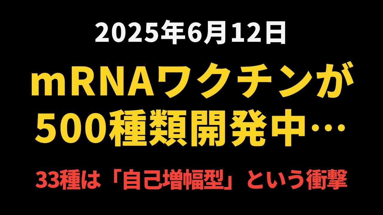 mRNAワクチンの“次の世代”が、今まさに静かに進行中です。自己増幅型、つまり体内で無限に複製されるよう設計された33種類のワクチンが、既に開発段階にあり、日本やEUでの承認例もあるといいます。しかも、それらは「シェディング」のリスクが高いにも関わらず、十分な研究がされないまま前に進んでいる――。選択すらできない新たなリスクが、人知れず迫っているのかもしれません。この動画では、その恐るべき可能性と警告の声に迫ります。<br><br><a href="https://x.com/MikiG1672499/status/1932710543632269755?t=rfDYOBdq4PcANxL1SJN7gA&s=09" target="_blank" rel="noopener nofollow">https://x.com/MikiG1672499/status/1932710543632269755?t=rfDYOBdq4PcANxL1SJN7gA&s=09</a><br><br><br>◆ 今回の台本<br><a href="https://keiichiro8140.hatenablog.com/entry/20250612222" target="_blank" rel="noopener nofollow">https://keiichiro8140.hatenablog.com/entry/20250612222</a><br><br><br>◆もしもの時のためのマイリンク集<br><a href="https://lit.link/keiichiro8140" target="_blank" rel="noopener nofollow">https://lit.link/keiichiro8140</a><br><br><br />著作権、肖像権に配慮して作成しております。<br><br>◆気になったニュースの台本!?<br>メモ代わりに作った台本をそのままあげてます<br><a href="https://keiichiro8140.hatenablog.com/." target="_blank" rel="noopener nofollow">https://keiichiro8140.hatenablog.com/.</a><br><br><br>ここからはシリーズ紹介<br><br><br>◆ ワクチン解毒・デトックス<br><a href="https://x.gd/fZweg" target="_blank" rel="noopener nofollow">https://x.gd/fZweg</a><br><br>◆ウイリアム・マキス博士のがん治療(イベルメクチン・フェンベンダゾール等)<br><a href="https://x.gd/AtFYS" target="_blank" rel="noopener nofollow">https://x.gd/AtFYS</a><br><br>◆予防接種健康被害救済制度<br><a href="https://x.gd/0xK9x" target="_blank" rel="noopener nofollow">https://x.gd/0xK9x</a><br><br>◆気になったニュース #1501~<br><br>◆ 【ショートver】気になったニュース<br><a href="https://x.gd/7MxXC" target="_blank" rel="noopener nofollow">https://x.gd/7MxXC</a><br><br>◆ 気になったニュース #1001~<br><a href="https://x.gd/Lp8gv" target="_blank" rel="noopener nofollow">https://x.gd/Lp8gv</a><br><br>◆ 気になったニュース #501~<br><a href="https://x.gd/EmbS4" target="_blank" rel="noopener nofollow">https://x.gd/EmbS4</a><br><br>◆ 気になったニュース #1~#500<br><a href="https://x.gd/uPhNb" target="_blank" rel="noopener nofollow">https://x.gd/uPhNb</a><br><br>◆ X(旧Twitter)・テレグラムで気になった情報<br><a href="https://x.gd/YG6FT" target="_blank" rel="noopener nofollow">https://x.gd/YG6FT</a><br><br>◆ 日比谷5万人パレードデ⚪生放送アーカイブ動画<br><a href="https://x.gd/3CHJv" target="_blank" rel="noopener nofollow">https://x.gd/3CHJv</a><br><br>◆日比谷5万人パレード⚪モのマイリスト作ってみました<br><a href="https://nico.ms/mylist/76828848?ref=sp_other" target="_blank" rel="noopener nofollow">https://nico.ms/mylist/76828848?ref=sp_other</a><br><br>◆3.30 令和の百姓⚪⚪<br><a href="https://www.nicovideo.jp/series/511791?ref=garage_share_other" target="_blank" rel="noopener nofollow">https://www.nicovideo.jp/series/511791?ref=garage_share_other</a><br><br>◆ 及川幸久さんの【XNEWS】シリーズ<br><a href="https://x.gd/3k78K" target="_blank" rel="noopener nofollow">https://x.gd/3k78K</a><br><br>◆これまでの動画<a href="https://x.gd/sPXoJ" target="_blank" rel="noopener nofollow">https://x.gd/sPXoJ</a><br><br>◆もしも(BAN)の時のためのマイリンク集<a href="https://lit.link/K-16_News44" target="_blank" rel="noopener nofollow">https://lit.link/K-16_News44</a><br><br>
