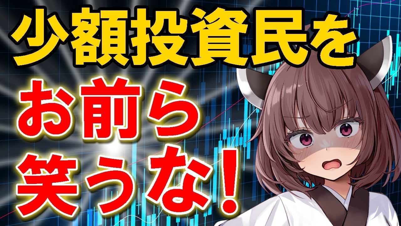 SNSを開くたびに目に飛び込んでくる「爆益」「満額NISA」「早期リタイア」。<br>そのたびに、自分の5,000円の積立がしょぼく思えて、<br>「こんなの意味あるのかな…」と心が折れそうになっていませんか?<br><br>この動画では行動経済学・心理学の視点から「少額投資が意味ないと感じる心理」と戦います。<br><br>出てくるスタンド(敵):<br>・リッチ・ポスト(社会的比較バイアス)<br>・イマガイチバン(現在バイアス)<br>・ツジツマアワセ(認知的不協和)<br><br>そしてラストでは、きりたんが少額投資でも意味がある理由を<br>「行動・制度・思考」の3つの軸から丁寧に解説。<br><br>【関連資料】<br>・【オカネコ調査】 新NISA開始から1年。認知率9割超、利用率は1年間で約2割アップの約6割に!利用者9割が「満足している」と回答<br><a href="https://prtimes.jp/main/html/rd/p/000000202.000038217.html" target="_blank" rel="noopener nofollow">https://prtimes.jp/main/html/rd/p/000000202.000038217.html</a><br><br><br>【お借りしています】<br><br>blueberry様<br>紲星あかりの立ち絵素材<br><a href="https://seiga.nicovideo.jp/seiga/im7720502" target="_blank" rel="noopener nofollow">https://seiga.nicovideo.jp/seiga/im7720502</a><br>東北ずん子の立ち絵素材<br><a href="https://seiga.nicovideo.jp/seiga/im5774001" target="_blank" rel="noopener nofollow">https://seiga.nicovideo.jp/seiga/im5774001</a><br><br>かれい様<br>東北きりたんの立ち絵素材<br><a href="https://seiga.nicovideo.jp/seiga/im7760810" target="_blank" rel="noopener nofollow">https://seiga.nicovideo.jp/seiga/im7760810</a><br><br>えびふりゃ様<br>東北きりたんの立ち絵素材<br><a href="https://seiga.nicovideo.jp/seiga/im11043018" target="_blank" rel="noopener nofollow">https://seiga.nicovideo.jp/seiga/im11043018</a><br><br>しりんだーふれいる様<br>東北ずん子の立ち絵素材<br><a href="https://seiga.nicovideo.jp/seiga/im11084055" target="_blank" rel="noopener nofollow">https://seiga.nicovideo.jp/seiga/im11084055</a><br>紲星あかりの立ち絵素材<br><a href="https://seiga.nicovideo.jp/seiga/im10810356" target="_blank" rel="noopener nofollow">https://seiga.nicovideo.jp/seiga/im10810356</a><br><br>デムサト様<br>アイコンアニメーション動画素材フルセット版<br><a href="https://seiga.nicovideo.jp/seiga/im10778297" target="_blank" rel="noopener nofollow">https://seiga.nicovideo.jp/seiga/im10778297</a><br>