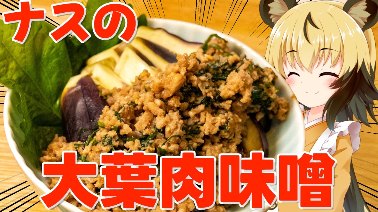 前回(<a href="https://www.nicovideo.jp/watch/sm45060217" class="watch">sm45060217</a> )記念回ということ気合いを入れて作ったら、少し疲れてしまいました。<br>そんな時はとっても簡単に作れて、元気が出て<br>ご飯にもお酒にも合うメニューがとってもうれしい^^<br><br>ということで「ナスの大葉肉味噌掛け」を作っていきましょう!<br><br>大葉肉味噌は保存も効くのでたくさん作って楽しんでくださいね。<br><br>■材料<br>・なす 2本<br>・豚ひき肉 100g<br>・大葉 10枚<br>・生姜 小さじ1<br>・味噌 大さじ1.5<br>・みりん 大さじ2<br>・酒 大さじ2<br>・砂糖 小さじ1<br>・醤油 小さじ1<br><br>■所要時間<br>調理時間:20分<br><br><br>ーーーーーーーーーーーーーーーー<br>音声:AI VOICE2紲星あかり<br>立ち絵:星華彩二魔さん<br>音源:DOVA-SYNDROME<br>イラスト:いらすとや<br>機材:Canon EOS R10<br>編集ソフト:Final Cut Pro<br>ーーーーーーーーーーーーーーーー<br><br>youtube:<a href="https://youtu.be/sN73wPp6tQw" target="_blank" rel="noopener nofollow">https://youtu.be/sN73wPp6tQw</a><br>X(旧:twitter):@lycaon_kitchen<br><br>りおんの和風喫茶:<a href="https://www.nicovideo.jp/series/77190" target="_blank" rel="noopener">series/77190</a><br>おつかれごはん:<a href="https://www.nicovideo.jp/series/155690" target="_blank" rel="noopener">series/155690</a><br>手作り和菓子でちょっとひとやすみしませんか?:<a href="https://www.nicovideo.jp/series/155691" target="_blank" rel="noopener">series/155691</a>