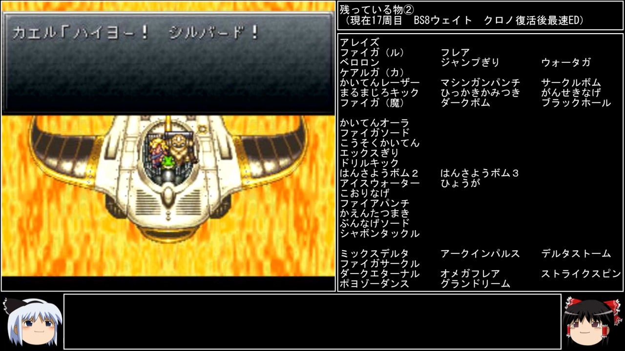 17周目のpart2です。<br>ちょっとしたハプニングだらけですが、息抜きプレイだったのでお許しを。<br><br>前→<a href="https://www.nicovideo.jp/watch/sm45071072" class="watch">sm45071072</a><br>次→<a href="https://www.nicovideo.jp/watch/sm45115667" class="watch">sm45115667</a><br><br>YouTube版→<a href="https://youtu.be/P3JqtIqaT04" target="_blank" rel="noopener nofollow">https://youtu.be/P3JqtIqaT04</a><br><br>縛りルール<br>①一度使った武器・防具・アクセサリー・道具・技・連携は<br> 次周回以降使用禁止(売却も解禁扱い)<br><br>②一度戦った敵シンボルとの再戦禁止。<br><br>③初戦闘の敵からの逃走禁止。<br><br>④裏技、バグ技、状況再現禁止。<br><br>⑤BS1アクティブからBS8ウェイトまで<br> 全てのバトルスピードとバトルモードで攻略する。<br><br>⑥各周回において見る予定のED条件を<br> 満たした段階で即ラヴォスと戦いに行く。<br><br>※ネタバレ注意です<br><br>このページ、動画で利用している弊社または弊社のライセンサーが権利を有する著作物の転載・配布は禁止いたします。<br>© 1995, 2018 SQUARE ENIX<br>Illustration: © 1995 BIRD STUDIO / SHUEISHA<br>Story and Screenplay: © 1995, 2008 ARMOR PROJECT / SQUARE ENIX<br><br>AquesTalk2ライセンスID:AQTK2WINUSR23122185<br /><br><br>❤いいねを押していただけるとモチベーションと投稿速度が上がるので宜しくお願い致します!<br><br>作者ツイッター→ <a href="https://twitter.com/nig0117" target="_blank" rel="noopener nofollow">https://twitter.com/nig0117</a><br>PIXIV FANBOX→ <a href="https://sutanokeiji.fanbox.cc/" target="_blank" rel="noopener nofollow">https://sutanokeiji.fanbox.cc/</a><br><br>( 以前はWEB小説書いてました→ <a href="https://kakuyomu.jp/works/1177354054884910267" target="_blank" rel="noopener nofollow">https://kakuyomu.jp/works/1177354054884910267</a> )
