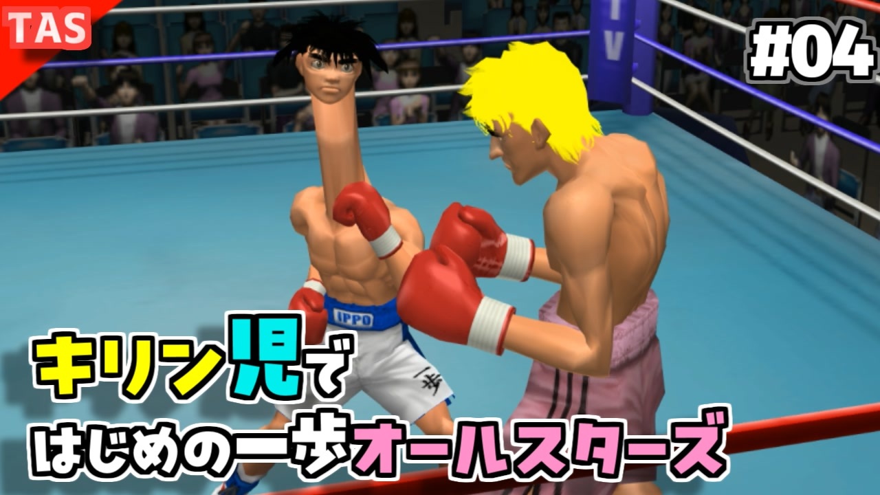 今日からは、はじめの一歩オールスターズのストーリモード開始です<br>(改造伊達英二シリーズはひとつ前のはじめの一歩2と言うソフトです)<br><br>結構改造プログラムの流用が出来たので、追い打ちモードを有効にしています。<br>また、ストーリームービーのモデリングに対して、前回にプラスして、髪の毛のパラメーターがランダム化されました<br><br>パート4は以下の2ステージをクリアしました <br>一歩 対 速水龍一(4回戦) <br>一歩 対 間柴了 (6回戦)<br><br>使用ソフト:はじめの一歩 ALL☆STARS PS2版<br>ジャンル:ボクシングゲーム<br><br><br>会長 VS リカルド →<a href="https://www.nicovideo.jp/watch/sm44079325" class="watch">sm44079325</a><br>デブになった鷹村 →<a href="https://www.nicovideo.jp/watch/sm43384767" class="watch">sm43384767</a><br>パパイヤ迫真の追撃 →<a href="https://www.nicovideo.jp/watch/sm44326277" class="watch">sm44326277</a><br>ゲロ道 VS アルフレド →<a href="https://www.nicovideo.jp/watch/sm44423708" class="watch">sm44423708</a><br>一歩追い打ちしてしまう →<a href="https://www.nicovideo.jp/watch/sm44079346" class="watch">sm44079346</a><br />動画に「いいね!」「マイリスト登録」よろしくお願いします。<br><br>・おすすめ<br>[TAS]Grand Theft Auto 3 Part1→<a href="https://www.nicovideo.jp/watch/sm14718961" class="watch">sm14718961</a><br>[TAS]MaxPayne デッドターゲット Part1→<a href="https://www.nicovideo.jp/watch/sm15093299" class="watch">sm15093299</a><br>[TAS]michigan Part1→<a href="https://www.nicovideo.jp/watch/sm18393230" class="watch">sm18393230</a><br><br>サポート頂けると励みになります<br>魔界塔士のサポーターになる→<a href="https://creator-support.nicovideo.jp/registration/15153622" target="_blank" rel="noopener nofollow">https://creator-support.nicovideo.jp/registration/15153622</a><br><br>TAS動画まとめ→<a href="https://koeiprogenitor.com/tas/matome/" target="_blank" rel="noopener nofollow">https://koeiprogenitor.com/tas/matome/</a><br>つべ→<a href="https://www.youtube.com/user/koeiprogenitor1/" target="_blank" rel="noopener nofollow">https://www.youtube.com/user/koeiprogenitor1/</a><br>インスタ→<a href="https://www.instagram.com/makaitoshi" target="_blank" rel="noopener nofollow">https://www.instagram.com/makaitoshi</a><br><br>本編→シリーズ一覧見てね<br>