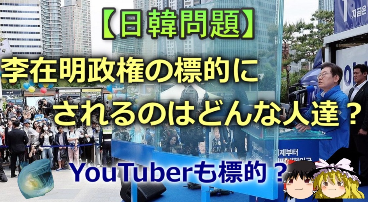 さて、本日は最近ネット上で度々話題になっている、李政権で標的にされるのが実際にはどのようなタイプの人々なのかについて扱っていきます。<br>極端中心核トランジェントどようび<br>本日のブログ記事<br><a href="https://oogchib.hateblo.jp/entry/2025/06/15/210000" target="_blank" rel="noopener nofollow">https://oogchib.hateblo.jp/entry/2025/06/15/210000</a><br>元記事<br>李在明政権の標的にされるのはどんな人達?<br><a href="https://oogchib.hateblo.jp/entry/2025/06/12/020225" target="_blank" rel="noopener nofollow">https://oogchib.hateblo.jp/entry/2025/06/12/020225</a><br><br>注意<br>・この動画は「日韓の価値観の違い」を扱っています<br><br>・動画のスタンスは「価値観に善悪や優劣は存在しない」というものです<br><br>・相手が不法を働いているからとこちらが不法をして良い理由にはなりません<br><br>・自身の常識が相手にとっても常識とは限りません、「他者がそれを見たら<br>どう思うか」という客観性を常に持ちましょう。<br><br>・日常生活で注意する程度には言動に注意を心がけてください<br><br>・リクエストは原則受け付けていません<br><br>・引用ソースへのリンクが同時掲載のブログにあります<br><br>・毎週日曜日更新<br><br>引用ソースと動画のテキストをブログ日韓問題(初心者向け)のほうへ掲載しています。<br><br>もしよかったらチャンネル登録や「いいね」ボタンクリックよろしくお願いします。<br><br>日韓問題(初心者向け)<br><a href="https://oogchib.hateblo.jp/" target="_blank" rel="noopener nofollow">https://oogchib.hateblo.jp/</a><br><br>暇つぶしにどうぞ<br><a href="http://ooguchib.blog.fc2.com/" target="_blank" rel="noopener nofollow">http://ooguchib.blog.fc2.com/</a> <br><br>X(旧twitter) @ooguchib<br><a href="https://x.com/ooguchib" target="_blank" rel="noopener nofollow">https://x.com/ooguchib</a><br><br><br>前 <a href="https://www.nicovideo.jp/watch/sm45068318" class="watch">sm45068318</a> <a href="https://www.nicovideo.jp/mylist/59069876" target="_blank" rel="noopener">mylist/59069876</a> 次 <a href="https://www.nicovideo.jp/watch/sm45113961" class="watch">sm45113961</a><br><br>番外編マイリスト<br><a href="https://www.nicovideo.jp/mylist/62992608" target="_blank" rel="noopener">mylist/62992608</a><br><br>YouTube版<br><a href="https://youtu.be/zQPoYvUAodE" target="_blank" rel="noopener nofollow">https://youtu.be/zQPoYvUAodE</a><br>