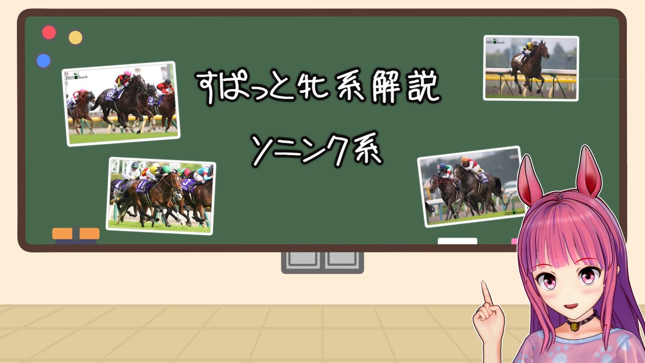 ご視聴ありがとうございます<br>前回に続き牝系解説ソニンク系です<br><br><br>【参考サイト】<br>JBISサーチ様<br><a href="https://www.jbis.or.jp/index.html" target="_blank" rel="noopener nofollow">https://www.jbis.or.jp/index.html</a><br>netkeiba様<br><a href="https://www.netkeiba.com/" target="_blank" rel="noopener nofollow">https://www.netkeiba.com/</a><br>競馬牝系ウェアハウス様<br><a href="https://yukidaruma72.web.fc2.com/" target="_blank" rel="noopener nofollow">https://yukidaruma72.web.fc2.com/</a><br>ソニンクのwikipedia<br><a href="https://ja.wikipedia.org/wiki/%E3%82%BD%E3%83%8B%E3%83%B3%E3%82%AF" target="_blank" rel="noopener nofollow">https://ja.wikipedia.org/wiki/%E3%82%BD%E3%83%8B%E3%83%B3%E3%82%AF</a><br><br><br>前回:牝系解説ハッピートレイルズ系:<a href="https://www.nicovideo.jp/watch/sm45021371" class="watch">sm45021371</a><br>次回:ヘイルトゥリーズン系解説 後編1:<a href="https://www.nicovideo.jp/watch/sm45209565" class="watch">sm45209565</a><br>競馬解説動画マイリスト:<a href="https://www.nicovideo.jp/mylist/71482582" target="_blank" rel="noopener">mylist/71482582</a><br><br>BGM:<br>MusMus様<br><a href="https://musmus.main.jp/" target="_blank" rel="noopener nofollow">https://musmus.main.jp/</a><br><br>【競馬関係動画】<br>牧場見学シリーズ:<a href="https://www.nicovideo.jp/mylist/74947383" target="_blank" rel="noopener">mylist/74947383</a><br>解説動画シリーズ:<a href="https://www.nicovideo.jp/mylist/71482582" target="_blank" rel="noopener">mylist/71482582</a><br><br>【他のシリーズ】<br>ウイポ動画もしてました<br>マイリスト:<a href="https://www.nicovideo.jp/mylist/77471806" target="_blank" rel="noopener">mylist/77471806</a><br><br>他にツーリング動画も上げています<br>ツーリング動画マイリスト:<a href="https://www.nicovideo.jp/mylist/76440962" target="_blank" rel="noopener">mylist/76440962</a><br><br>X(ツイッター)<br><a href="https://twitter.com/MGixxer150" target="_blank" rel="noopener nofollow">https://twitter.com/MGixxer150</a>