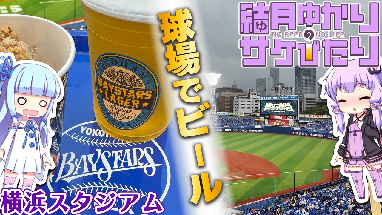 <span style="color: #9900ff; font-size: 24px;">ベイスターズと最高の夏!</span><br><strong>球場で飲むビールは美味しいと聞いたので検証してみた。<br>「ベイスターズラガー」</strong>を最高に美味しく飲むために、<strong>「横浜スタジアム」</strong>で野球観戦。<br>「アドオン」と「ネット注文」のお陰でフードは並ばずにゲット。令和の野球観戦って快適。<br>チームのことは殆ど知らずに球場入りしましたが、それでも想像以上に楽しく、<br>出る頃にはしっかりベイスターズファンになってグッズまでお持ち帰りしました。<br><span style="color: #ff00ff;">「いいね!」メッセージ:実は昔は……</span><br><br><span style="font-size: 10px;">※この動画は「写真・動画の撮影及び配信に関する規程」(<a href="https://npb.jp/npb/satsuei_haisin_kitei.html" target="_blank" rel="noopener nofollow">https://npb.jp/npb/satsuei_haisin_kitei.html</a> )に沿って作成しています。<br>要約すると「140秒以内」「プレーシーン以外の撮影」「試合後の投稿」であれば、動画の投稿が可能な決まりです。</span><br><br><span style="color: #0000ff; font-size: 14px;"><strong><</strong></span><span style="color: #0000ff;"><strong>結月ゆかりのサケびたり</strong></span><a href="https://www.nicovideo.jp/mylist/75790185" target="_blank" rel="noopener">mylist/75790185</a><span style="color: #0000ff; font-size: 14px;"><strong>></strong></span><br>前→サウナ買ってみた。「おうちDEサウナ」<a href="https://www.nicovideo.jp/watch/sm45001223" class="watch">sm45001223</a><br>次→【岐阜県旅行祭2025】高山で絶品飛騨牛!「高山桜庵」&雑グルメ旅 <a href="https://www.nicovideo.jp/watch/sm45162762" class="watch">sm45162762</a><br><br><strong>制作:ベホイミProject(<a href="https://www.nicovideo.jp/mylist/27336" target="_blank" rel="noopener">mylist/27336</a>)</strong><br>Twitter:<a href="https://twitter.com/BehoimiP" target="_blank" rel="noopener nofollow">https://twitter.com/BehoimiP</a><br>YouTube「T.A.S魔理沙ちゃんねる」:<a href="https://www.youtube.com/c/TasMarisa" target="_blank" rel="noopener nofollow">https://www.youtube.com/c/TasMarisa</a>