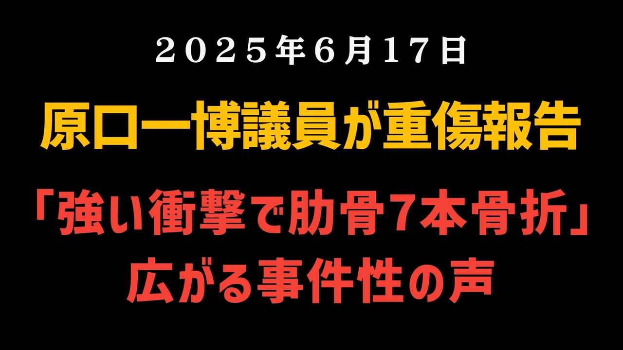 国会議員・原口一博氏が突然の重傷を報告。「気づけばベッドから投げ出されていた」と語る衝撃の投稿に、応援の声とともに“事件性”を指摘する声も急増。右目の腫れ、肋骨7本の骨折という詳細な症状に「ただの転倒とは思えない」との懸念が広がっています。7月19日のIHR改訂案拒否期限を目前に控え、原口議員が発信していた重要な問題とは。偶然なのか、それとも――。いま注目される原口議員の投稿の真意と、その背景を読み解きます。<br>URL<br><a href="https://x.com/kharaguchi/status/1934614562151752070?t=EYrsjh-q0auRaD44mL0fpQ&s=19" target="_blank" rel="noopener nofollow">https://x.com/kharaguchi/status/1934614562151752070?t=EYrsjh-q0auRaD44mL0fpQ&s=19</a><br><br><br>◆ 今回の台本<br><a href="https://keiichiro8140.hatenablog.com/entry/20250617777" target="_blank" rel="noopener nofollow">https://keiichiro8140.hatenablog.com/entry/20250617777</a><br><br><br>◆YouTubeでも投稿中!チャンネル登録よろしくお願いします<br><a href="https://x.gd/uxU5M" target="_blank" rel="noopener nofollow">https://x.gd/uxU5M</a><br><br><br>◆今回の動画<br><br><br><br>◆もしも(BAN)の時のためのマイリンク集<br><a href="https://lit.link/keiichiro8140" target="_blank" rel="noopener nofollow">https://lit.link/keiichiro8140</a><br><br><br>気になったニュース 2025/6/17<br><br><br />著作権、肖像権に配慮して作成しております。<br><br>◆気になったニュースの台本!?<br>メモ代わりに作った台本をそのままあげてます<br><a href="https://keiichiro8140.hatenablog.com/." target="_blank" rel="noopener nofollow">https://keiichiro8140.hatenablog.com/.</a><br><br><br>ここからはシリーズ紹介<br><br><br>◆ ワクチン解毒・デトックス<br><a href="https://x.gd/fZweg" target="_blank" rel="noopener nofollow">https://x.gd/fZweg</a><br><br>◆ウイリアム・マキス博士のがん治療(イベルメクチン・フェンベンダゾール等)<br><a href="https://x.gd/AtFYS" target="_blank" rel="noopener nofollow">https://x.gd/AtFYS</a><br><br>◆予防接種健康被害救済制度<br><a href="https://x.gd/0xK9x" target="_blank" rel="noopener nofollow">https://x.gd/0xK9x</a><br><br>◆気になったニュース #1501~<br><br>◆ 【ショートver】気になったニュース<br><a href="https://x.gd/7MxXC" target="_blank" rel="noopener nofollow">https://x.gd/7MxXC</a><br><br>◆ 気になったニュース #1001~<br><a href="https://x.gd/Lp8gv" target="_blank" rel="noopener nofollow">https://x.gd/Lp8gv</a><br><br>◆ 気になったニュース #501~<br><a href="https://x.gd/EmbS4" target="_blank" rel="noopener nofollow">https://x.gd/EmbS4</a><br><br>◆ 気になったニュース #1~#500<br><a href="https://x.gd/uPhNb" target="_blank" rel="noopener nofollow">https://x.gd/uPhNb</a><br><br>◆ X(旧Twitter)・テレグラムで気になった情報<br><a href="https://x.gd/YG6FT" target="_blank" rel="noopener nofollow">https://x.gd/YG6FT</a><br><br>◆ 日比谷5万人パレードデ⚪生放送アーカイブ動画<br><a href="https://x.gd/3CHJv" target="_blank" rel="noopener nofollow">https://x.gd/3CHJv</a><br><br>◆日比谷5万人パレード⚪モのマイリスト作ってみました<br><a href="https://nico.ms/mylist/76828848?ref=sp_other" target="_blank" rel="noopener nofollow">https://nico.ms/mylist/76828848?ref=sp_other</a><br><br>◆3.30 令和の百姓⚪⚪<br><a href="https://www.nicovideo.jp/series/511791?ref=garage_share_other" target="_blank" rel="noopener nofollow">https://www.nicovideo.jp/series/511791?ref=garage_share_other</a><br><br>◆ 及川幸久さんの【XNEWS】シリーズ<br><a href="https://x.gd/3k78K" target="_blank" rel="noopener nofollow">https://x.gd/3k78K</a><br><br>◆これまでの動画<a href="https://x.gd/sPXoJ" target="_blank" rel="noopener nofollow">https://x.gd/sPXoJ</a><br><br>◆もしも(BAN)の時のためのマイリンク集<a href="https://lit.link/K-16_News44" target="_blank" rel="noopener nofollow">https://lit.link/K-16_News44</a><br><br>