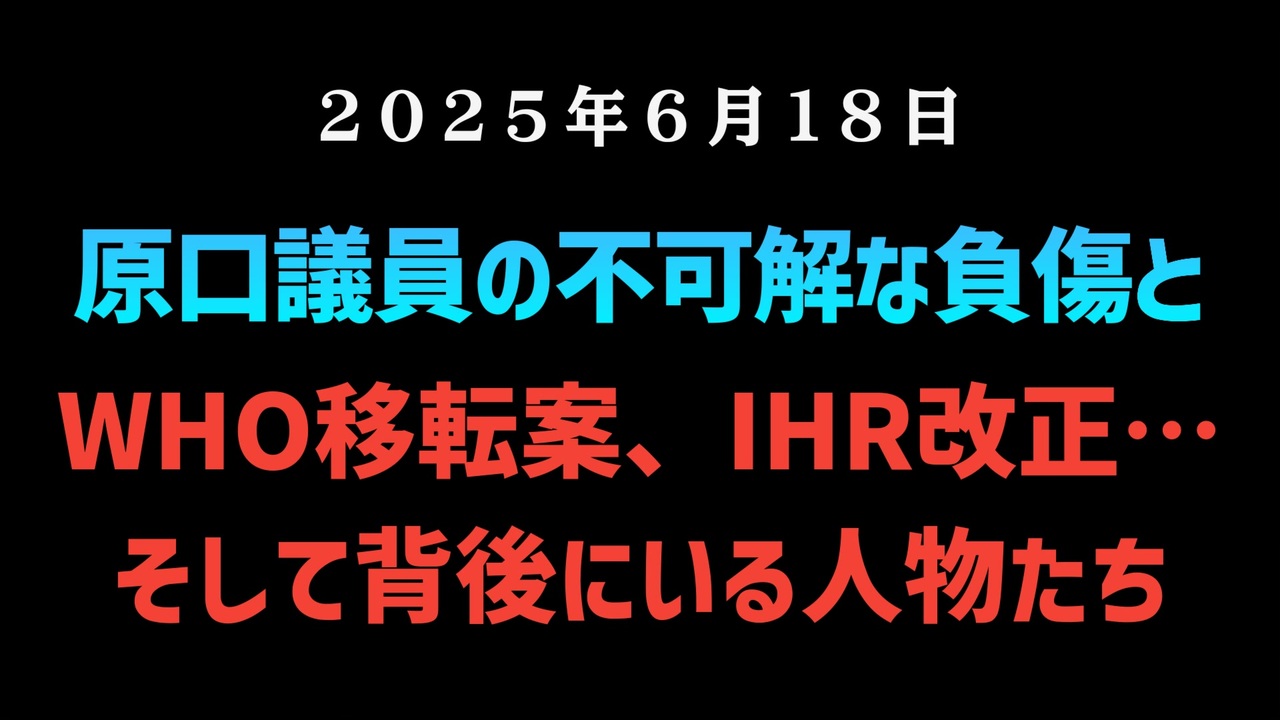 原口一博議員が肋骨7本を折る重傷。しかも本人は「外からの衝撃以外考えられない」と発言──その背景にあったのは、WHO東京誘致計画への反対姿勢だった? 世界中で物議を醸す“パンデミック条約”と“国際保健規則改正”の黒幕はビル・ゲイツ、そしてその命令を現場で実行している日本人がいた。中谷比呂樹──ゲイツの部下であり、厚労省に入り込んだ男。そして武見敬三──WHOと歩調を合わせ、日本の保健権限を海外に明け渡すために働いてきた議員。公衆衛生の名のもとに主権が奪われる、その全貌を暴く。<br><br><a href="https://x.com/max358japan/status/1934616659073040811?t=_HRPmUsd2L405pxTssWyJw&s=19" target="_blank" rel="noopener nofollow">https://x.com/max358japan/status/1934616659073040811?t=_HRPmUsd2L405pxTssWyJw&s=19</a><br><br><br>◆ 今回の台本<br><a href="https://keiichiro8140.hatenablog.com/entry/20250618888" target="_blank" rel="noopener nofollow">https://keiichiro8140.hatenablog.com/entry/20250618888</a><br><br><br>◆もしも(BAN)の時のためのマイリンク集<br><a href="https://lit.link/keiichiro8140" target="_blank" rel="noopener nofollow">https://lit.link/keiichiro8140</a><br><br><br>気になったニュース 2025/6/18<br><br><br />著作権、肖像権に配慮して作成しております。<br><br>◆気になったニュースの台本!?<br>メモ代わりに作った台本をそのままあげてます<br><a href="https://keiichiro8140.hatenablog.com/." target="_blank" rel="noopener nofollow">https://keiichiro8140.hatenablog.com/.</a><br><br><br>ここからはシリーズ紹介<br><br><br>◆ ワクチン解毒・デトックス<br><a href="https://x.gd/fZweg" target="_blank" rel="noopener nofollow">https://x.gd/fZweg</a><br><br>◆ウイリアム・マキス博士のがん治療(イベルメクチン・フェンベンダゾール等)<br><a href="https://x.gd/AtFYS" target="_blank" rel="noopener nofollow">https://x.gd/AtFYS</a><br><br>◆予防接種健康被害救済制度<br><a href="https://x.gd/0xK9x" target="_blank" rel="noopener nofollow">https://x.gd/0xK9x</a><br><br>◆気になったニュース #1501~<br><br>◆ 【ショートver】気になったニュース<br><a href="https://x.gd/7MxXC" target="_blank" rel="noopener nofollow">https://x.gd/7MxXC</a><br><br>◆ 気になったニュース #1001~<br><a href="https://x.gd/Lp8gv" target="_blank" rel="noopener nofollow">https://x.gd/Lp8gv</a><br><br>◆ 気になったニュース #501~<br><a href="https://x.gd/EmbS4" target="_blank" rel="noopener nofollow">https://x.gd/EmbS4</a><br><br>◆ 気になったニュース #1~#500<br><a href="https://x.gd/uPhNb" target="_blank" rel="noopener nofollow">https://x.gd/uPhNb</a><br><br>◆ X(旧Twitter)・テレグラムで気になった情報<br><a href="https://x.gd/YG6FT" target="_blank" rel="noopener nofollow">https://x.gd/YG6FT</a><br><br>◆ 日比谷5万人パレードデ⚪生放送アーカイブ動画<br><a href="https://x.gd/3CHJv" target="_blank" rel="noopener nofollow">https://x.gd/3CHJv</a><br><br>◆日比谷5万人パレード⚪モのマイリスト作ってみました<br><a href="https://nico.ms/mylist/76828848?ref=sp_other" target="_blank" rel="noopener nofollow">https://nico.ms/mylist/76828848?ref=sp_other</a><br><br>◆3.30 令和の百姓⚪⚪<br><a href="https://www.nicovideo.jp/series/511791?ref=garage_share_other" target="_blank" rel="noopener nofollow">https://www.nicovideo.jp/series/511791?ref=garage_share_other</a><br><br>◆ 及川幸久さんの【XNEWS】シリーズ<br><a href="https://x.gd/3k78K" target="_blank" rel="noopener nofollow">https://x.gd/3k78K</a><br><br>◆これまでの動画<a href="https://x.gd/sPXoJ" target="_blank" rel="noopener nofollow">https://x.gd/sPXoJ</a><br><br>◆もしも(BAN)の時のためのマイリンク集<a href="https://lit.link/K-16_News44" target="_blank" rel="noopener nofollow">https://lit.link/K-16_News44</a><br><br>