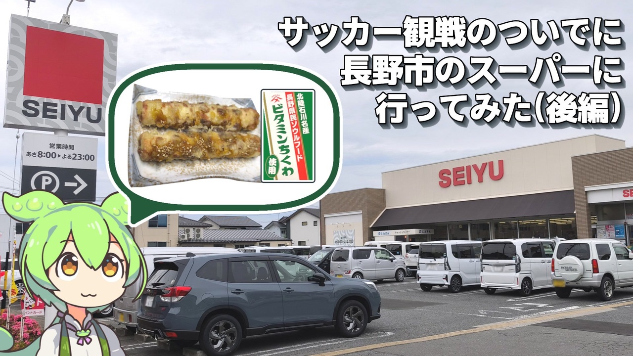 長野県長野市にやってきたので、長野県に多いと言われる<br>食品スーパーの「西友」に行ってきました。<br>その近辺に、地元の方で賑わうお店で、長野名物のおやきが買えるらしいので<br>寄り道してみます。<br><br><br>【関連動画】<br>サッカー観戦のついでに、長野県長野市の食品スーパーに行ってみた(前編)<br><a href="https://www.nicovideo.jp/watch/sm45096200" target="_blank" rel="noopener nofollow">https://www.nicovideo.jp/watch/sm45096200</a><br><br>【参考】<br>株式会社 西友<br><a href="https://www.seiyu.co.jp/" target="_blank" rel="noopener nofollow">https://www.seiyu.co.jp/</a><br>ビタミンちくわ(株式会社スギヨ)<br><a href="https://www.sugiyo.co.jp/brand/vitachiku.php" target="_blank" rel="noopener nofollow">https://www.sugiyo.co.jp/brand/vitachiku.php</a><br>国民への思いが生んだ製品(株式会社スギヨ)<br><a href="https://www.sugiyo.co.jp/special/story/vitachiku.php" target="_blank" rel="noopener nofollow">https://www.sugiyo.co.jp/special/story/vitachiku.php</a><br>食育戦士スギヨ仮面(株式会社スギヨ)<br><a href="https://www.sugiyo.co.jp/company/dietary/sugiyokamen.php" target="_blank" rel="noopener nofollow">https://www.sugiyo.co.jp/company/dietary/sugiyokamen.php</a><br>【長野市】創業121年。地元で長く愛されている素敵なお店<br>「銘菓のマツキ」に行ってきました。(Yahoo!ニュース)<br><a href="https://news.yahoo.co.jp/expert/articles/a9714176c0ce443303a18cb4fa47d0a476fc6b11" target="_blank" rel="noopener nofollow">https://news.yahoo.co.jp/expert/articles/a9714176c0ce443303a18cb4fa47d0a476fc6b11</a><br><br>【使用した素材】(※敬称略) <br>(合成音声)VOICEVOX/ずんだもん/四国めたん<br><a href="https://voicevox.hiroshiba.jp/" target="_blank" rel="noopener nofollow">https://voicevox.hiroshiba.jp/</a> <br>(立ち絵)坂本アヒル<br> <a href="https://seiga.nicovideo.jp/seiga/im10788496?track" target="_blank" rel="noopener nofollow">https://seiga.nicovideo.jp/seiga/im10788496?track</a><br>(楽曲)甘茶の音楽工房/「レトロゲームセンター・Ⅱ」<br><a href="https://amachamusic.chagasi.com/" target="_blank" rel="noopener nofollow">https://amachamusic.chagasi.com/</a>